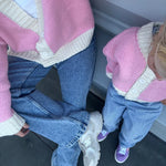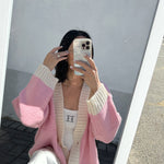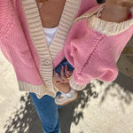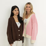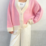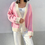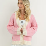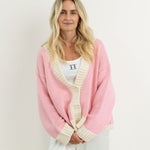 Women's Maeve Contrast Knit Cardigan - Pink/Cream