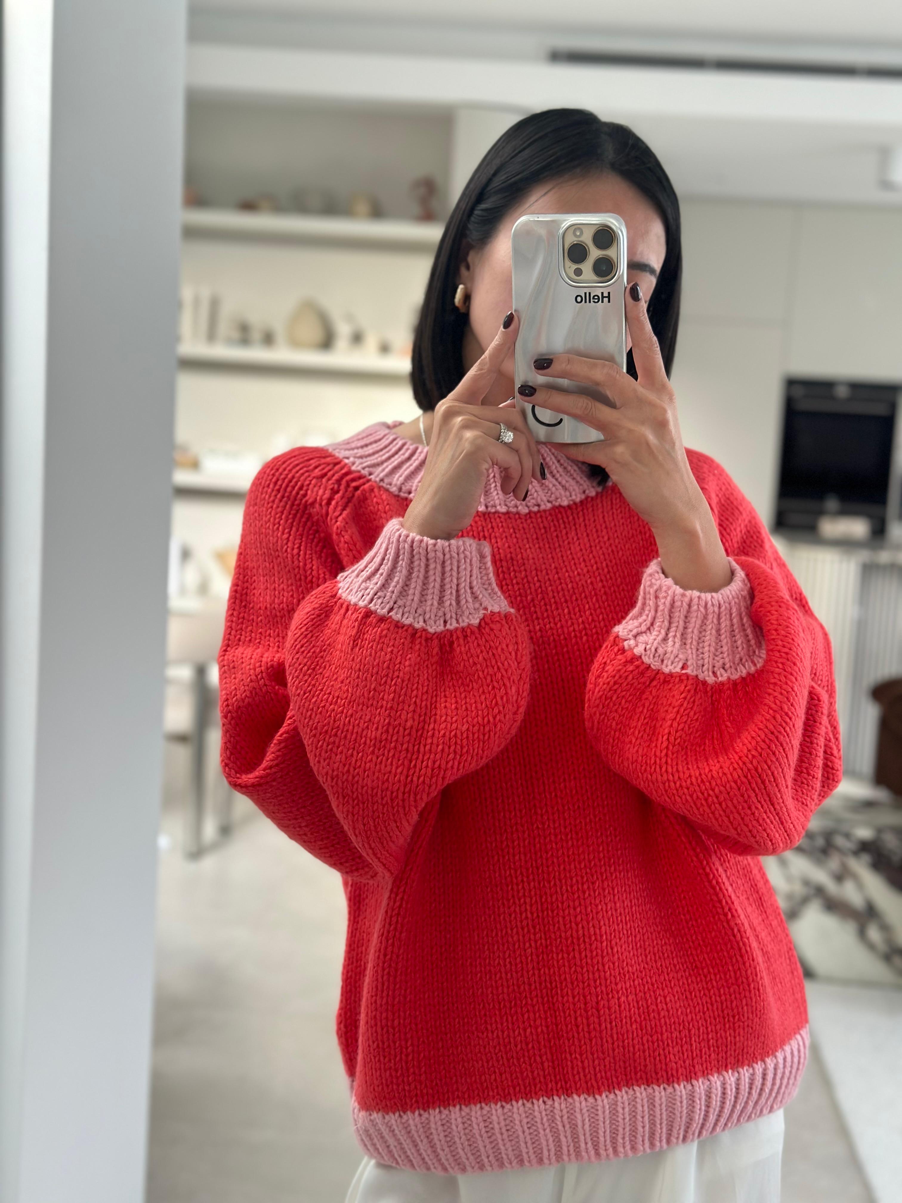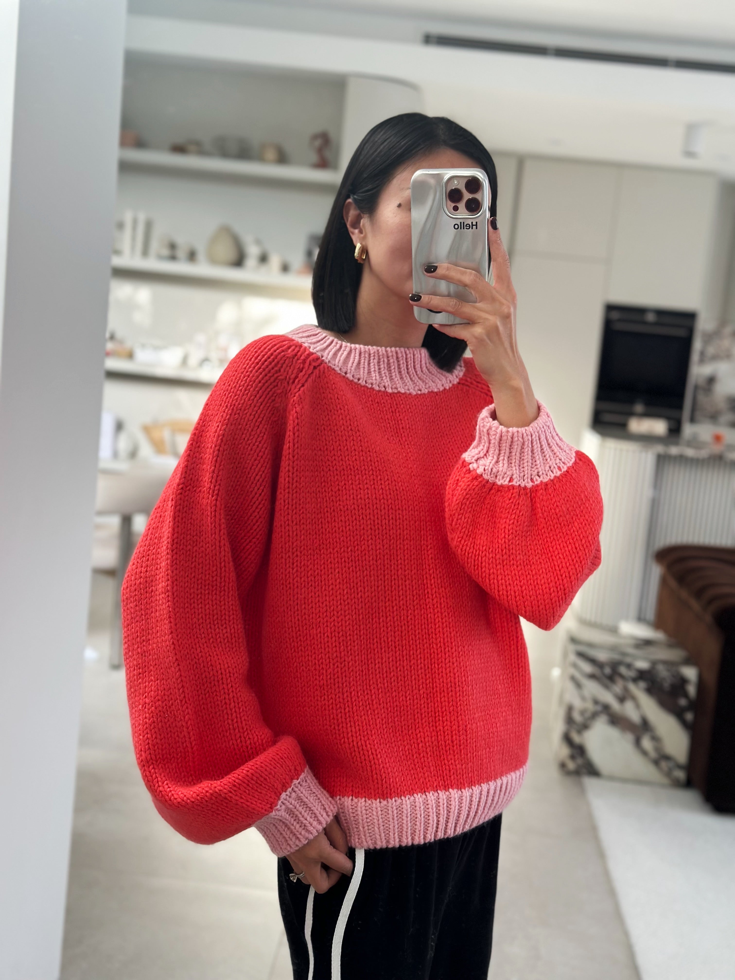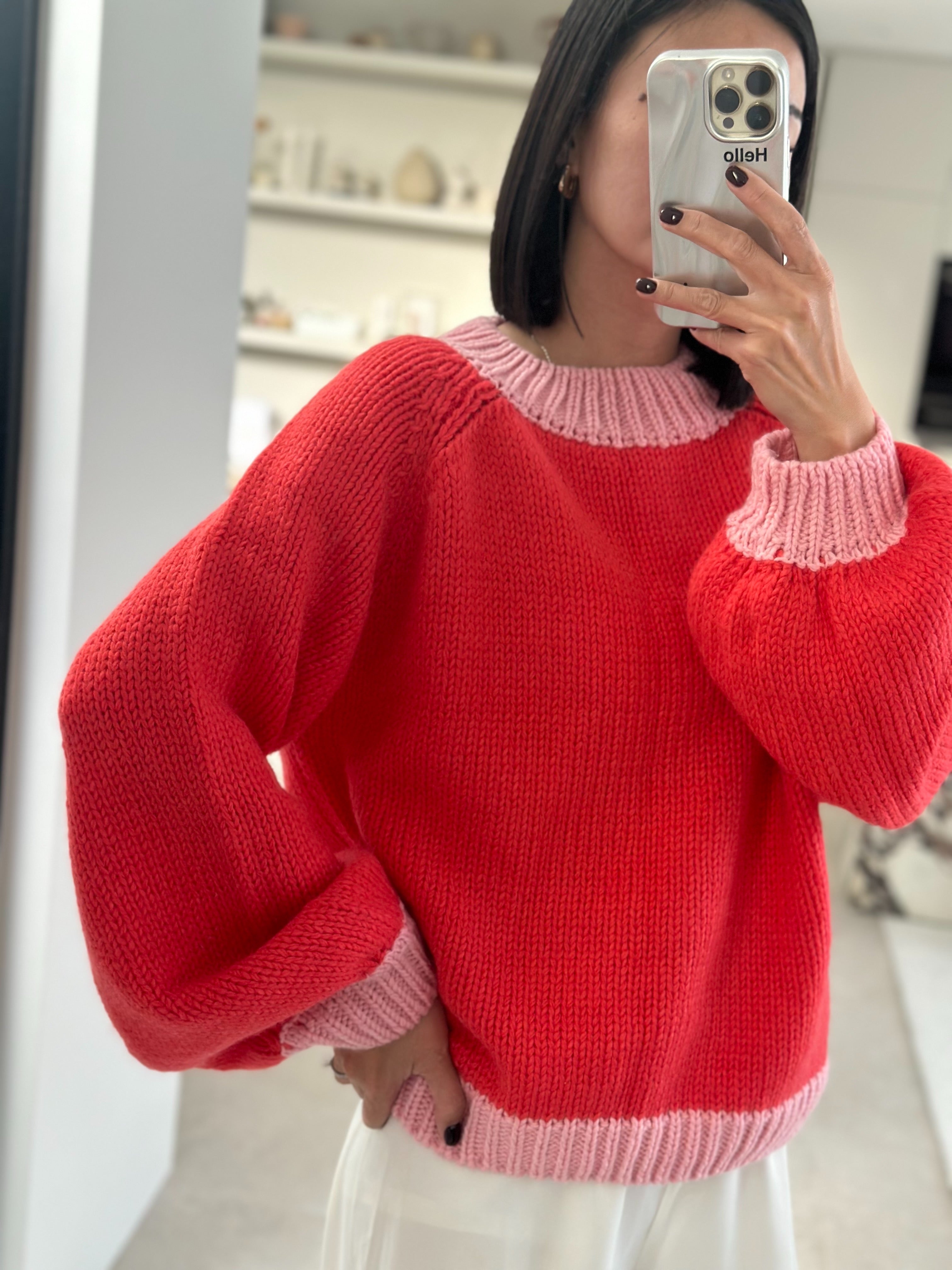 Women's Mia Contrast Knit Jumper - Red/Pink