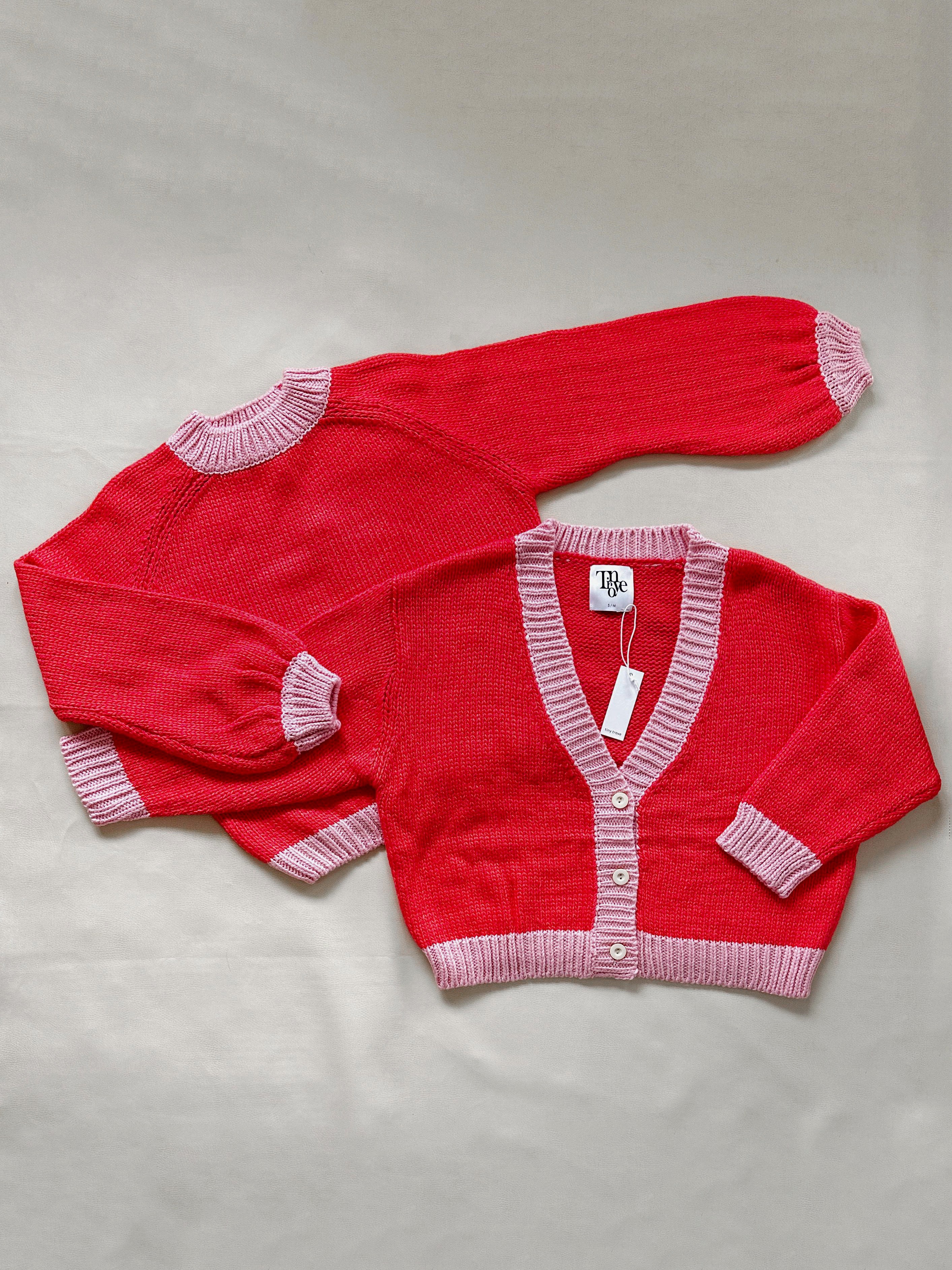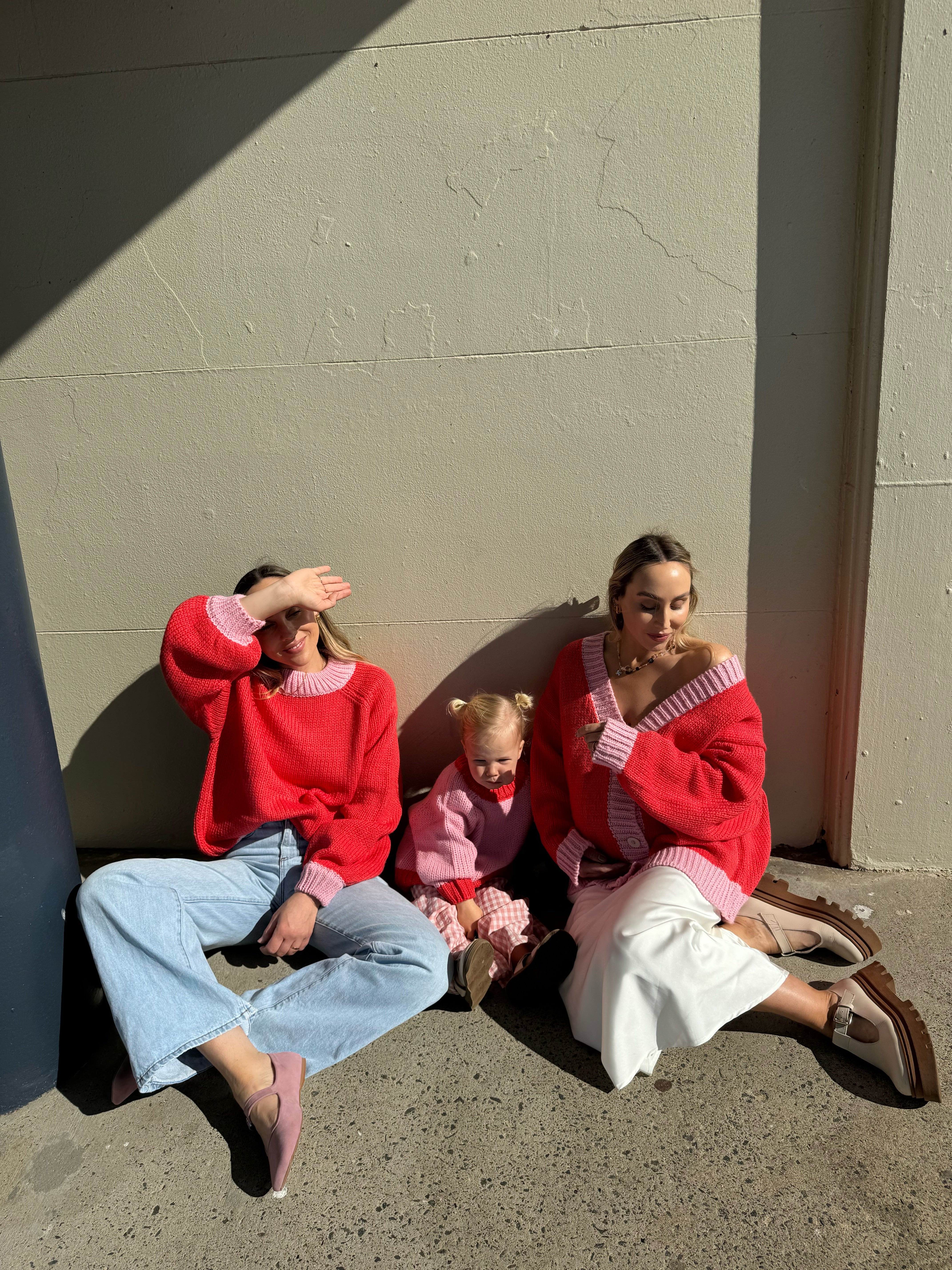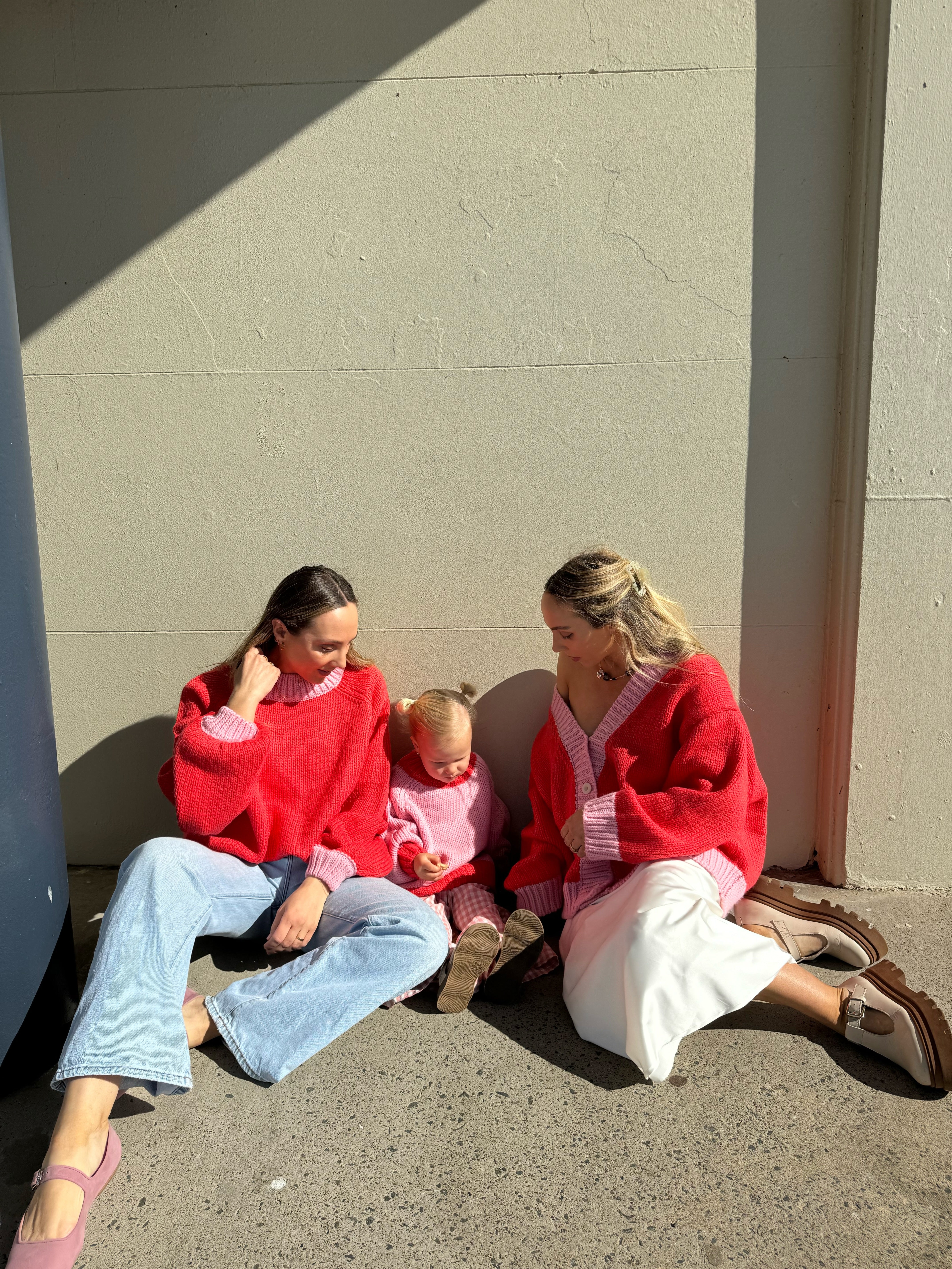 Women's Mia Contrast Knit Jumper - Red/Pink