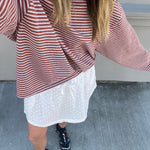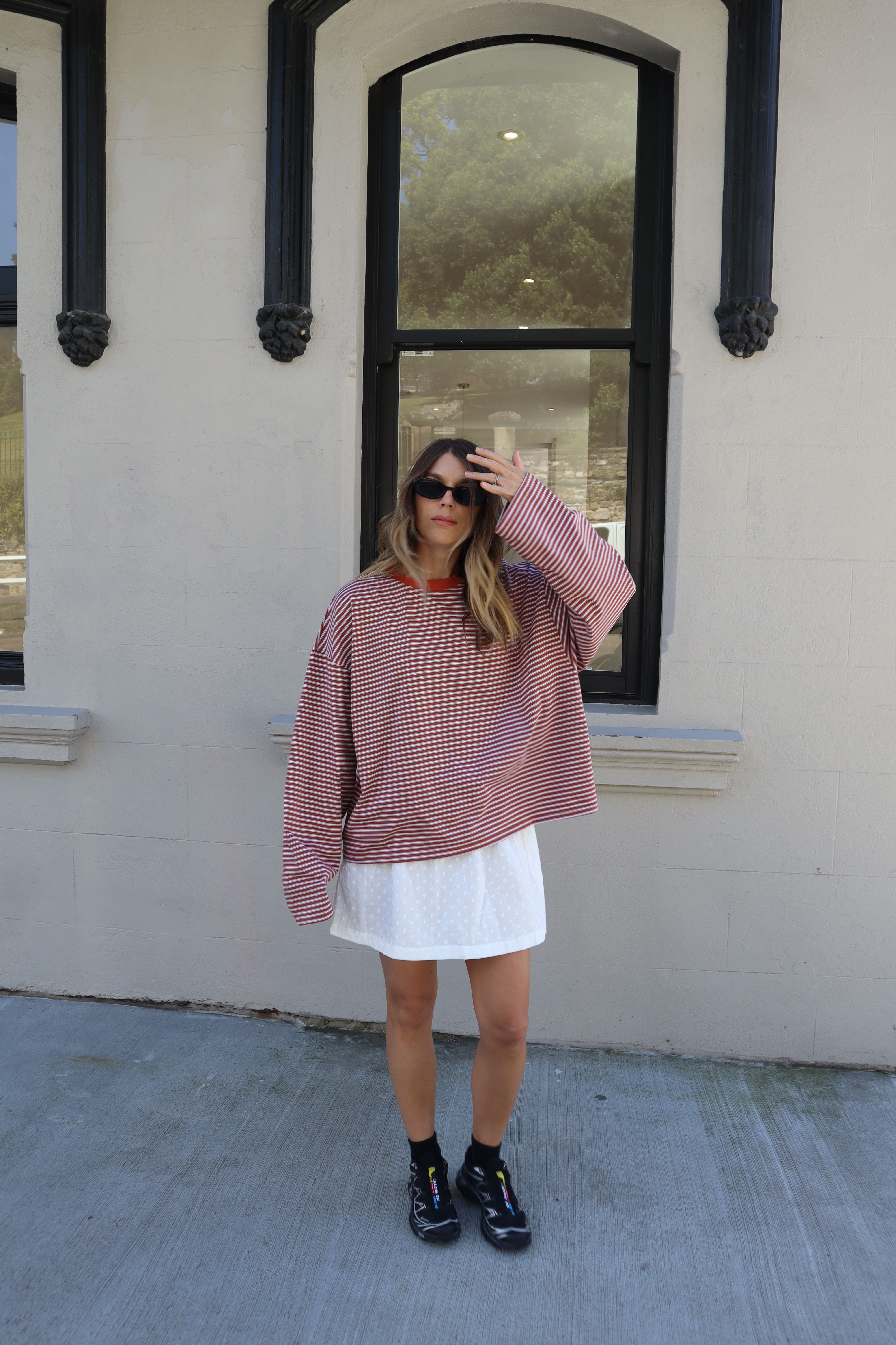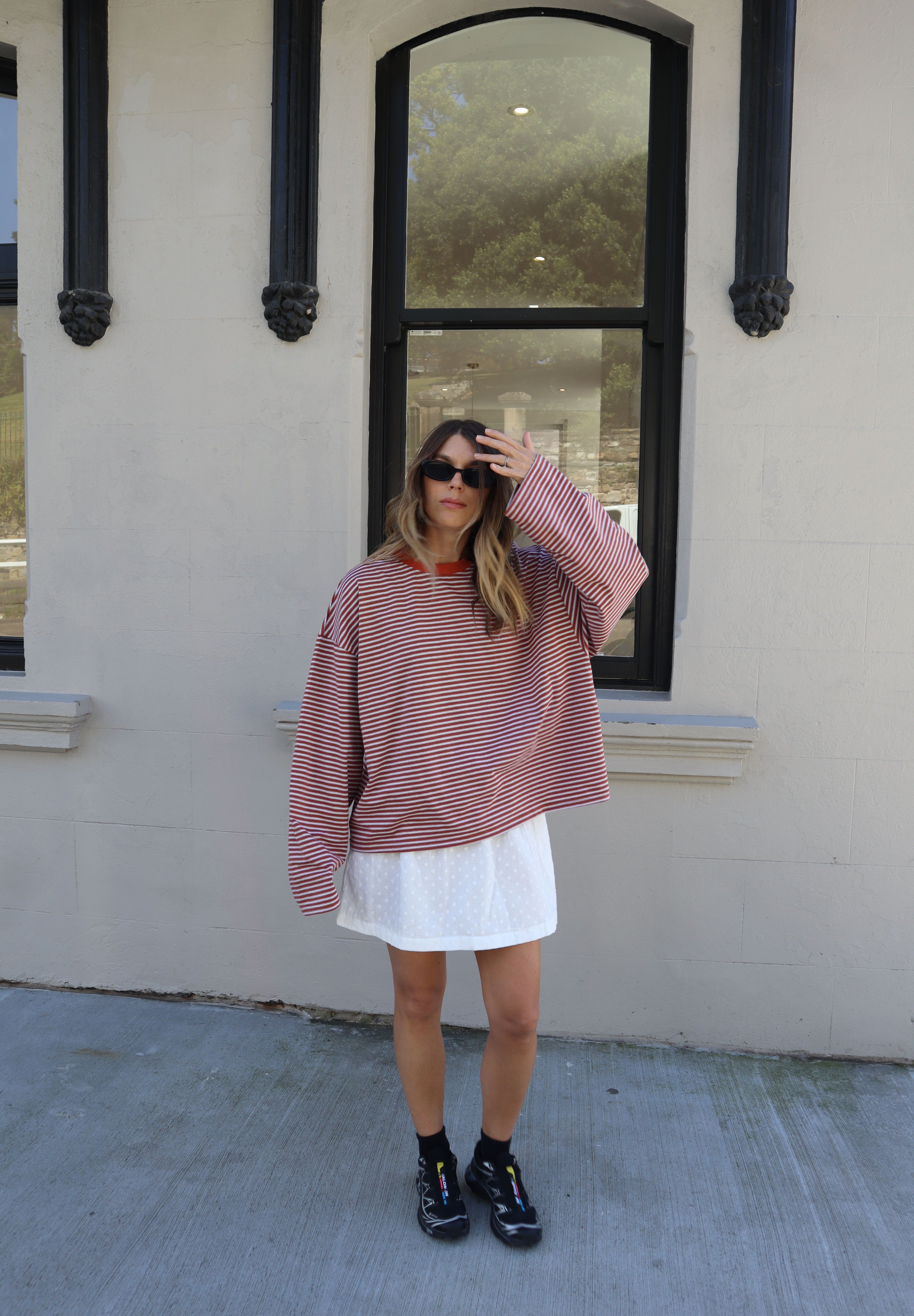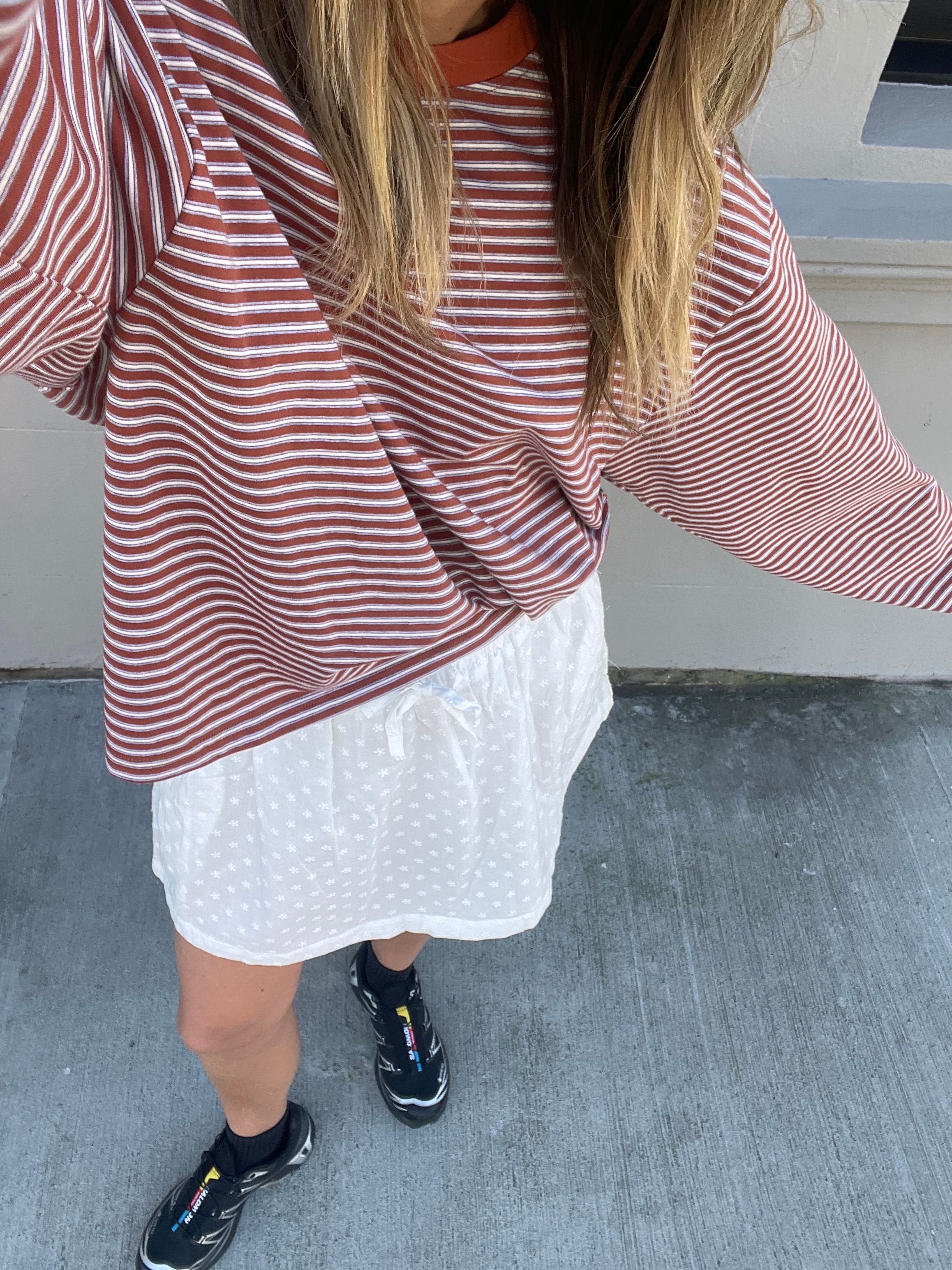 Women's Rhode Stripe Cotton Long Sleeve Tee - Terracotta Stripe