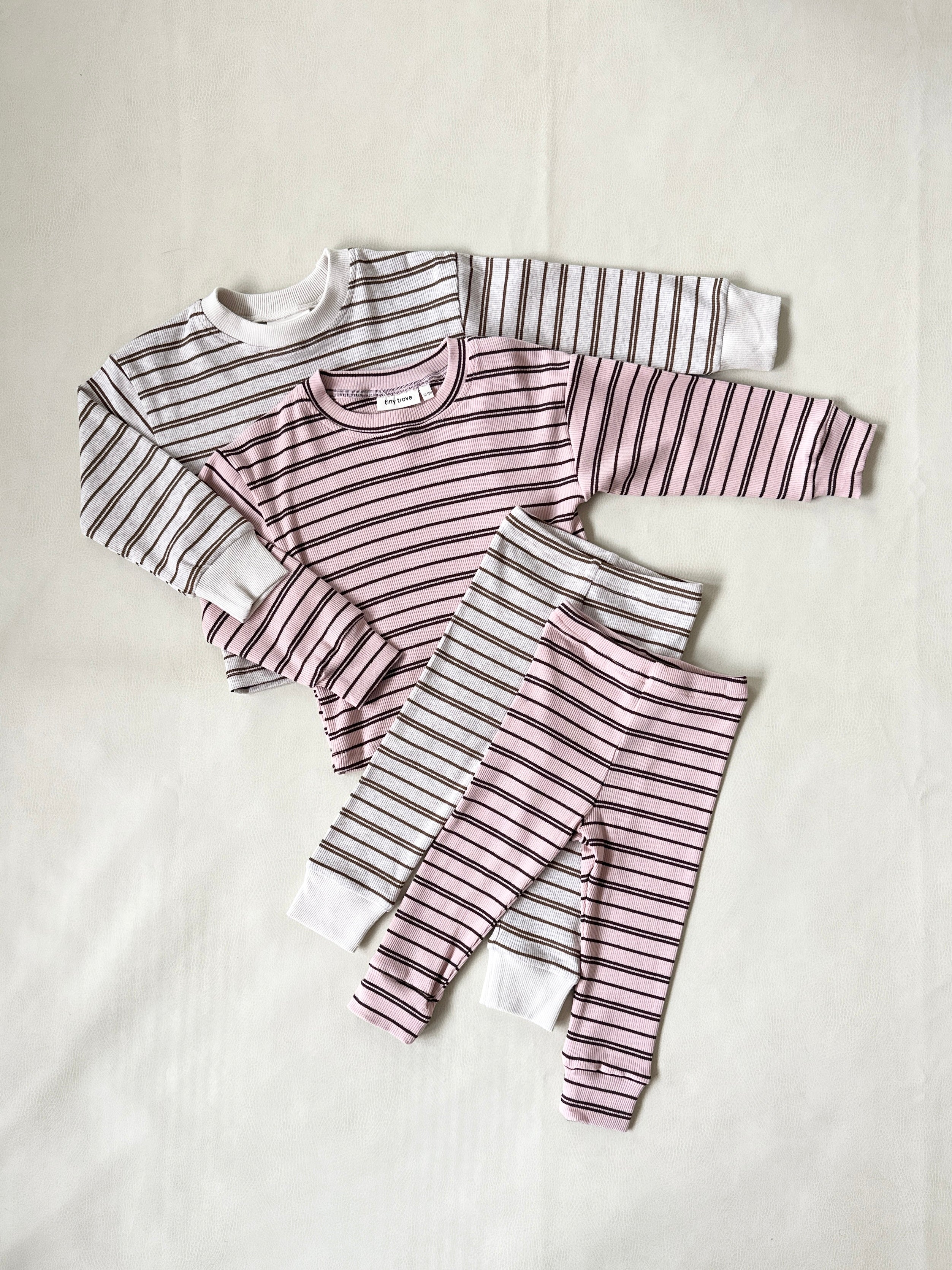 THE set for your little one has just arrived - the Ruka Stripe Rib Cotton Set! Made from soft 100% cotton rib, this set is perfect for everyday wear (perfect for crawling, snuggling and tiny adventures).