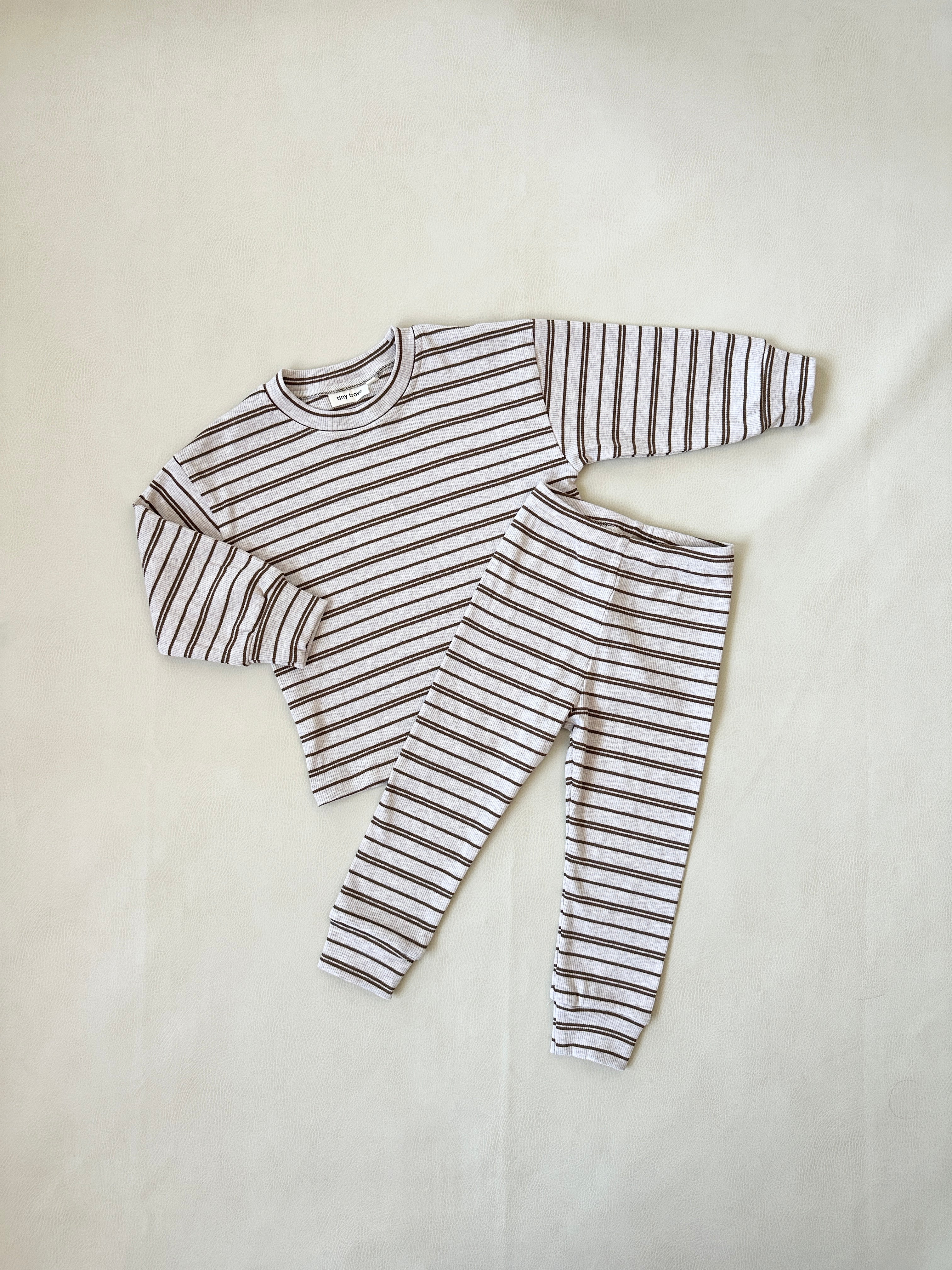 Ruka Stripe Rib Cotton Set - Oatmeal Marle/Mocha Stripe