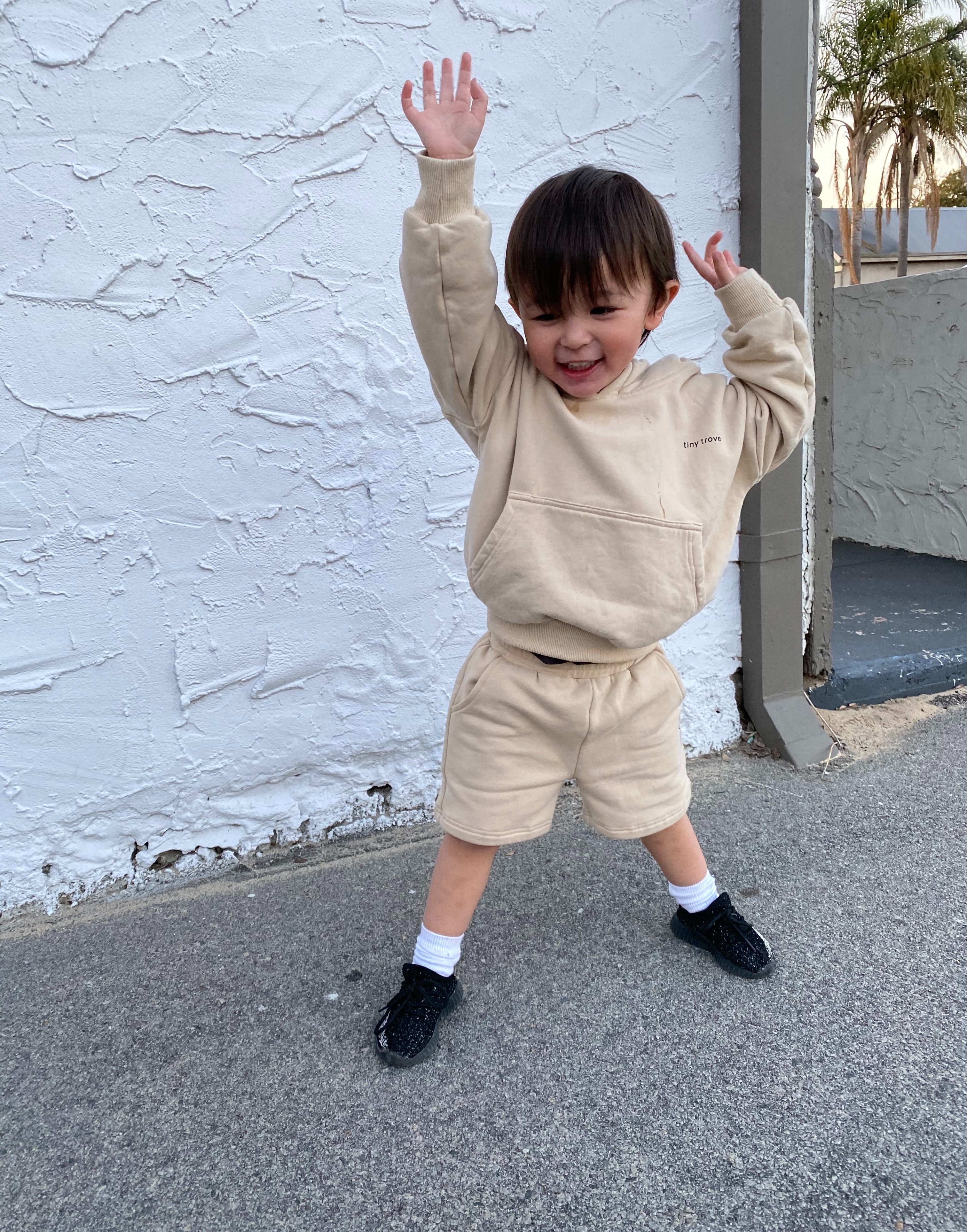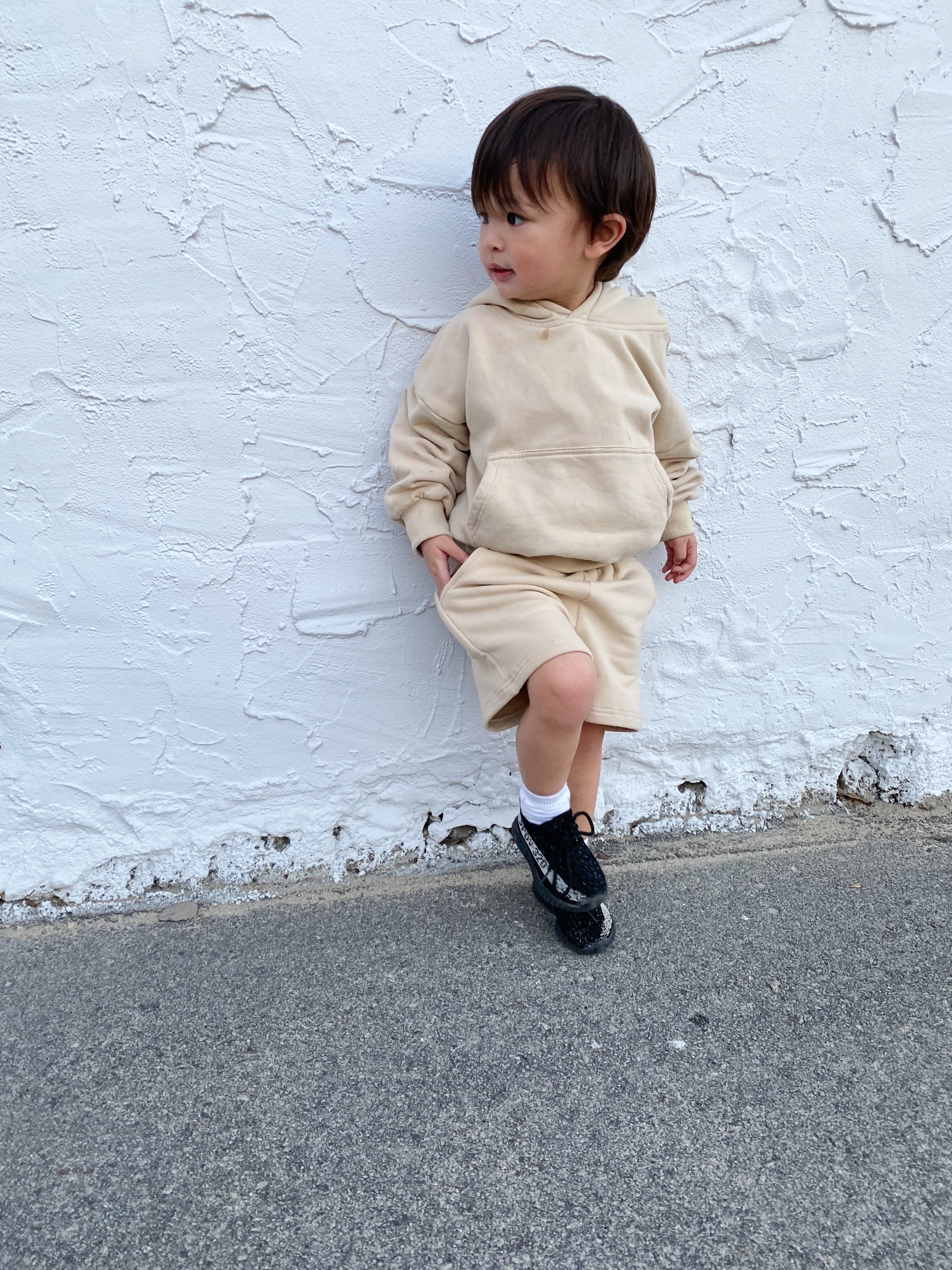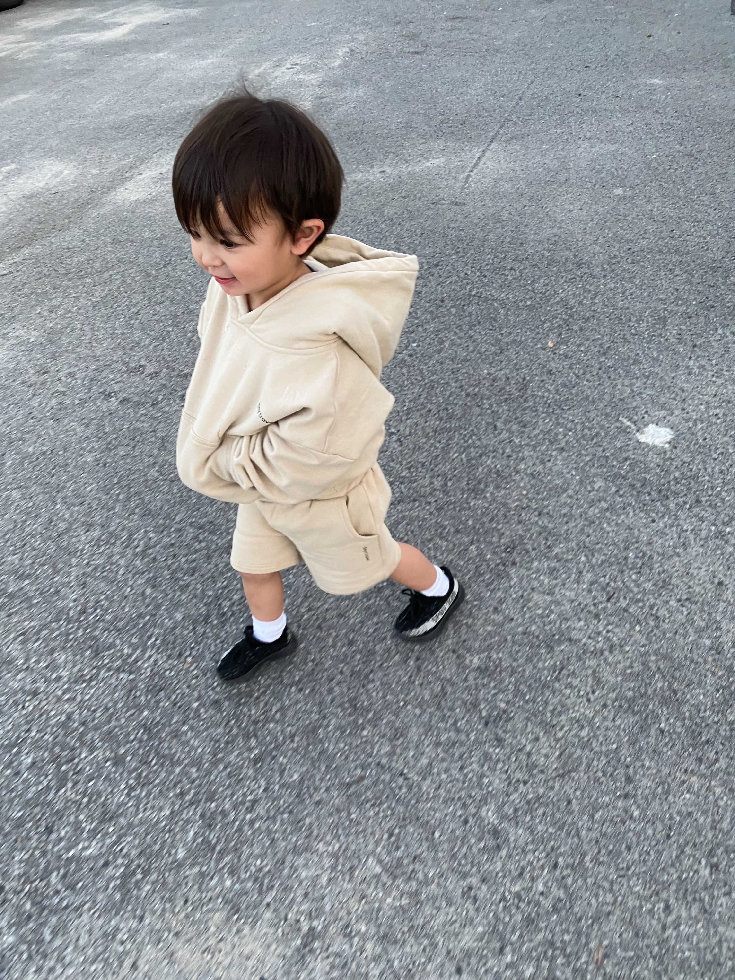 Pair back with the matching Rumi Logo Hoodie Shorts in Beige
