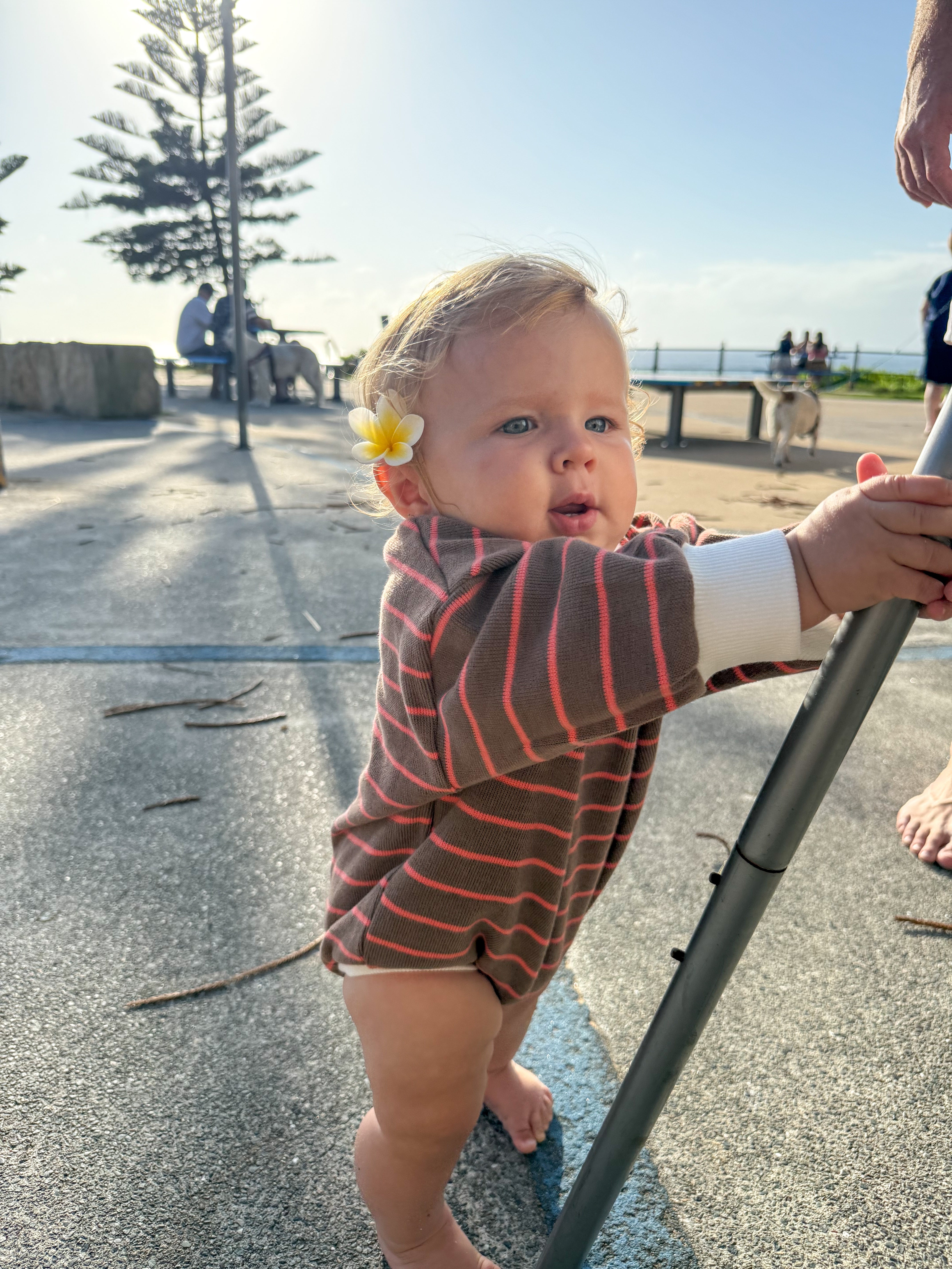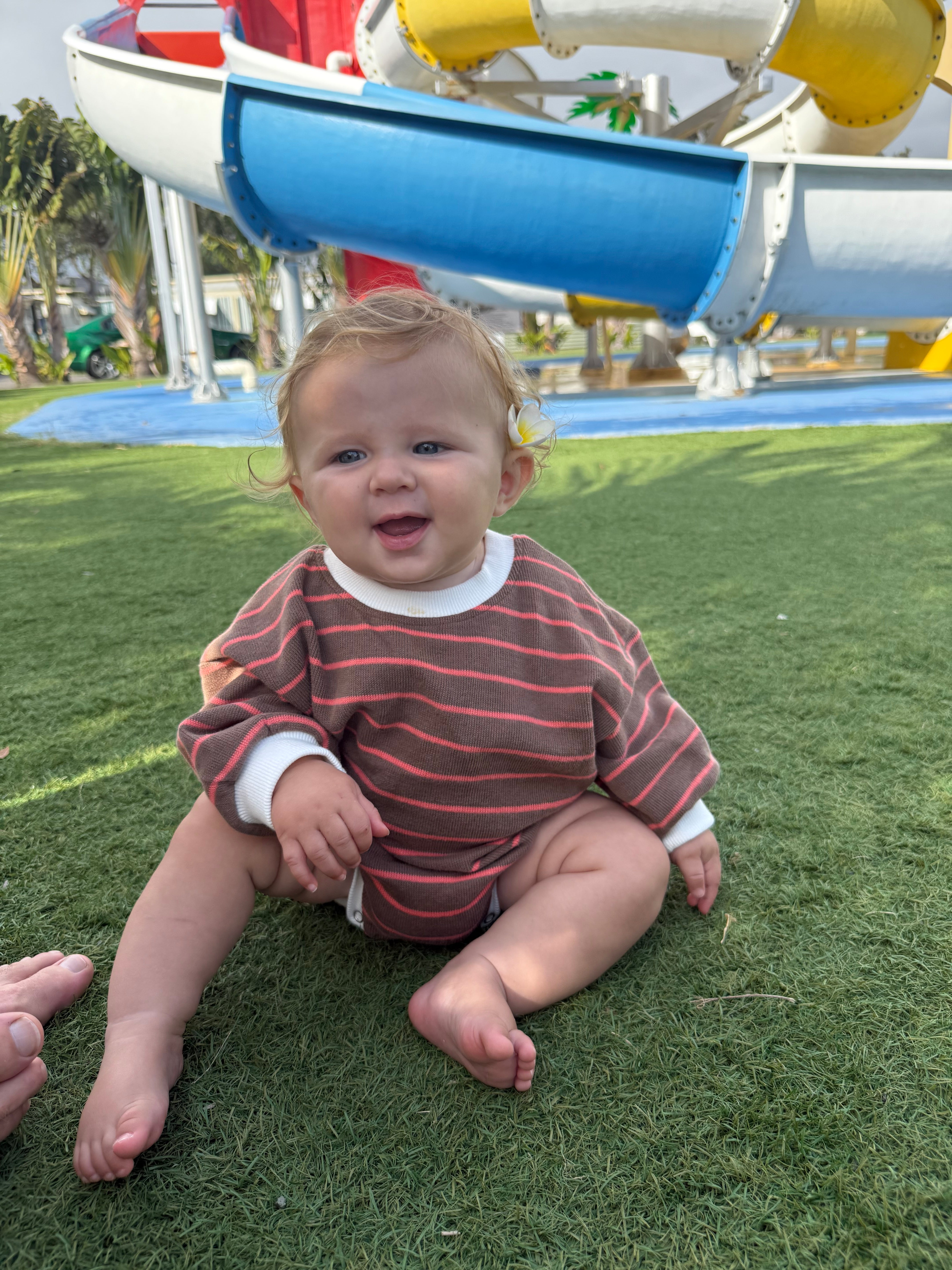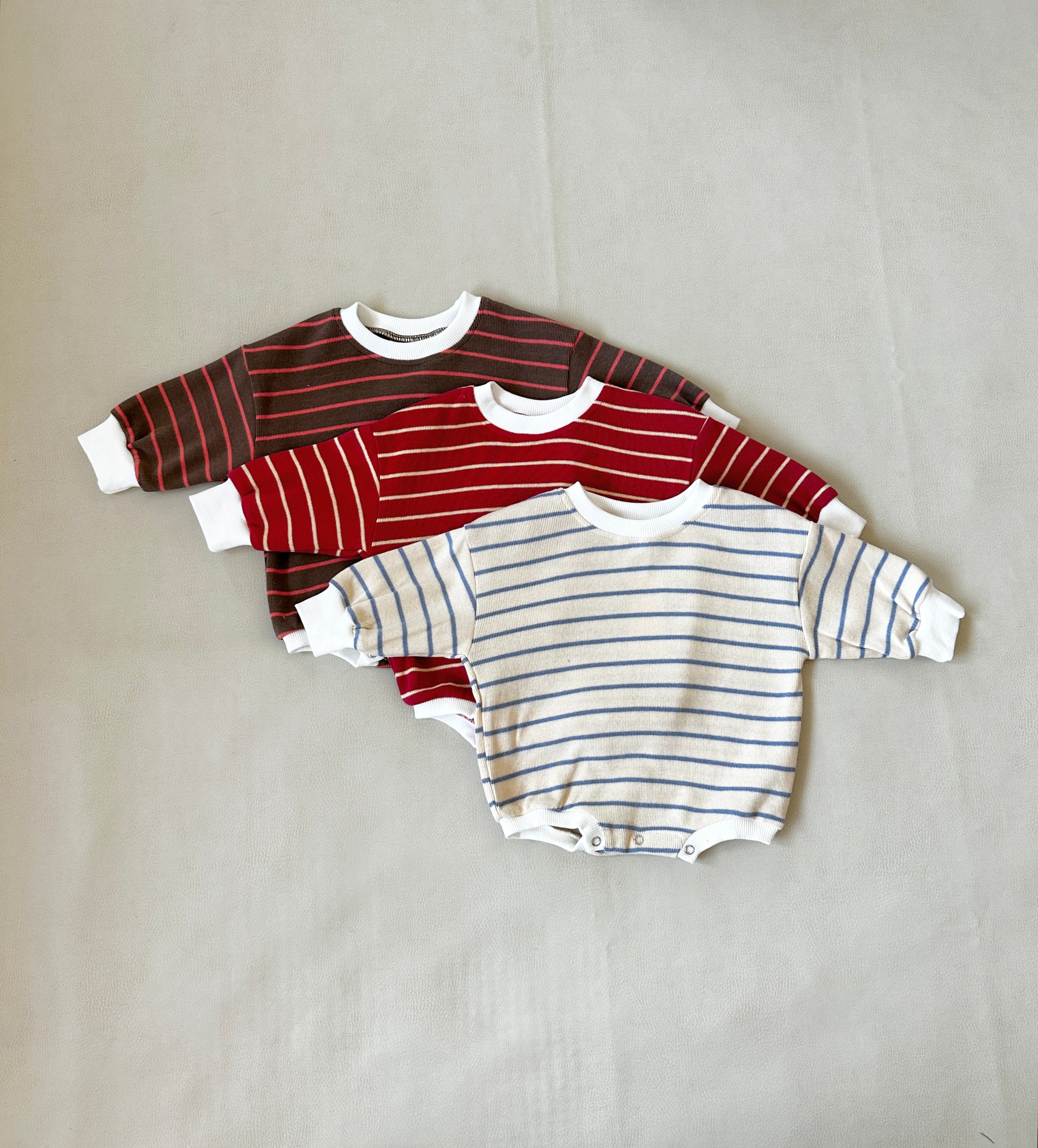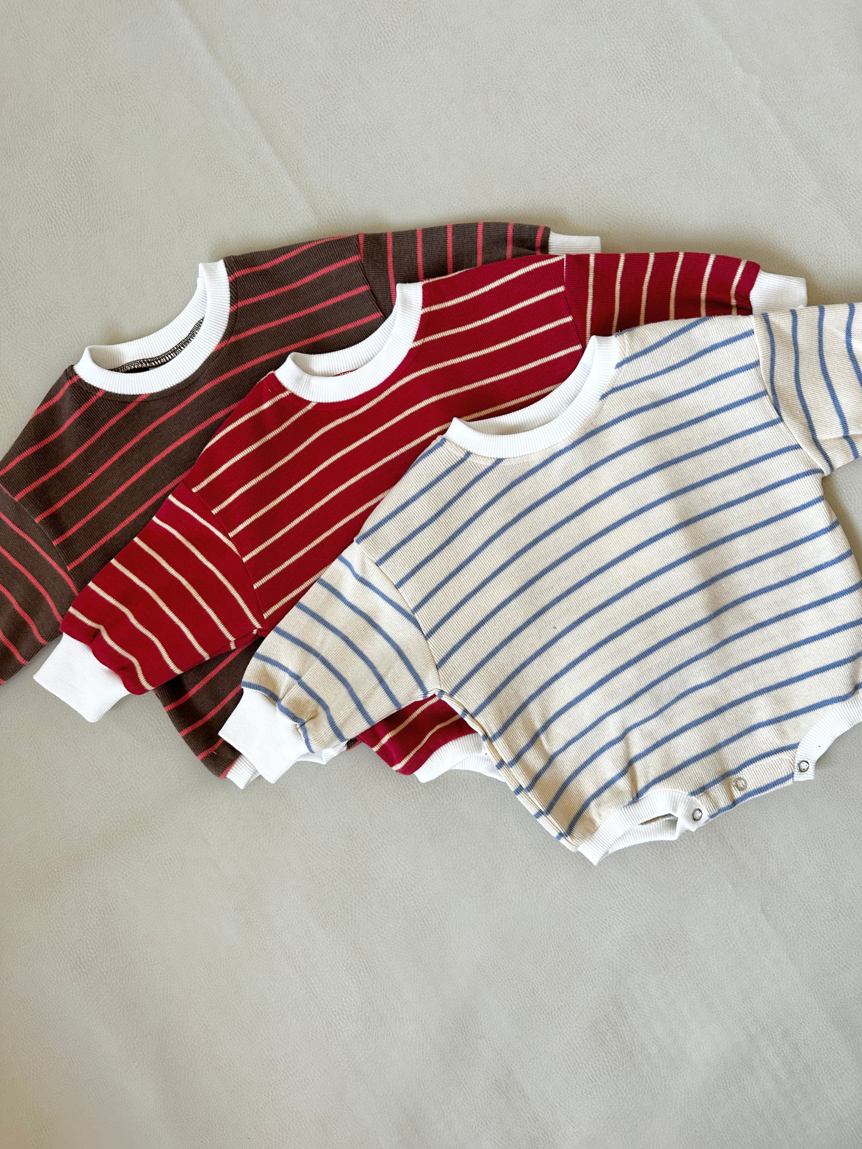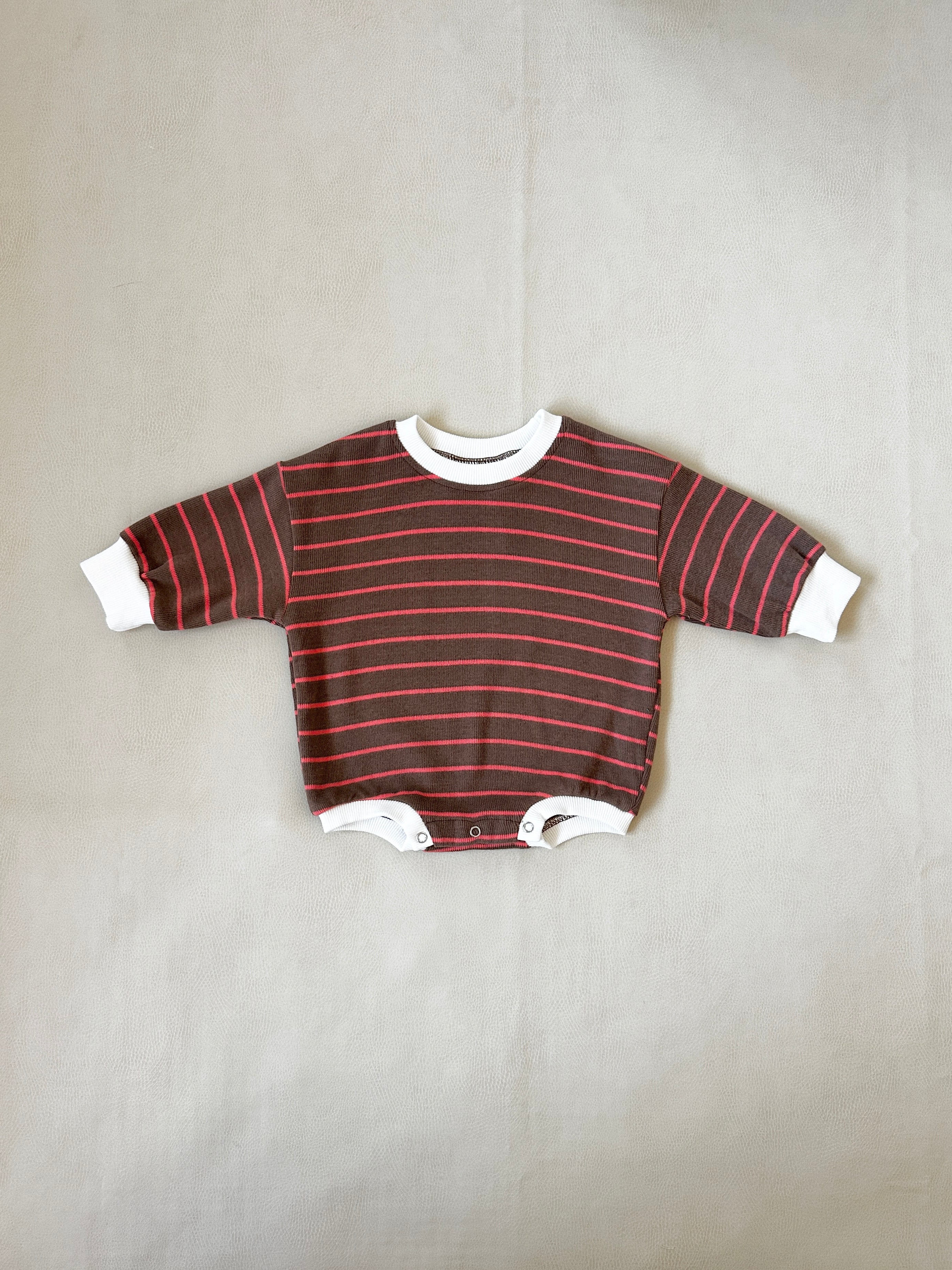 Mabel Stripe Cotton Bodysuit - Cappuccino/Coral