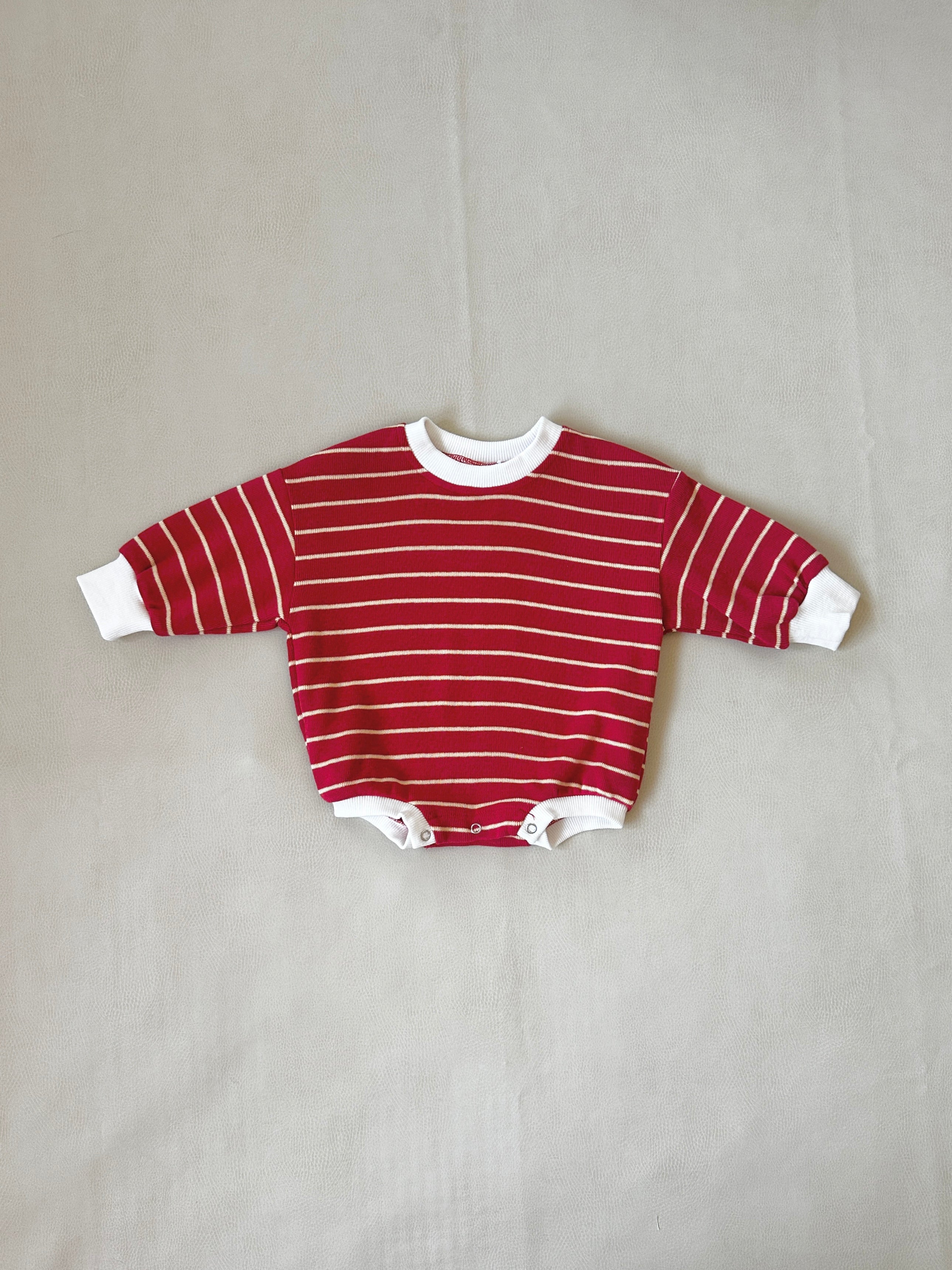 Mabel Stripe Cotton Bodysuit - Red/Cream Stripe