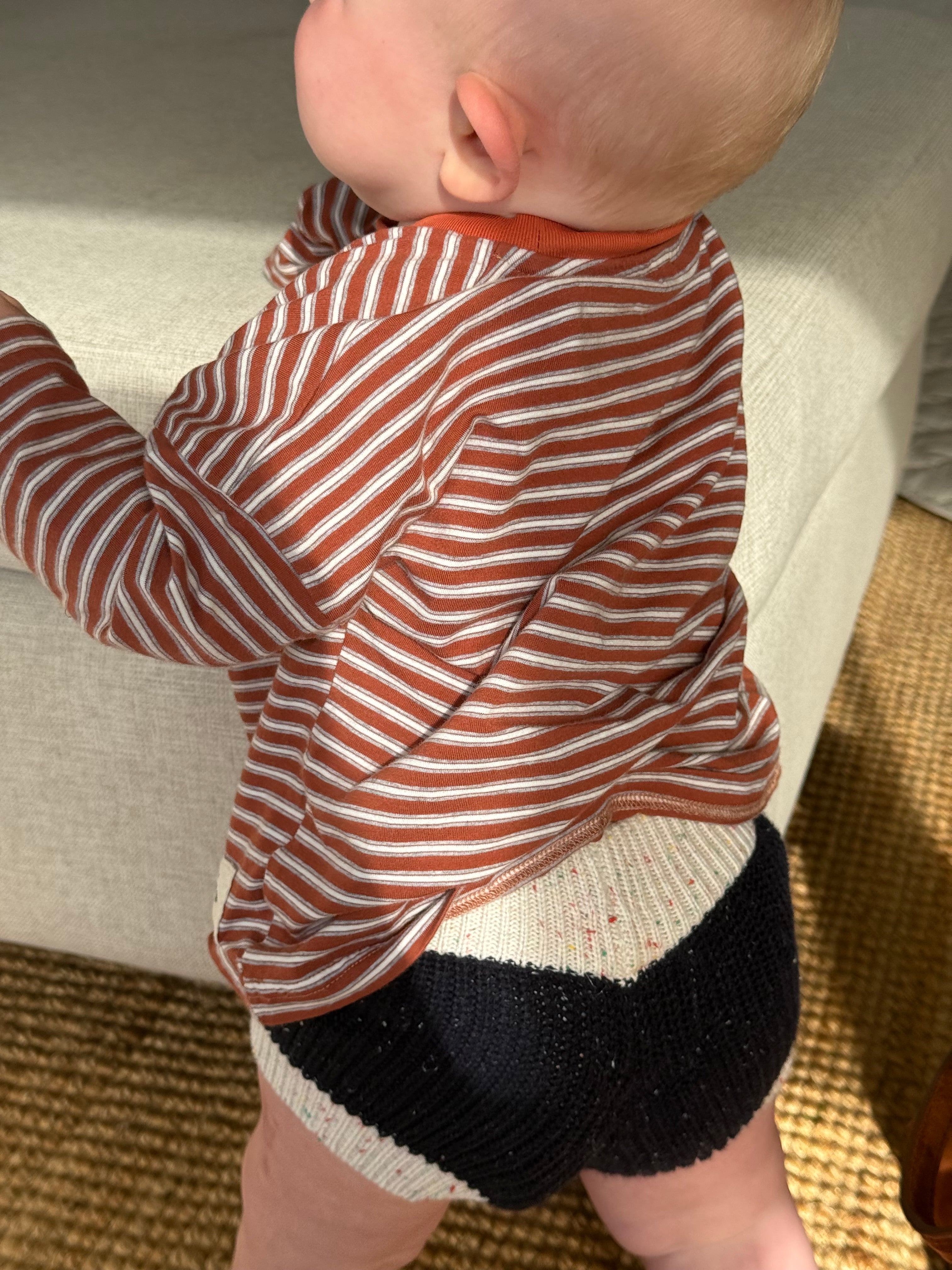 This long sleeve tee is a relaxed fit, so we recommend to take your child's normal size for that comfy-cool style.