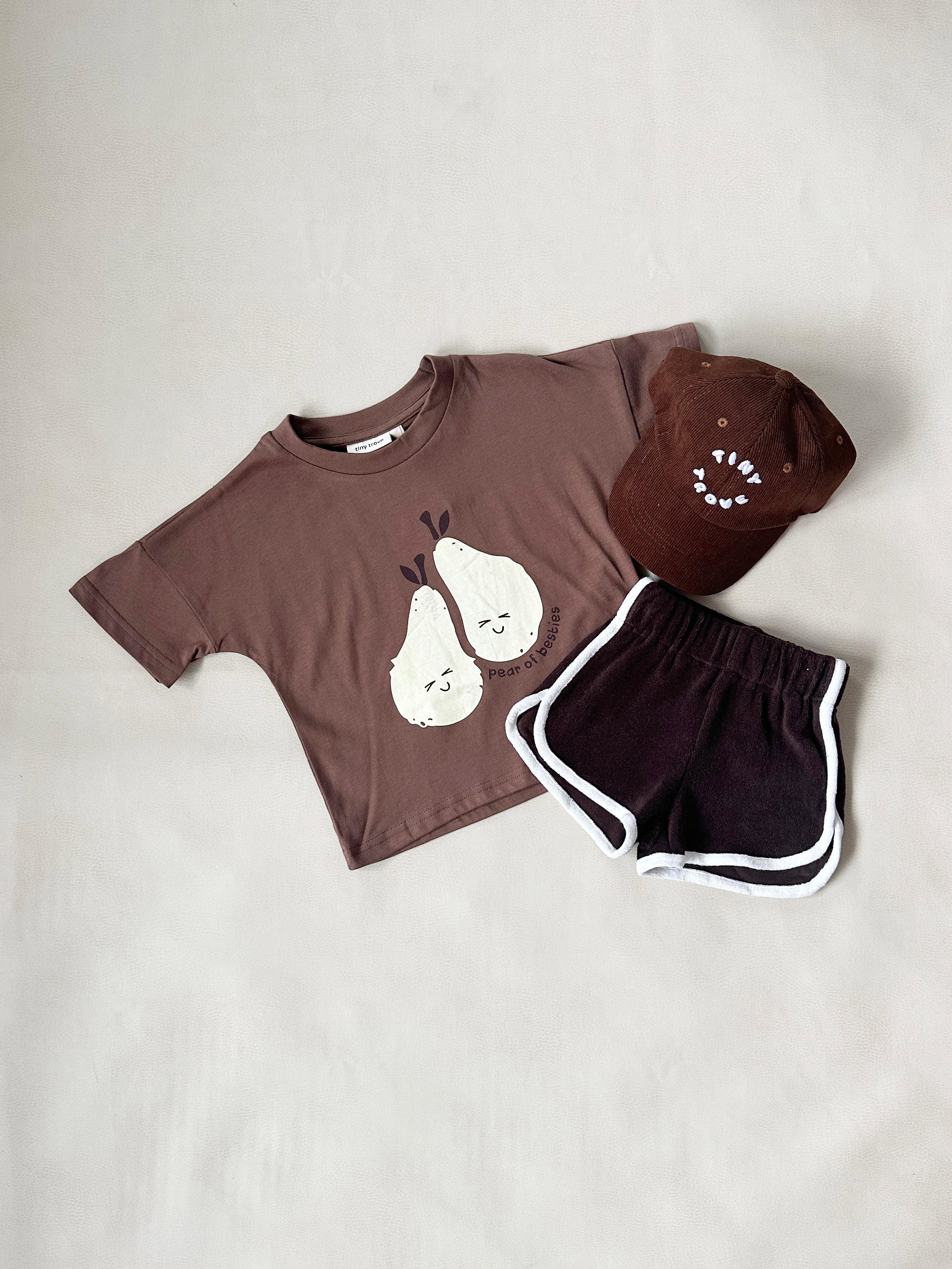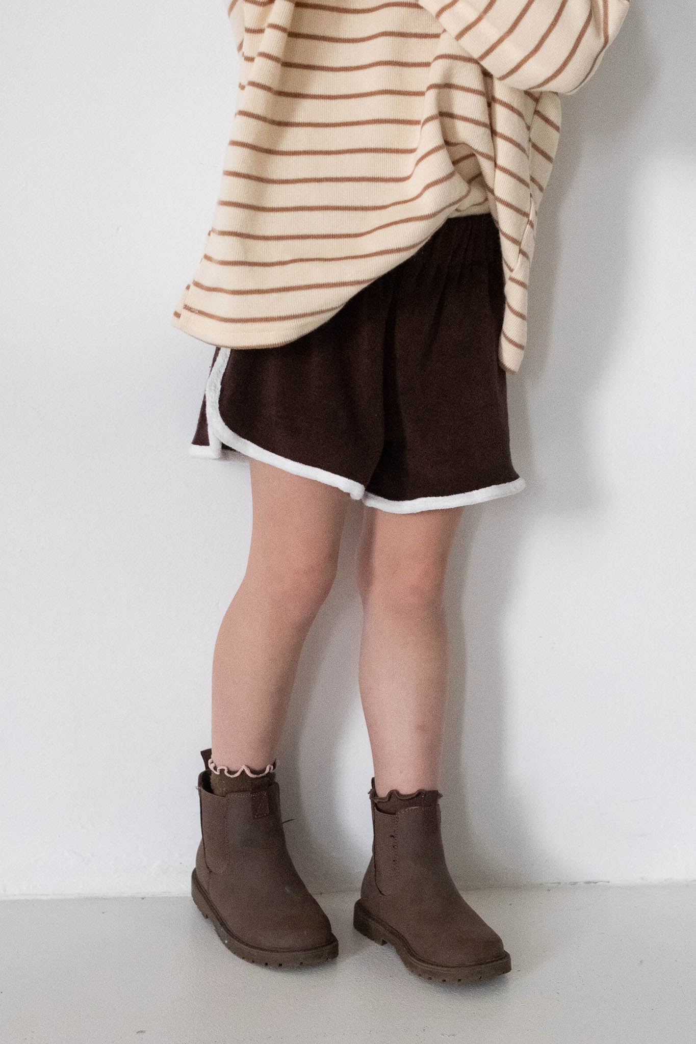 Indi is 4 1/2yo and wears a size 5Y (styled with the top from our Alma Stripe Cotton Set in Cream/Latte)