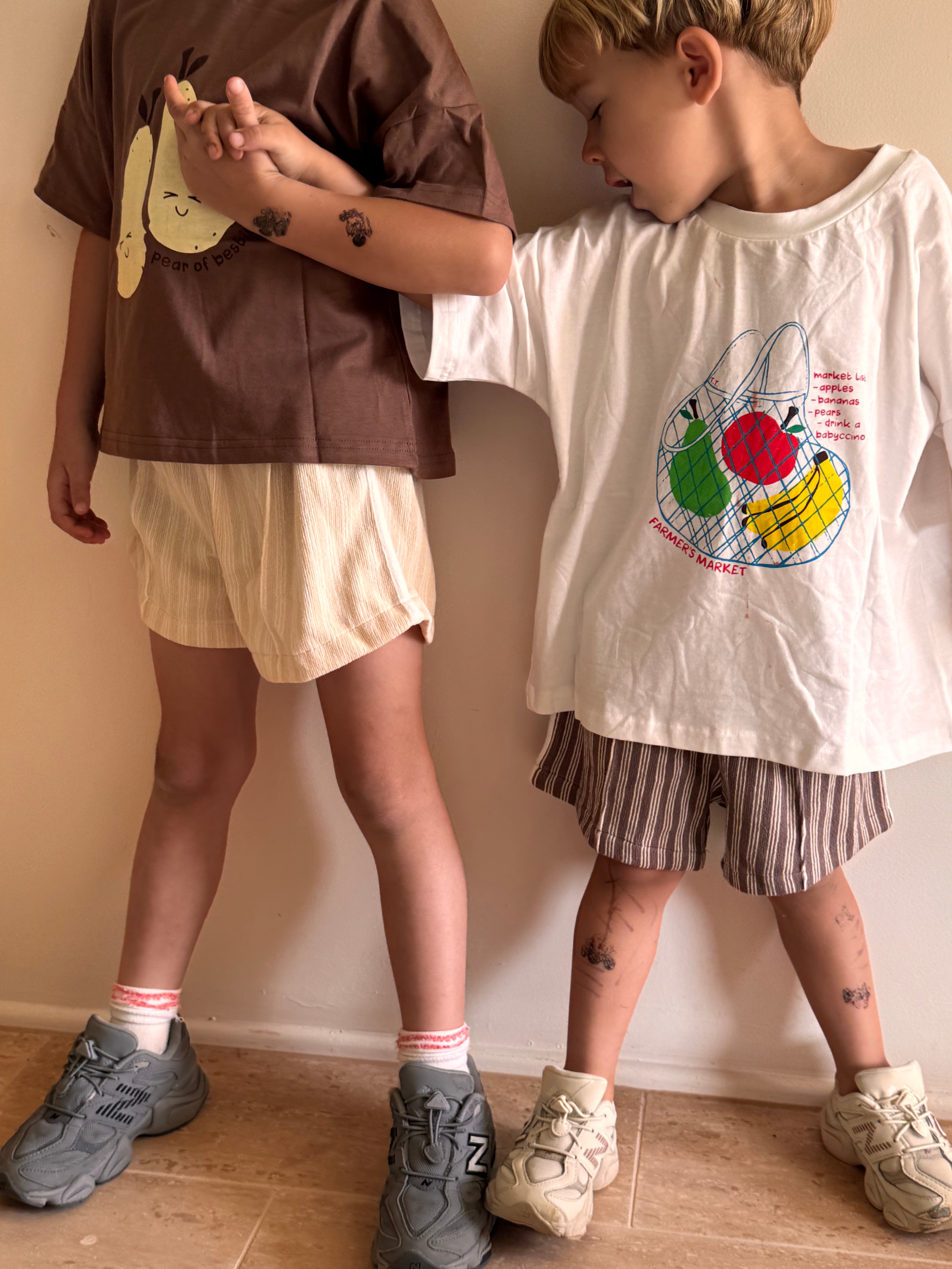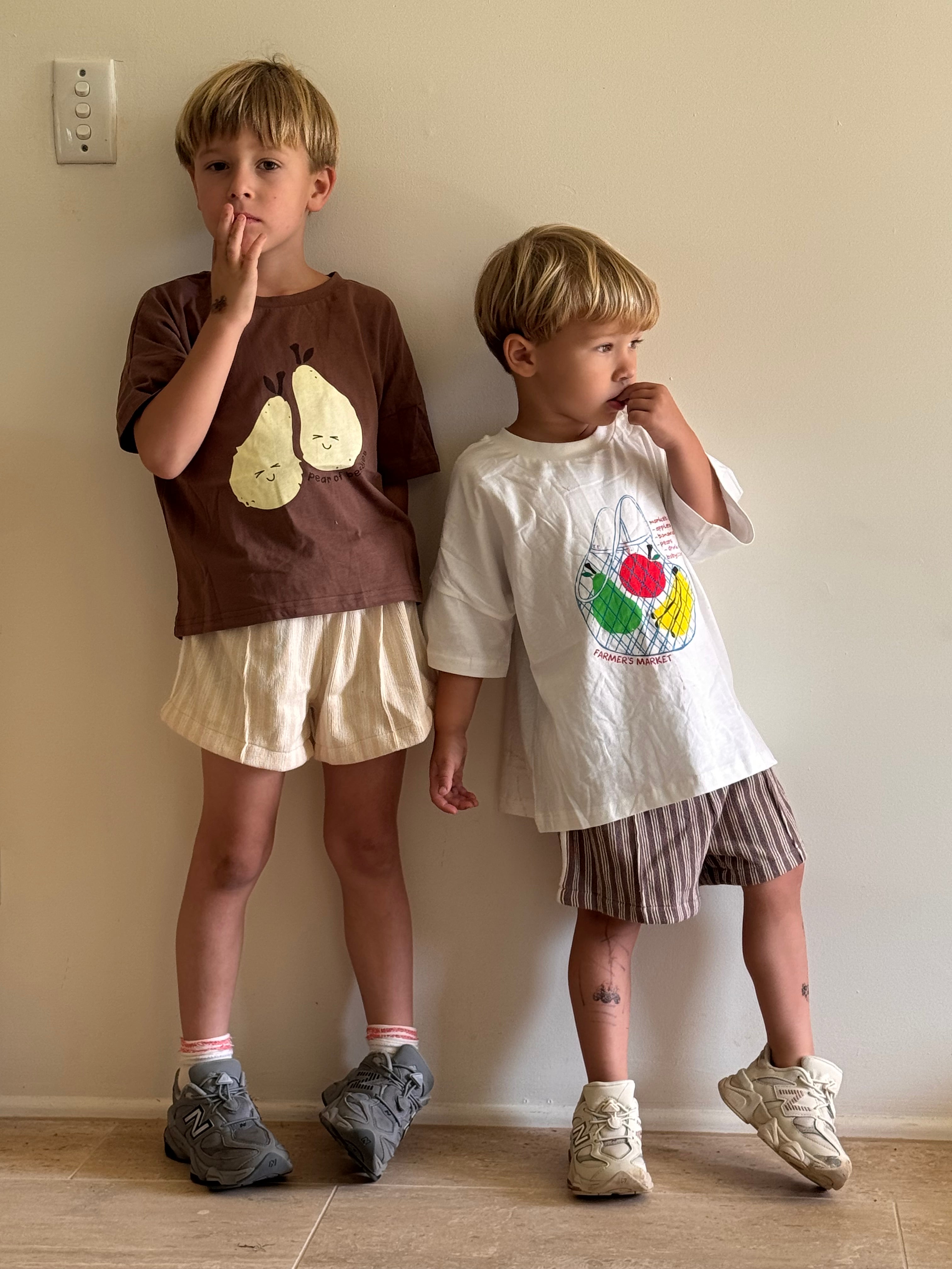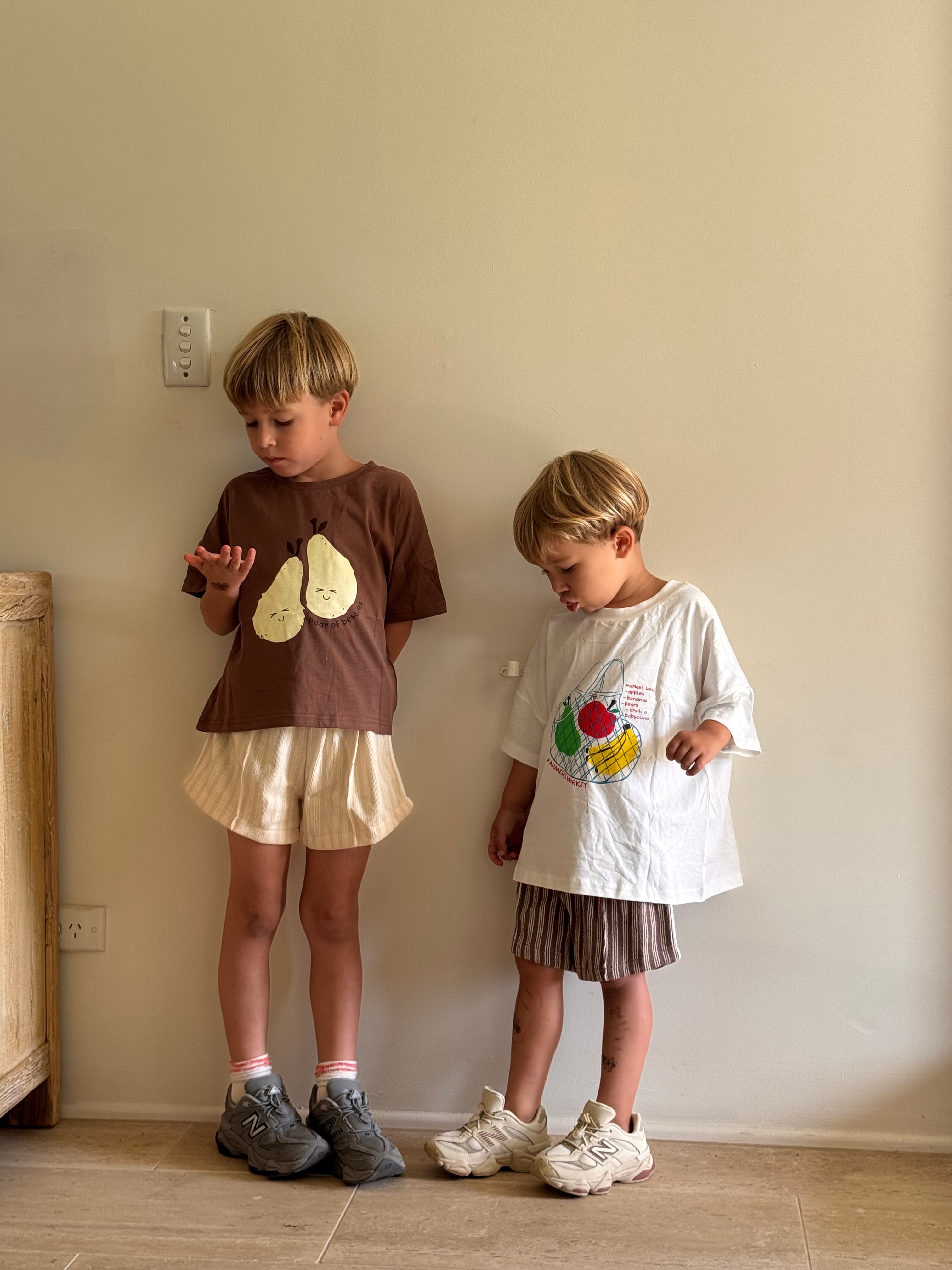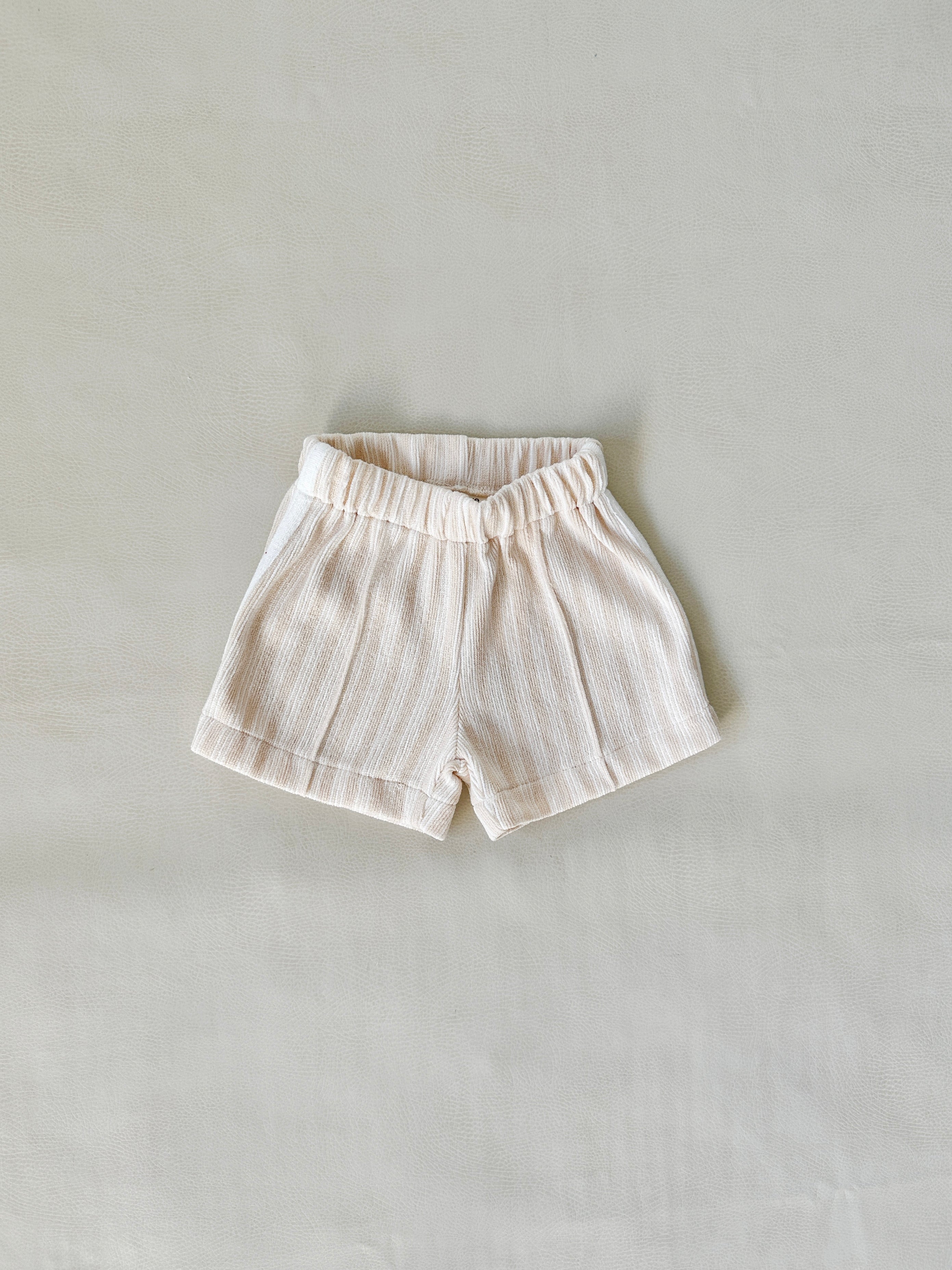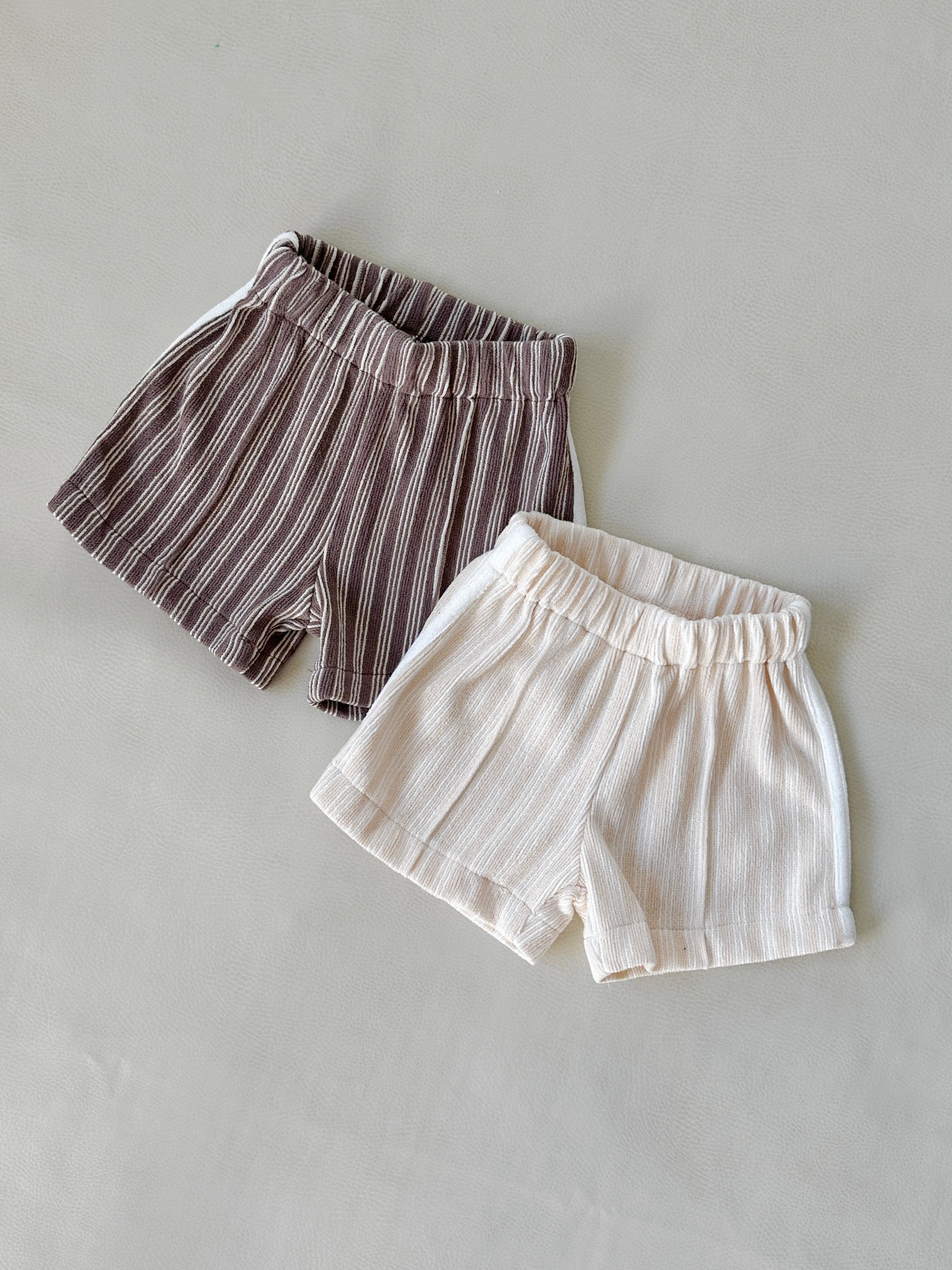 Teo Stripe Cotton Terry Towelling Shorts - Sand Stripe