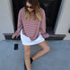 Women's Rhode Stripe Cotton Long Sleeve Tee - Terracotta Stripe