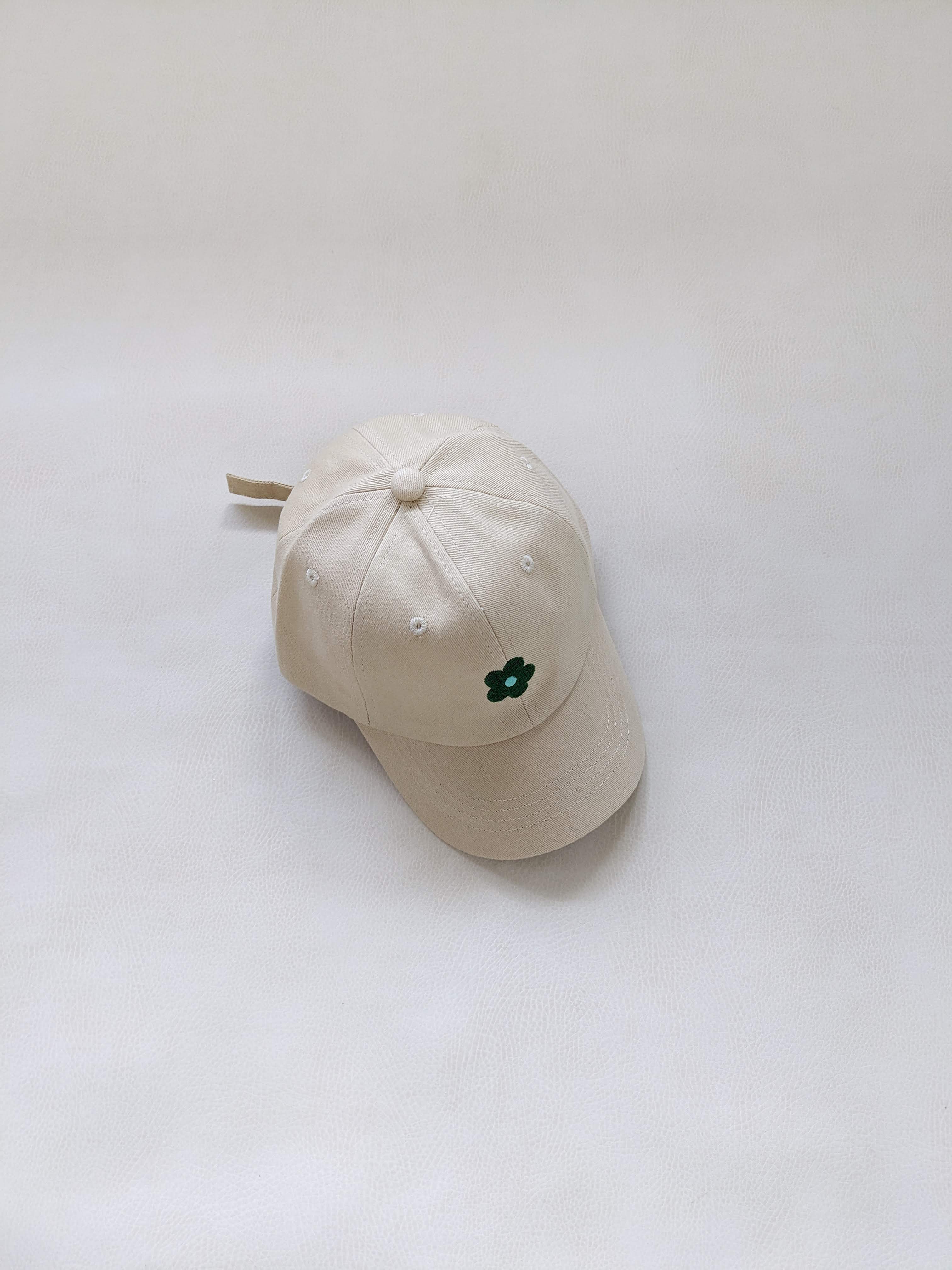 Floral Embroidery Cap - Cream