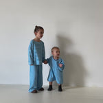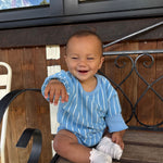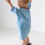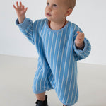 Addie Cotton Stripe Romper - Blue/White Stripe