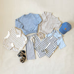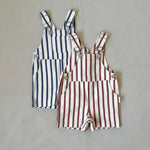 Ellis Stripe Cotton Overalls - Cream/Blue Stripe