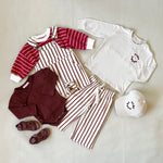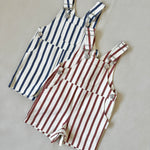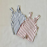 Ellis Stripe Cotton Overalls - Cream/Maroon Stripe