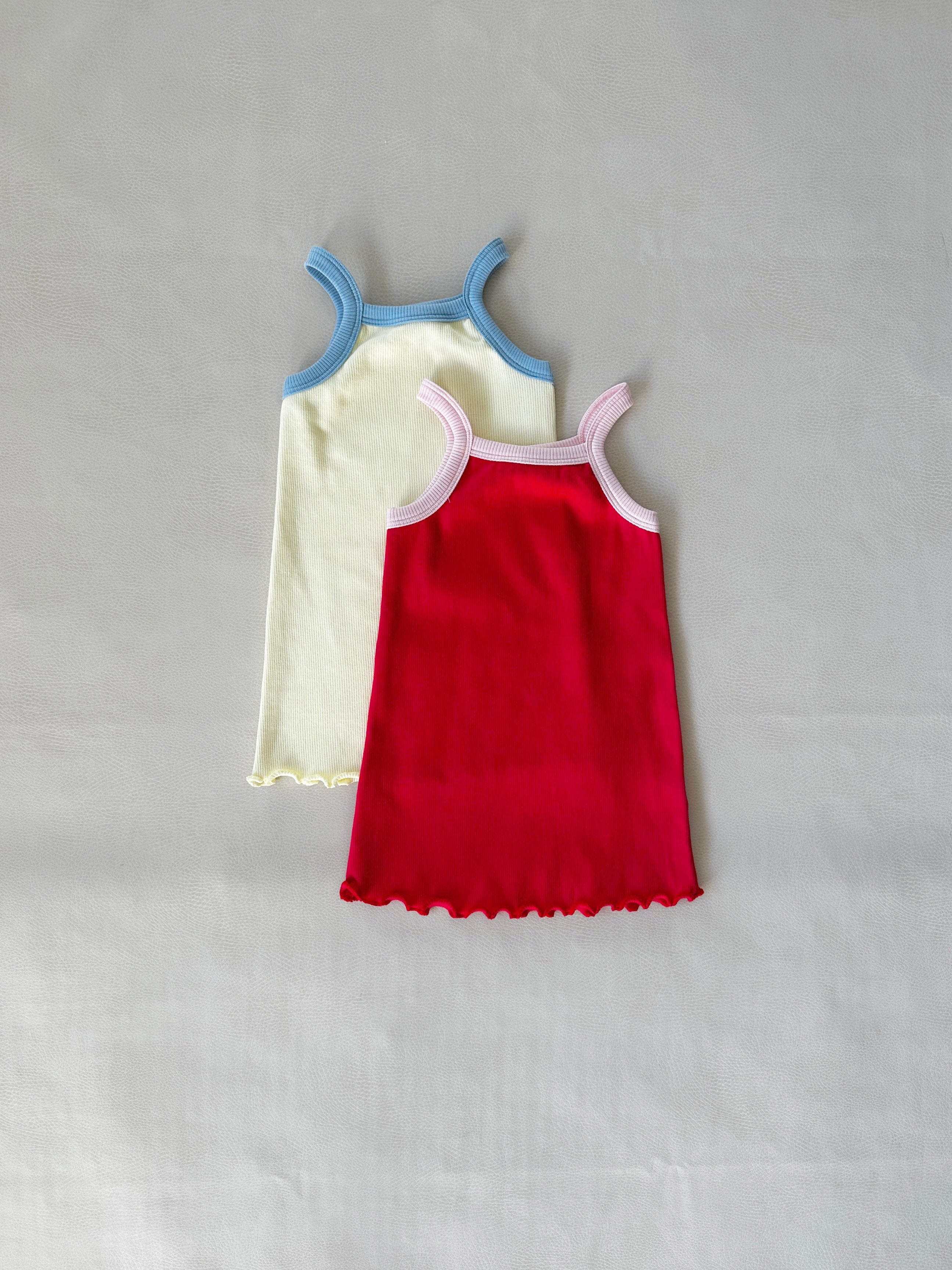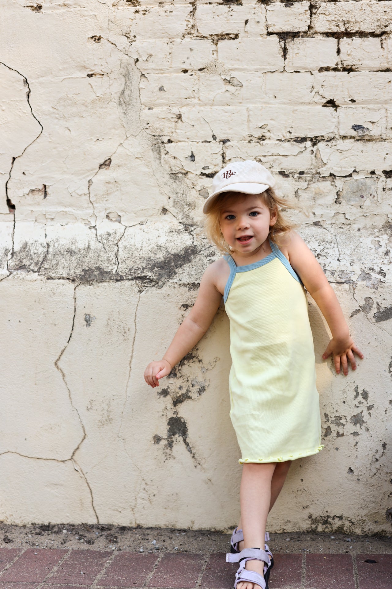 Elsie Mini Ribbed Dress - Lemon Sherbet/Sky Blue