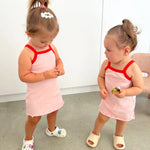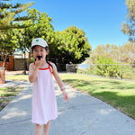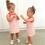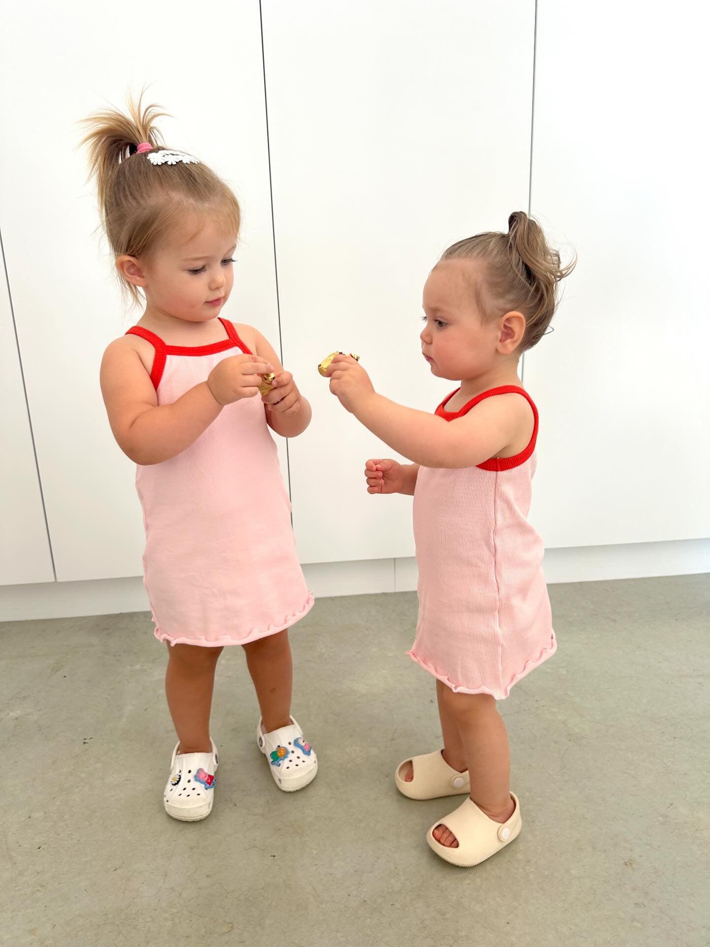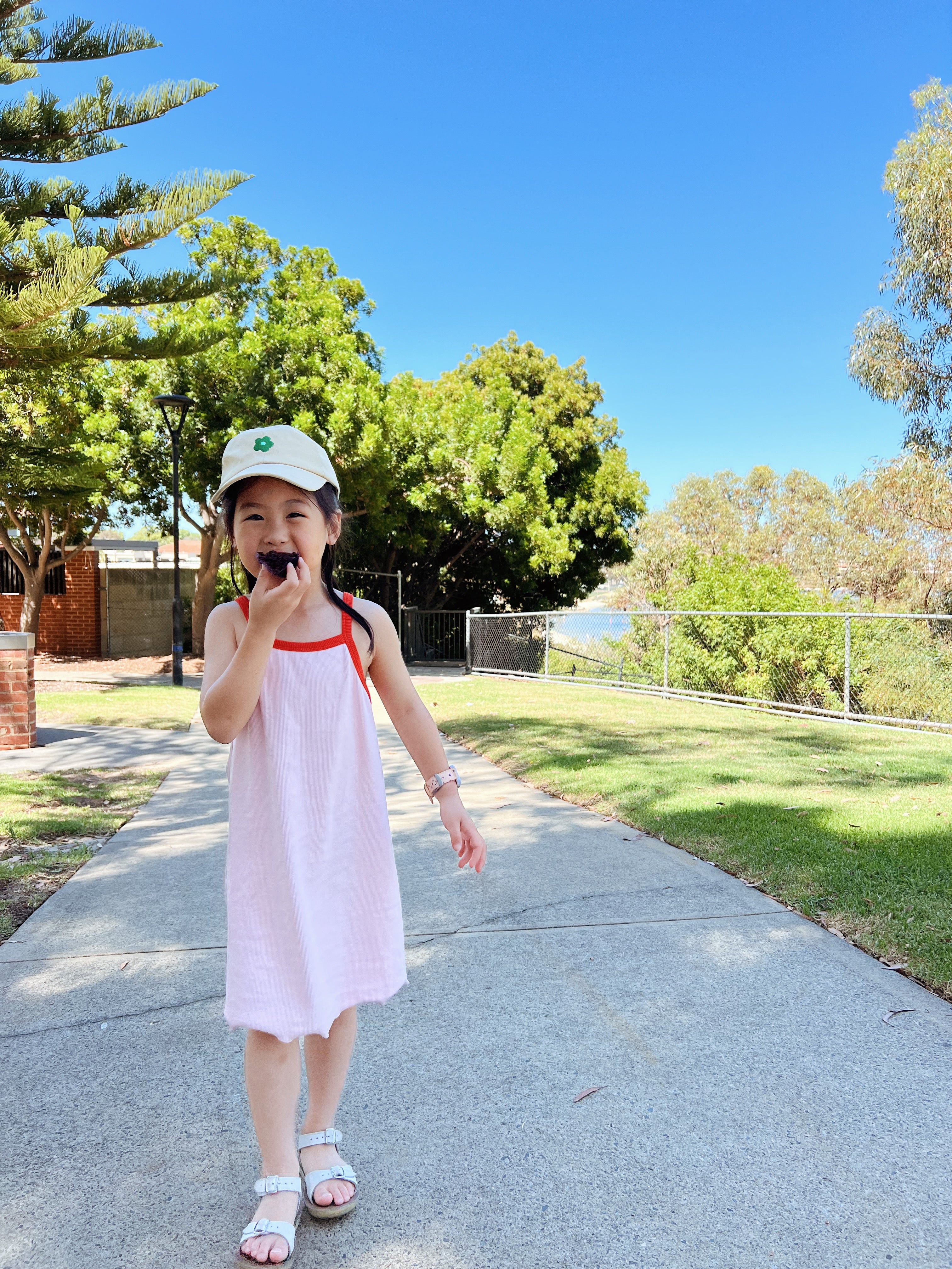 We love this dress but it runs REALLY small, size 3 is suoer short on my 2.5 year old. I should have bought size 4 to last more than a couple months.
