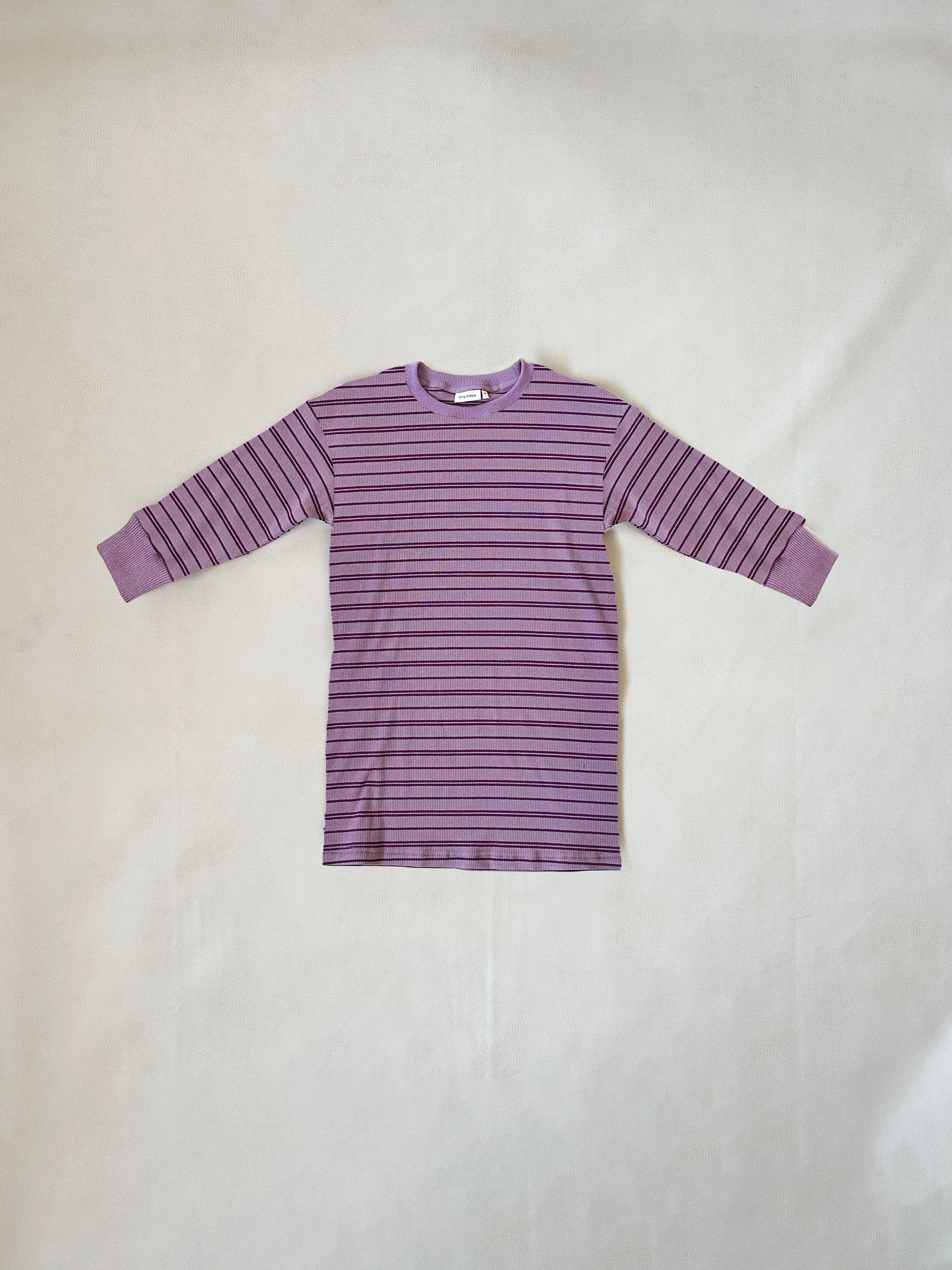 Hallie Stripe Rib Cotton Dress - Mauve/Plum Stripe