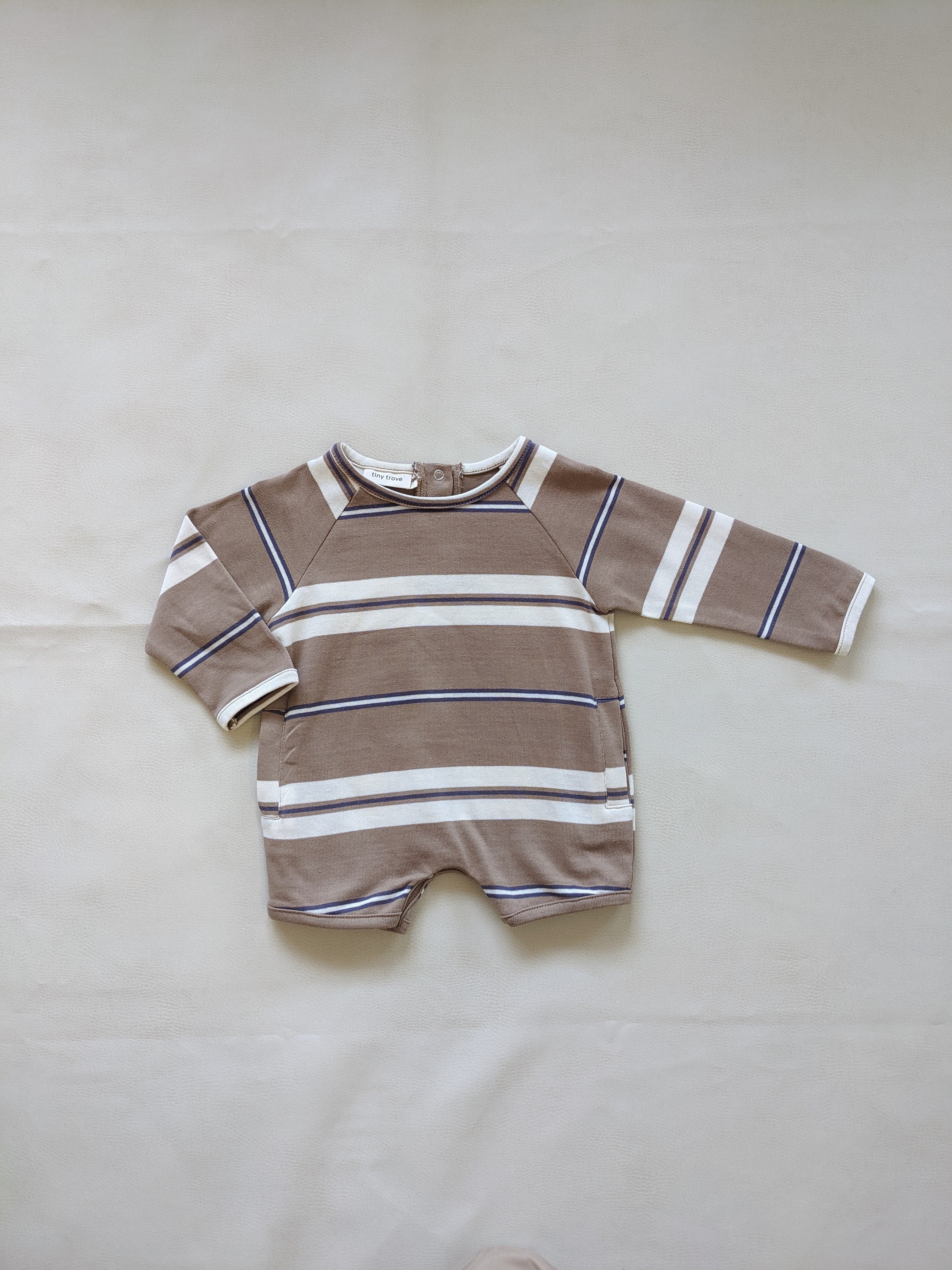 Addie Cotton Stripe Romper - Blue/White Stripe