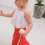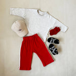Style with our Romy Long Sleeve Tee in Light Grey Marle, Face Socks in Cherry and Olympia Velcro Sandals in Checkerboard