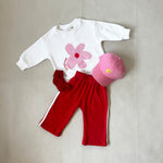 Style with our Flower Jumper, Floral Embroidery Cap in Pink and Face Socks in Cherry