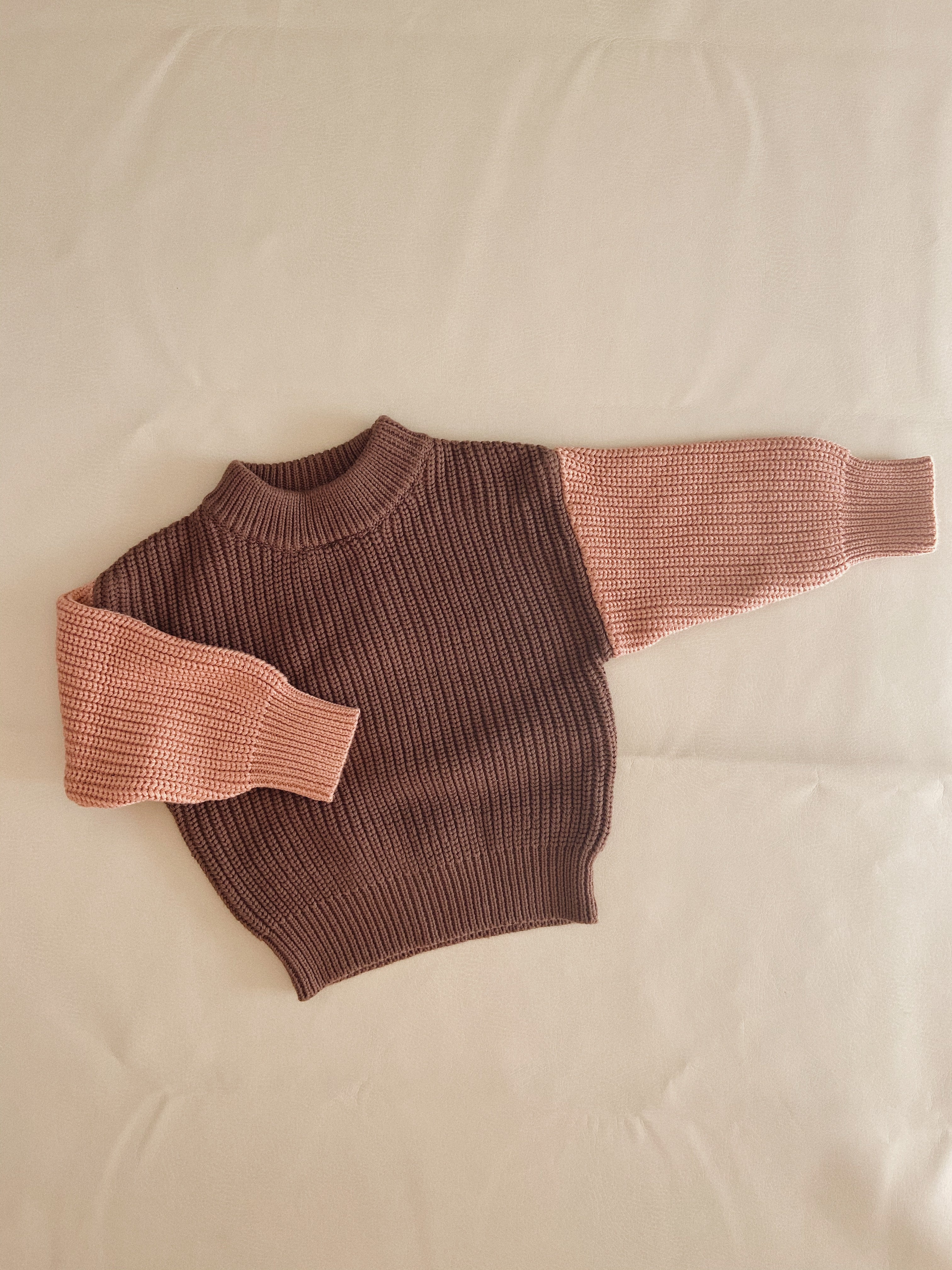 Martin Colour Block Knit Jumper - Cocoa/Clay
