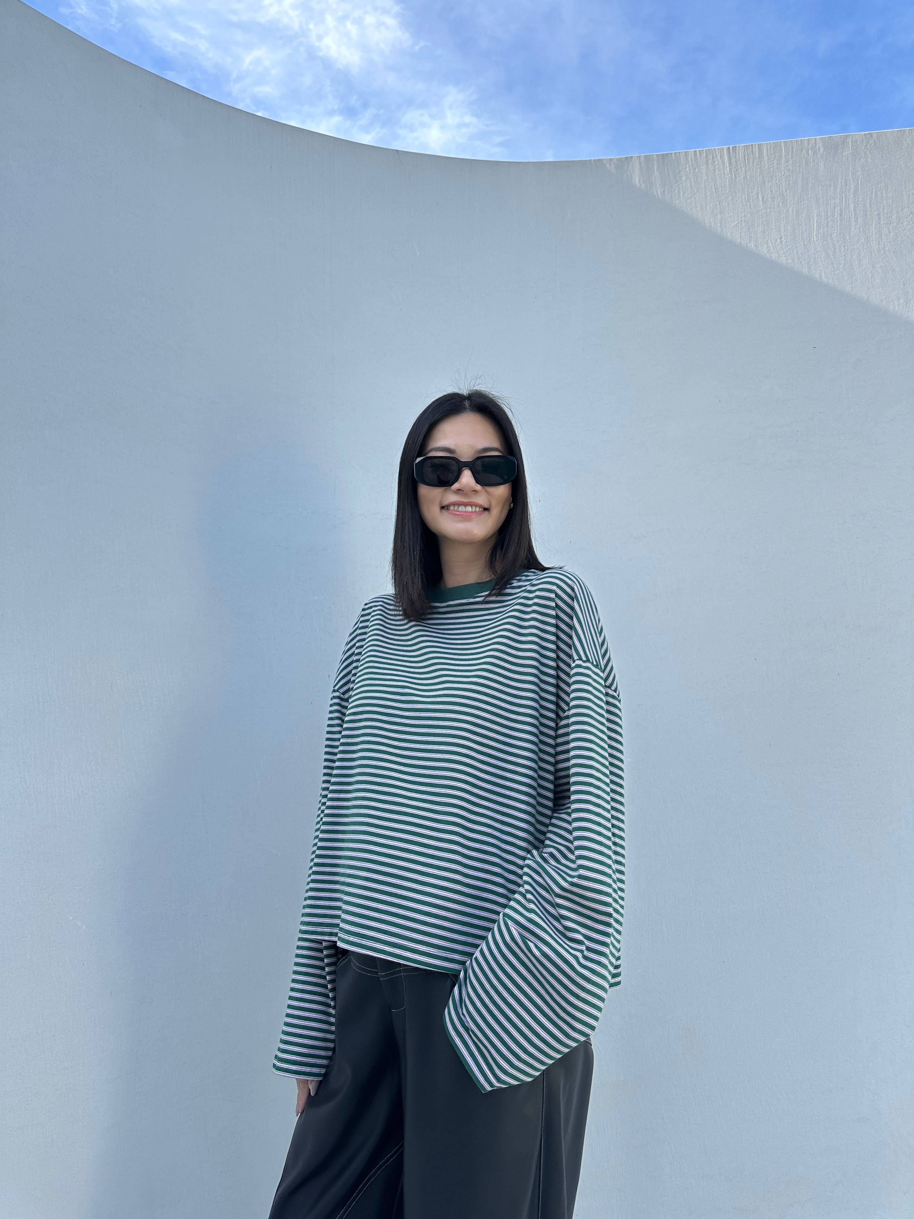 Women's Rhode Stripe Cotton Long Sleeve Tee - Forest Stripe