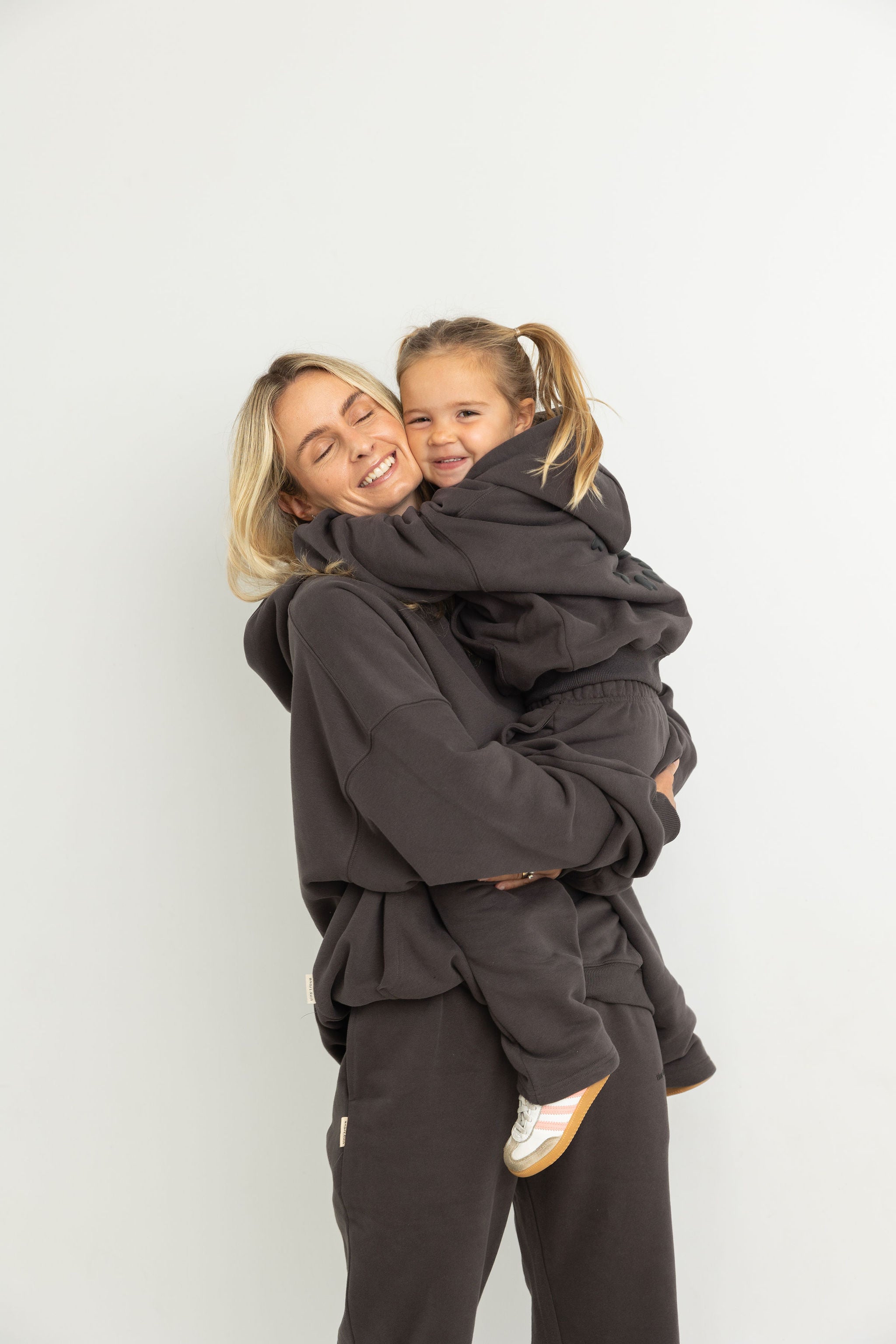 Match with your mini - shop the Adult Sporty Cotton Hoodie in Charcoal here and the Adult Sporty Cotton Tracksuit Pants here