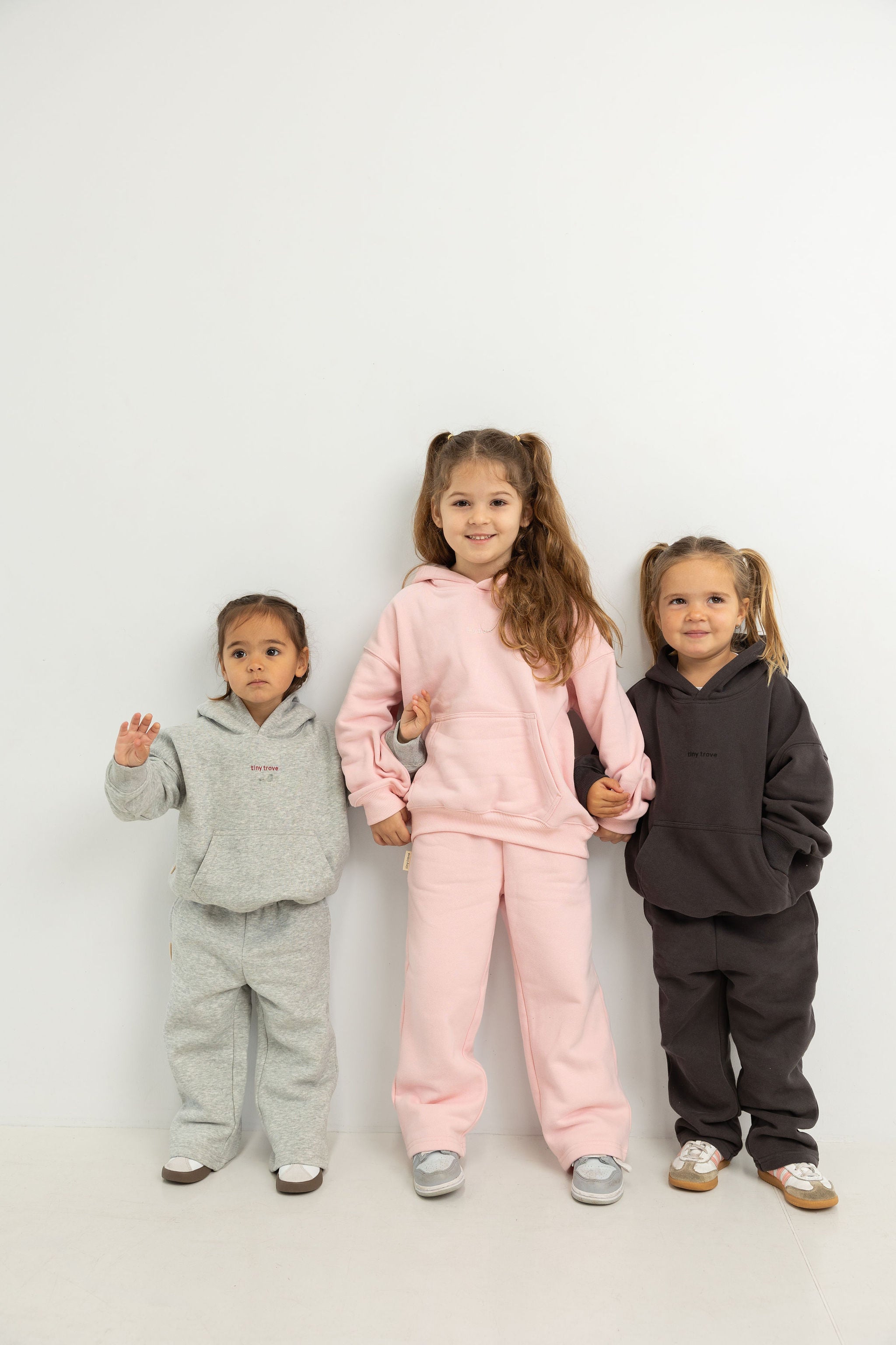 This set contains a relaxed fit hoodie, with relaxed fit wide leg pants - we recommend taking your child's normal size (however you are also welcome to size up for longer wear - our little ones grow so fast!)