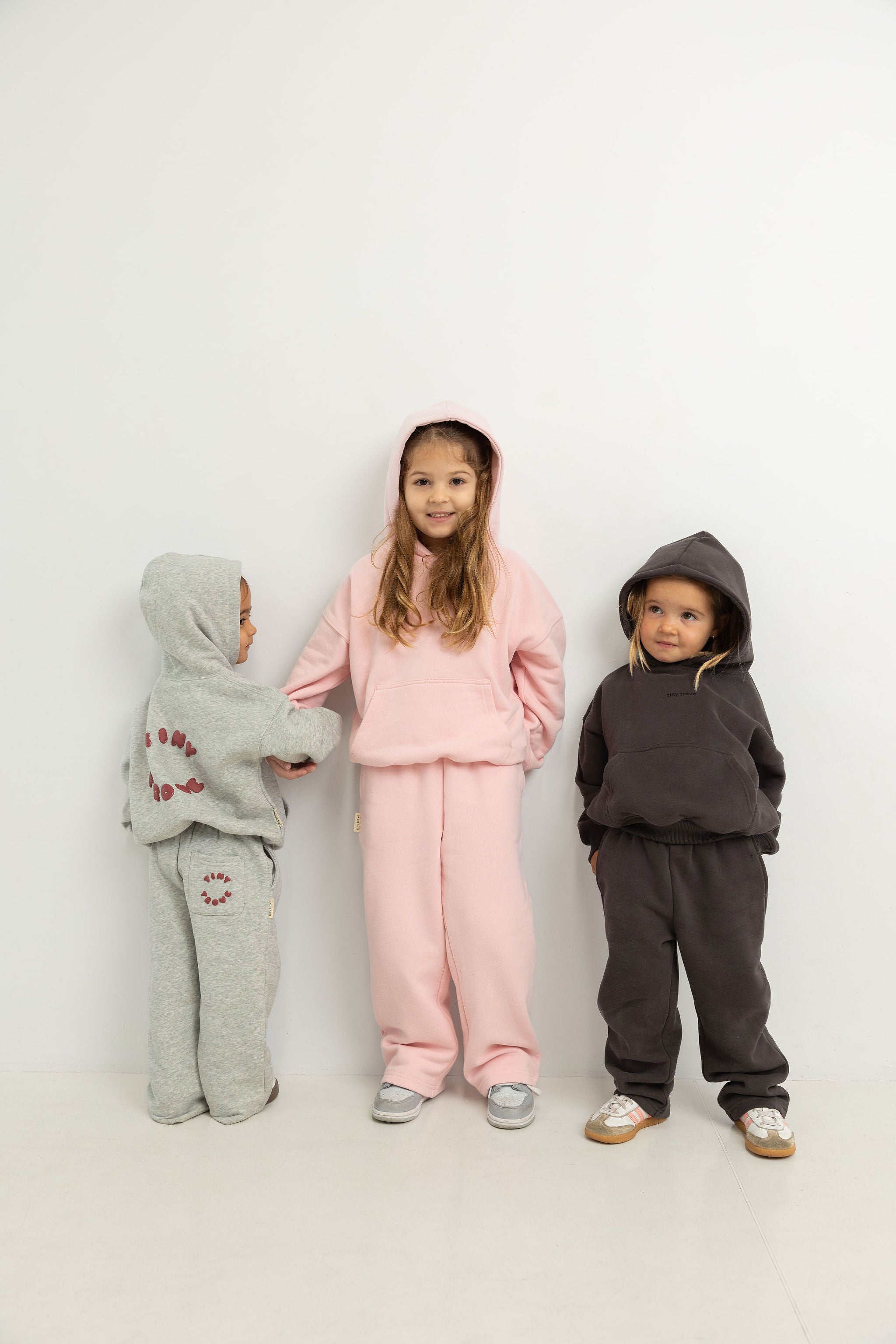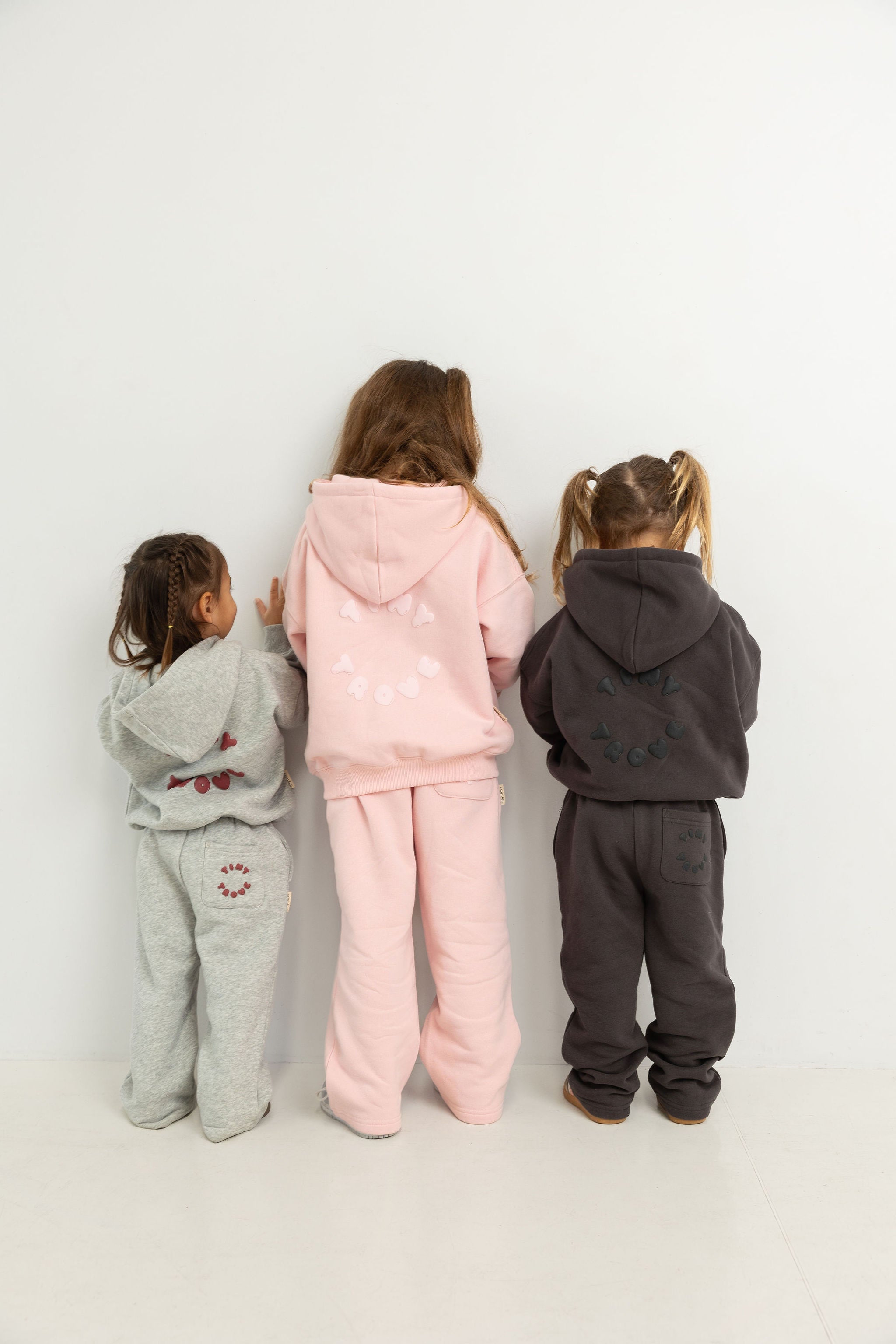 Features our signature circle logo on the back of the hoodie and back pocket of the pants in puff print - for that extra cute look.