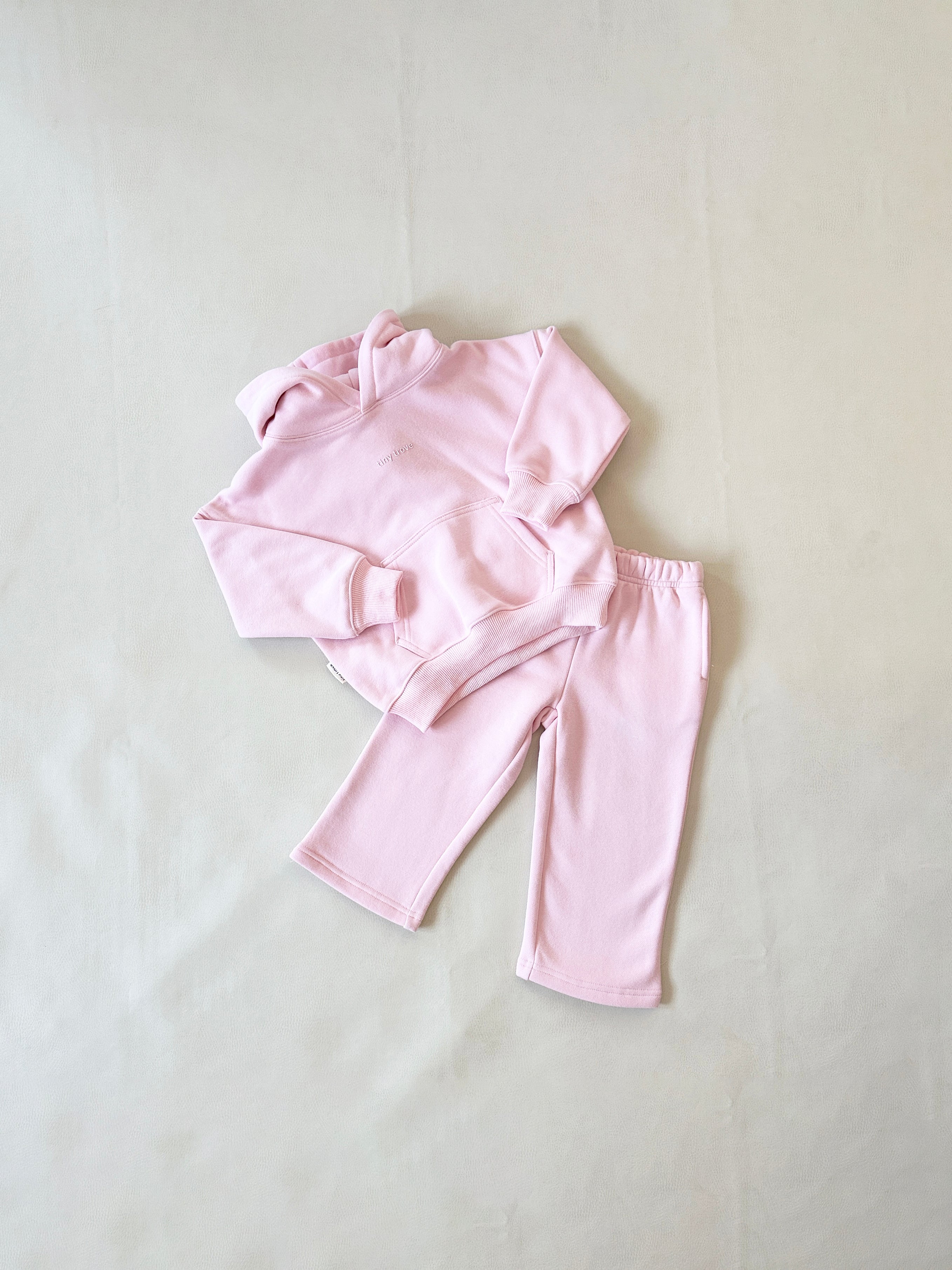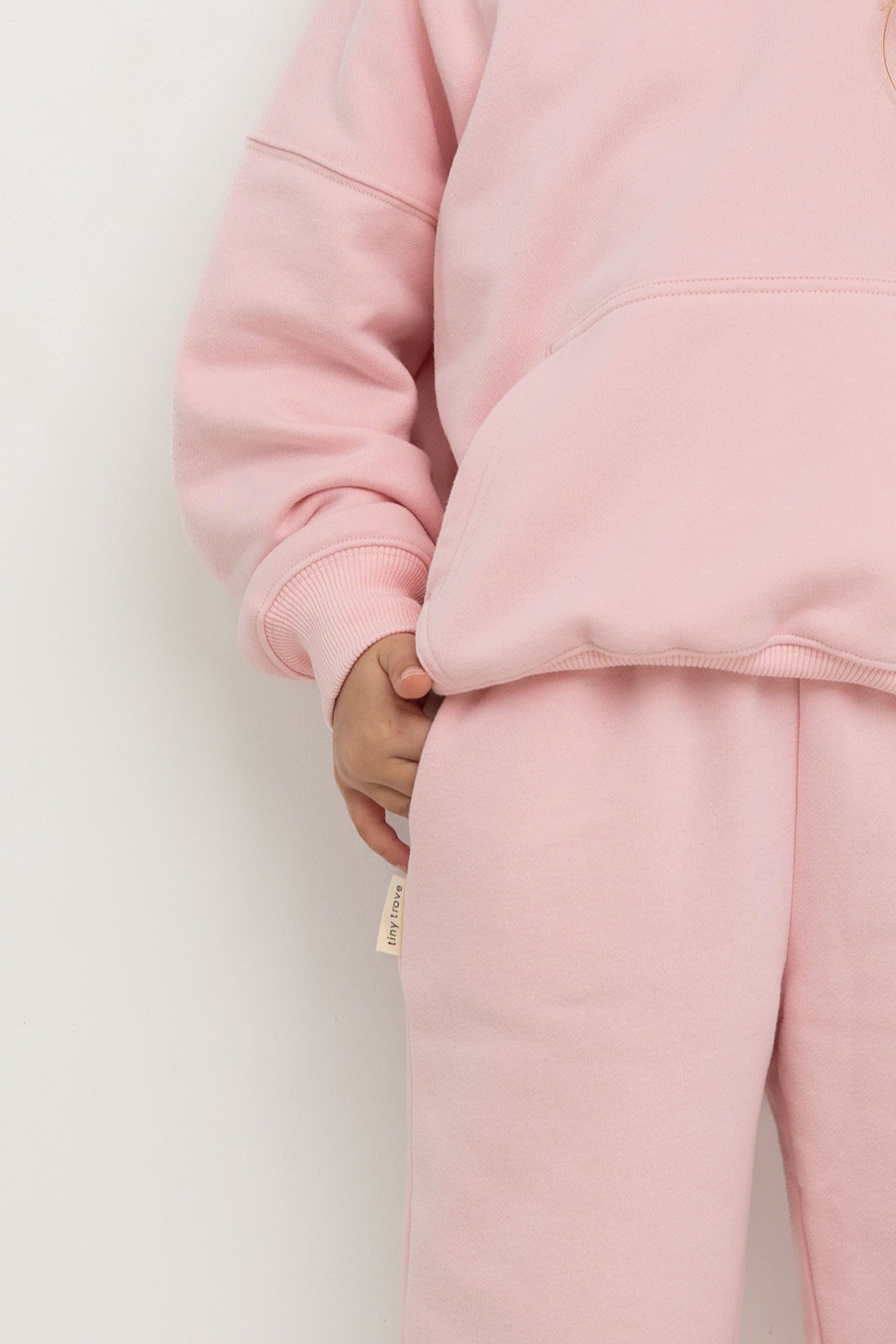 Sporty Puff Print Cotton Hoodie Tracksuit Set - Pink