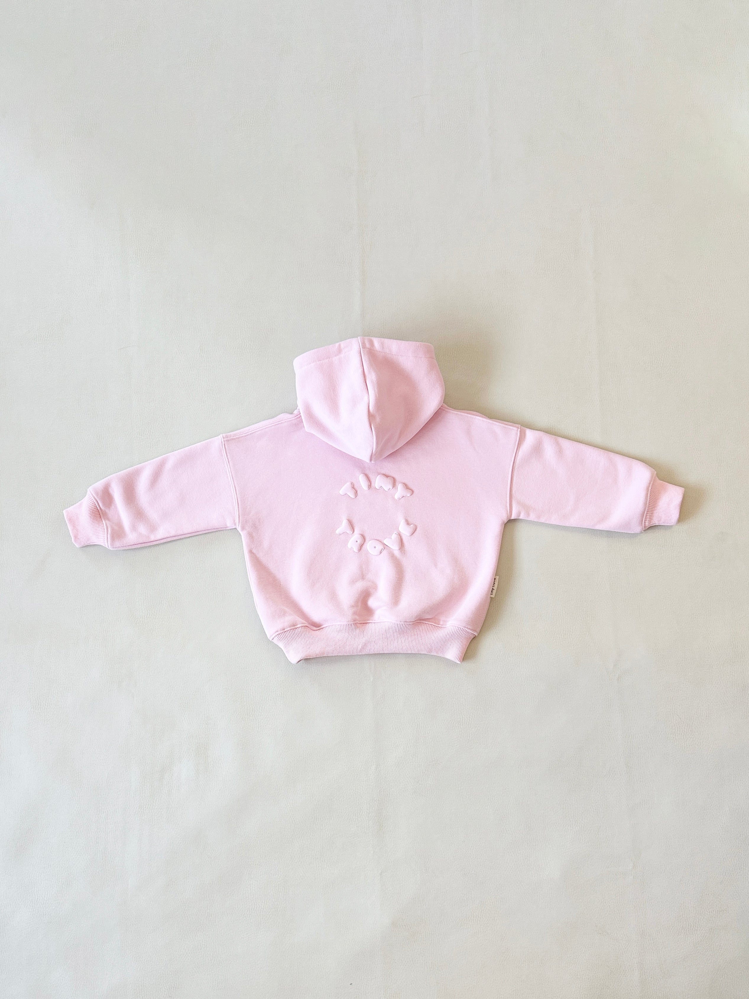 Features our signature circle logo on the back of the hoodie and back pocket of the pants in puff print - for that extra cute look.
