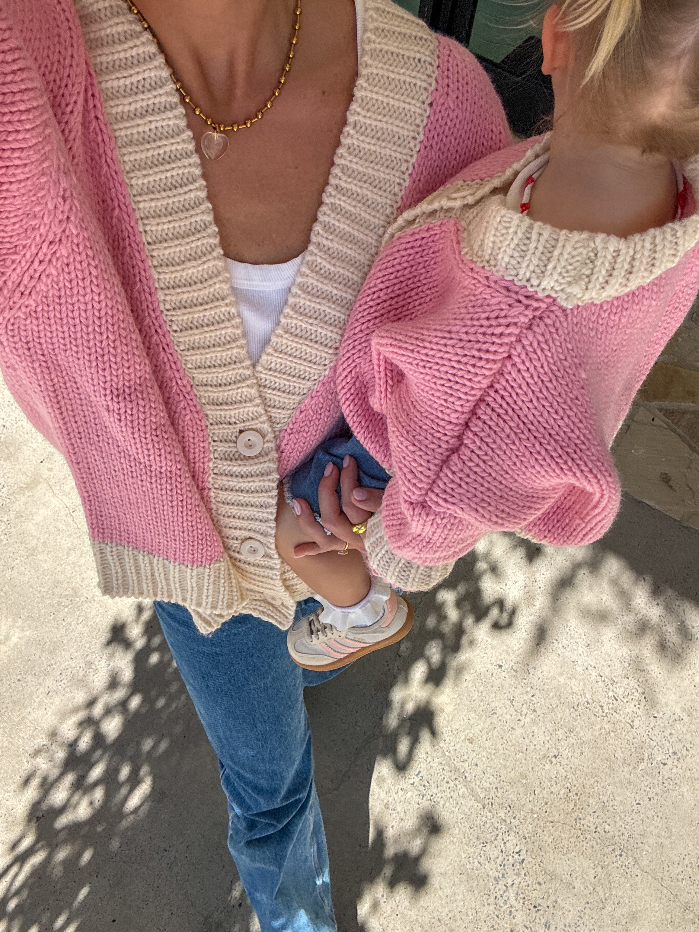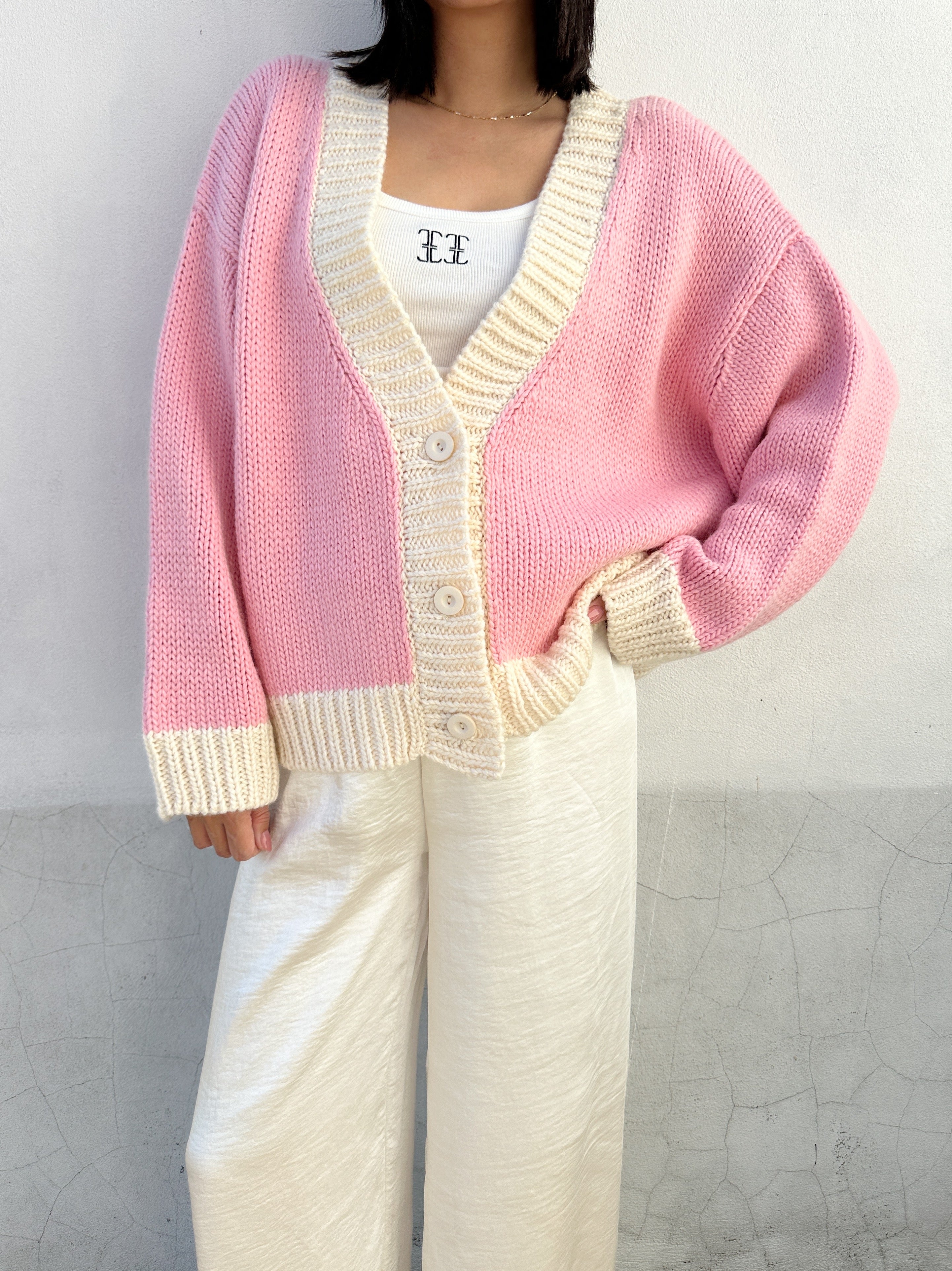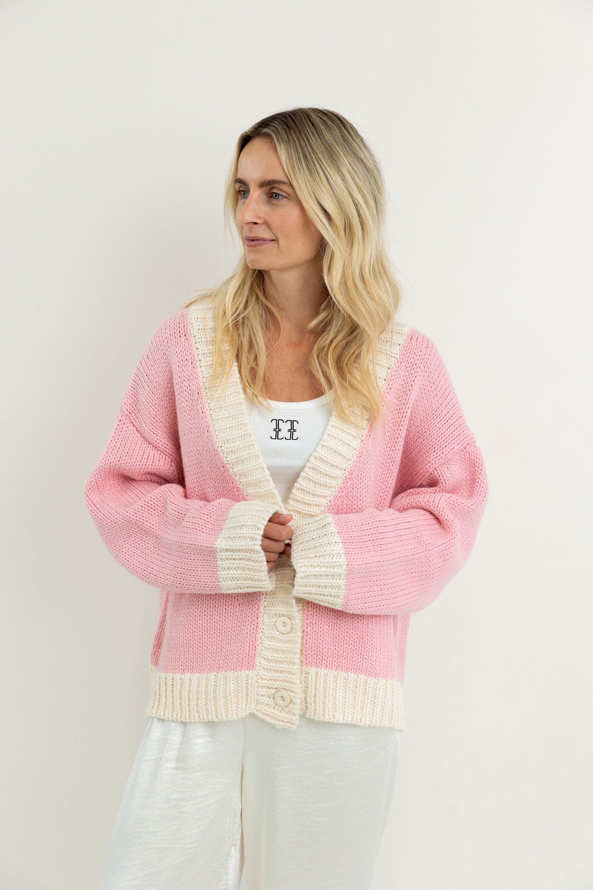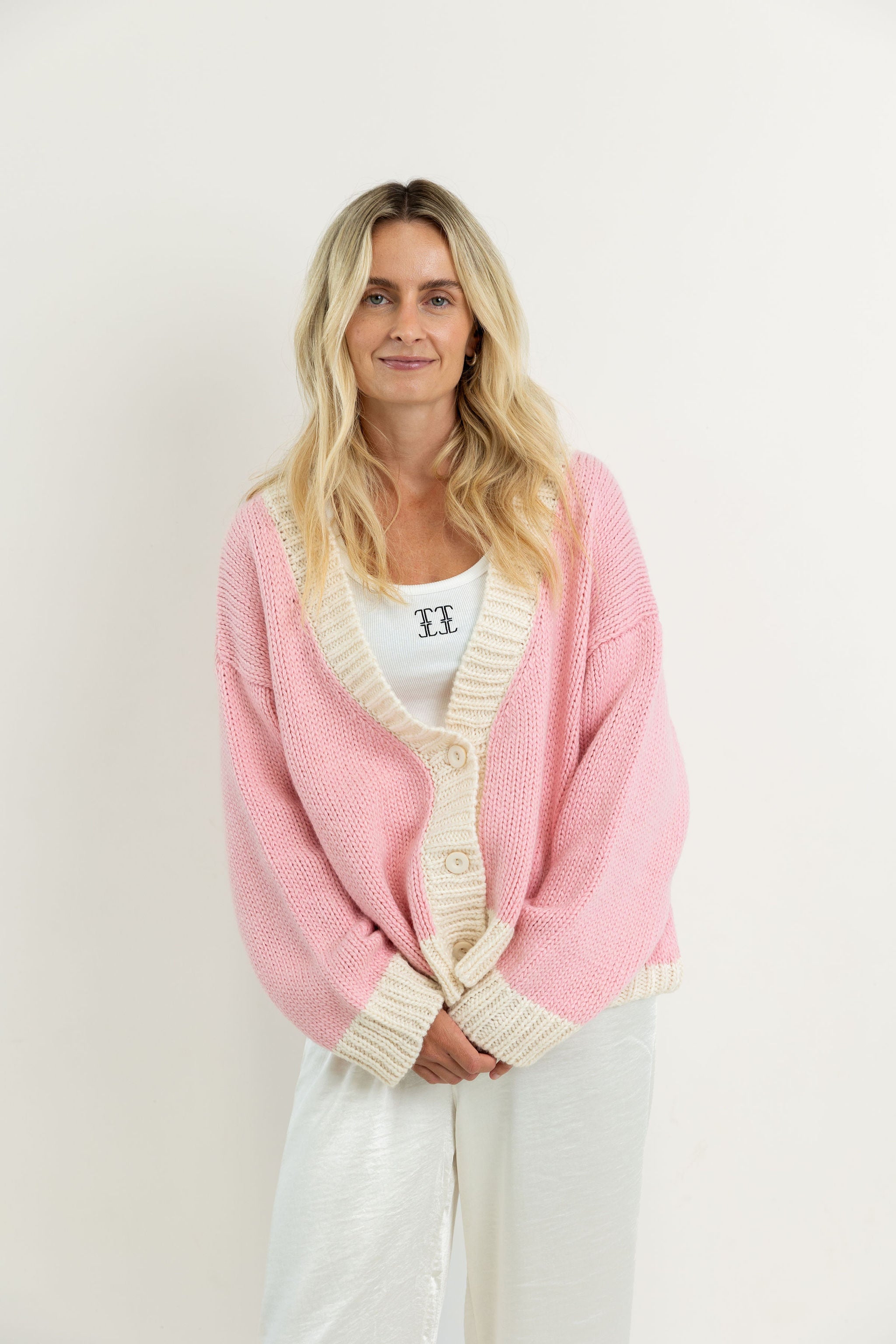 Women's Maeve Contrast Knit Cardigan - Pink/Cream