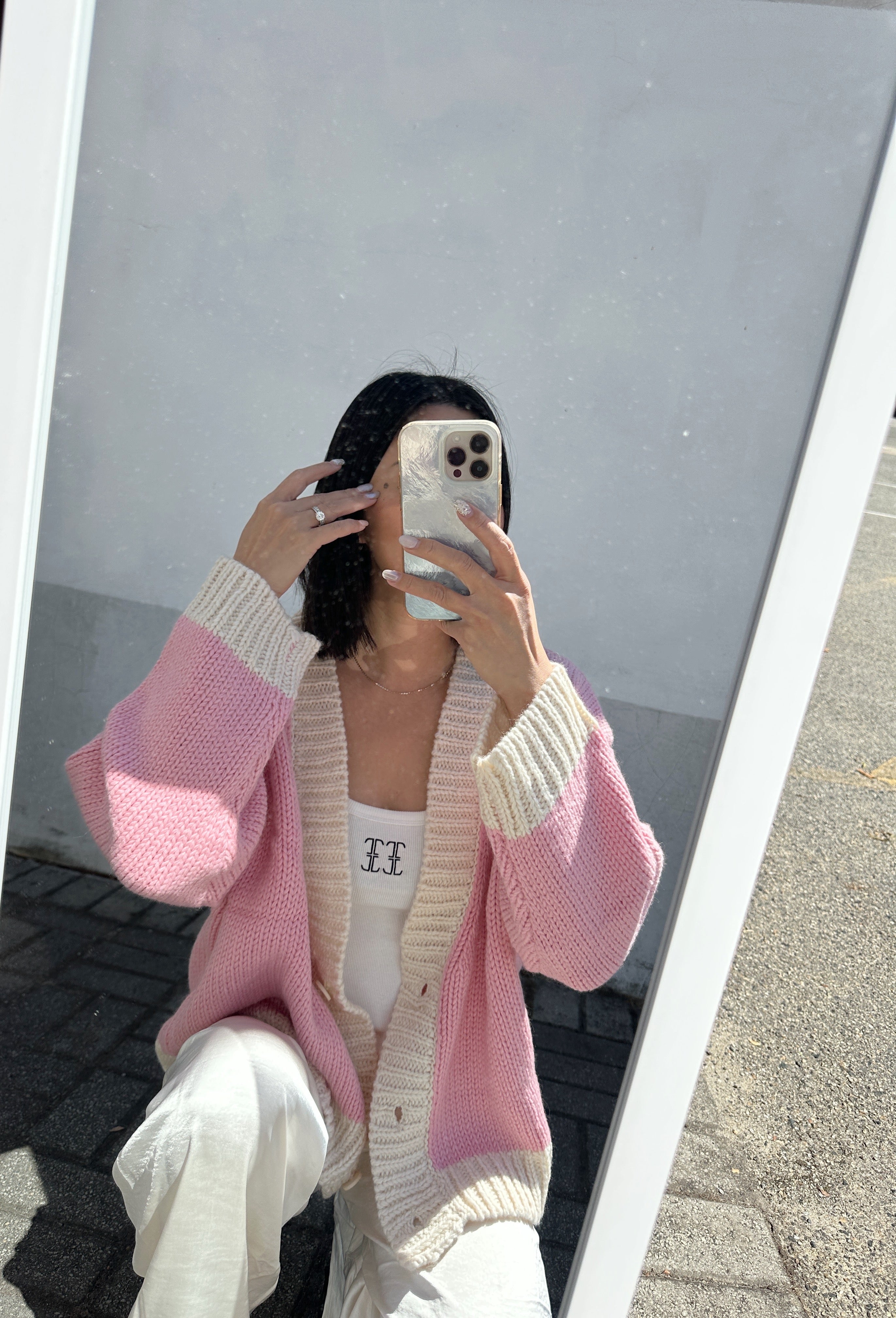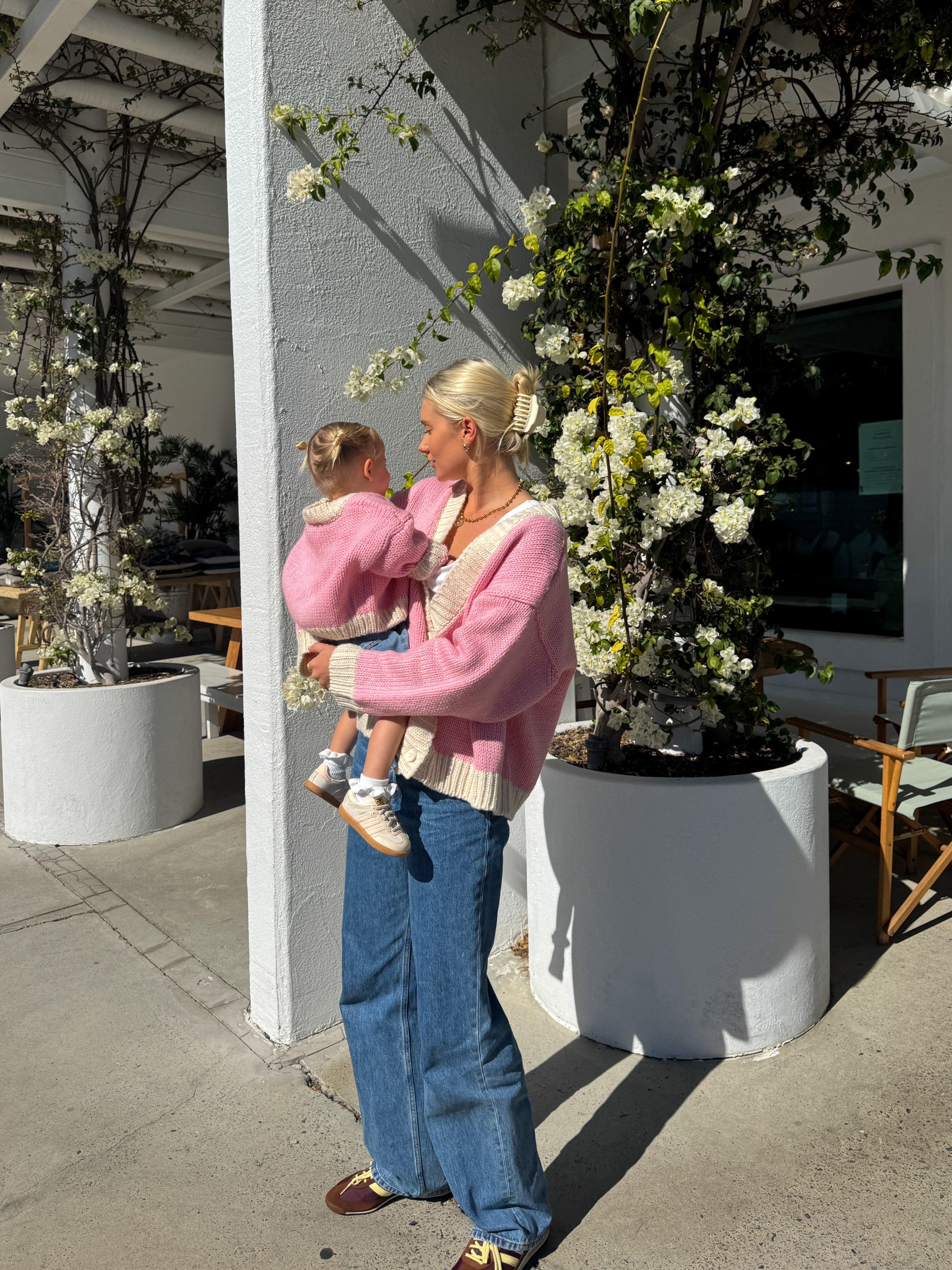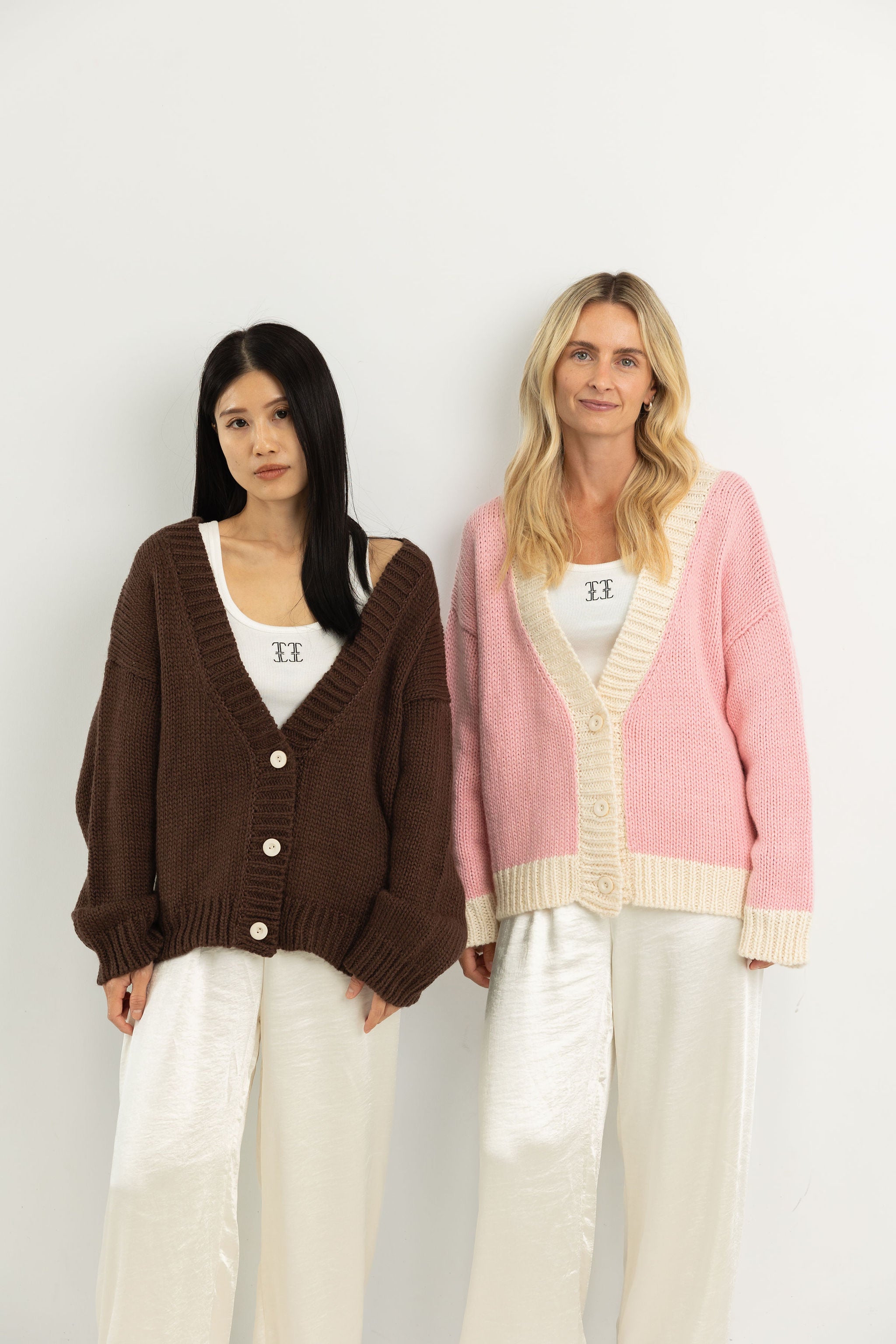 Women's Maeve Contrast Knit Cardigan - Pink/Cream