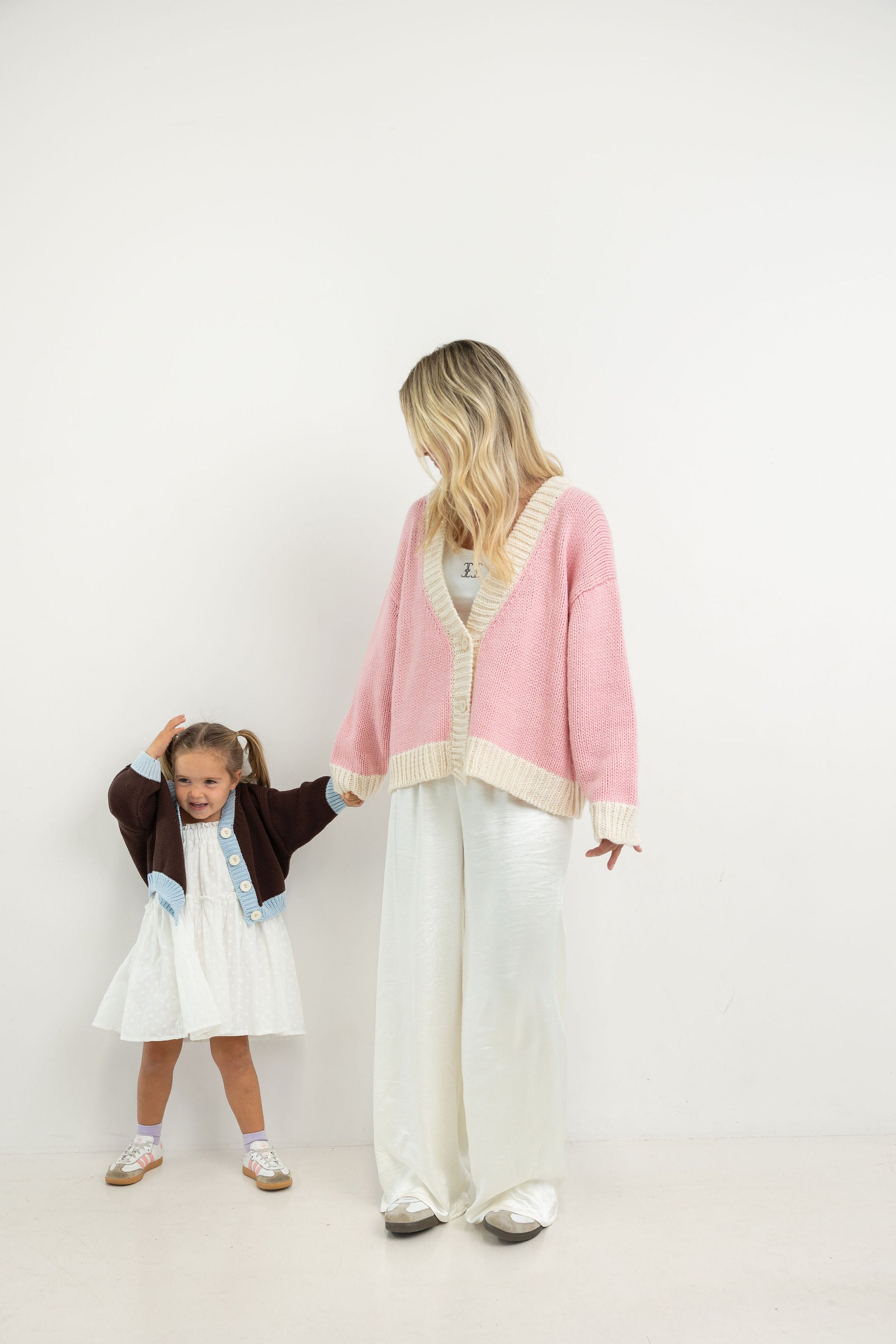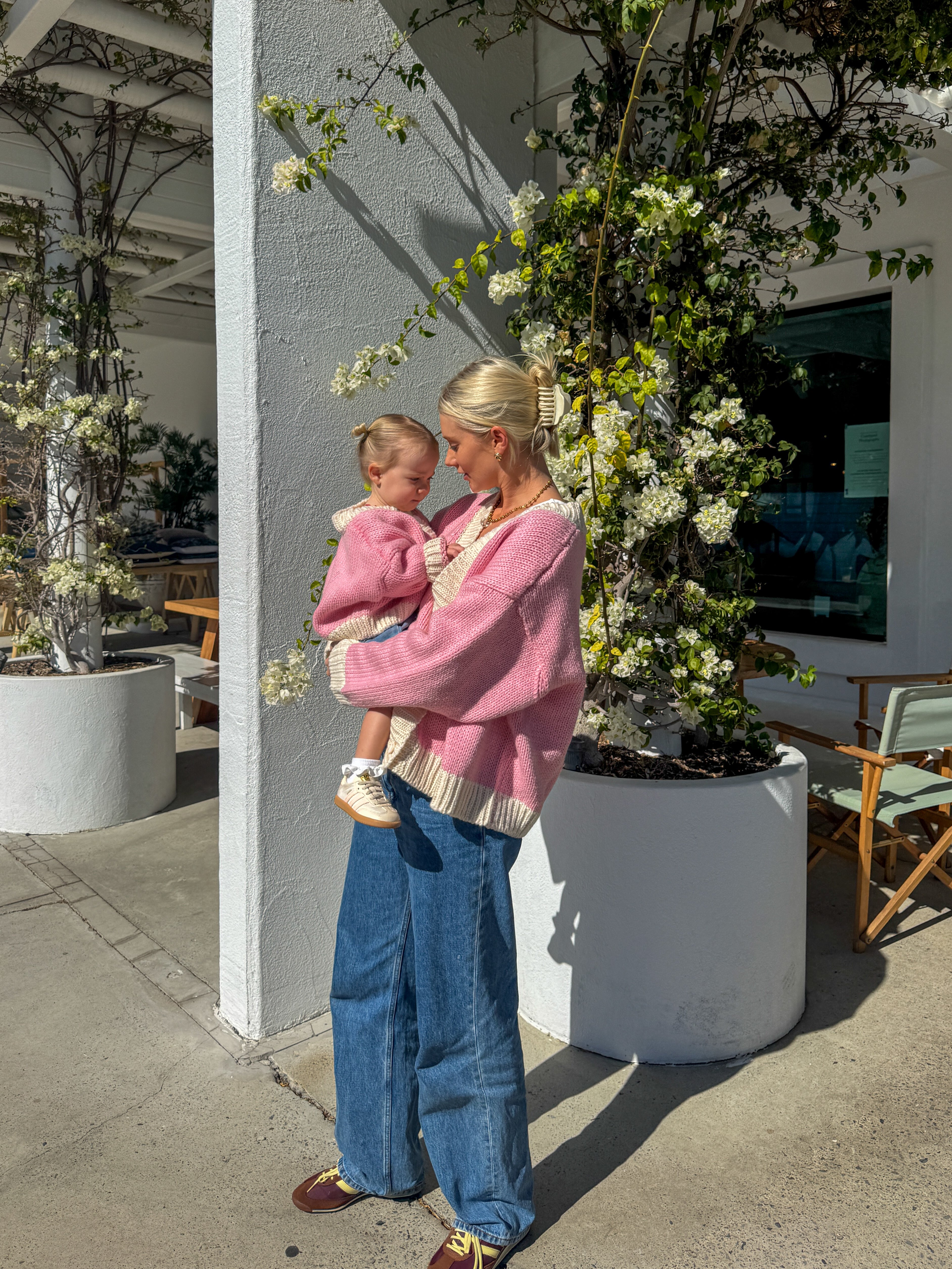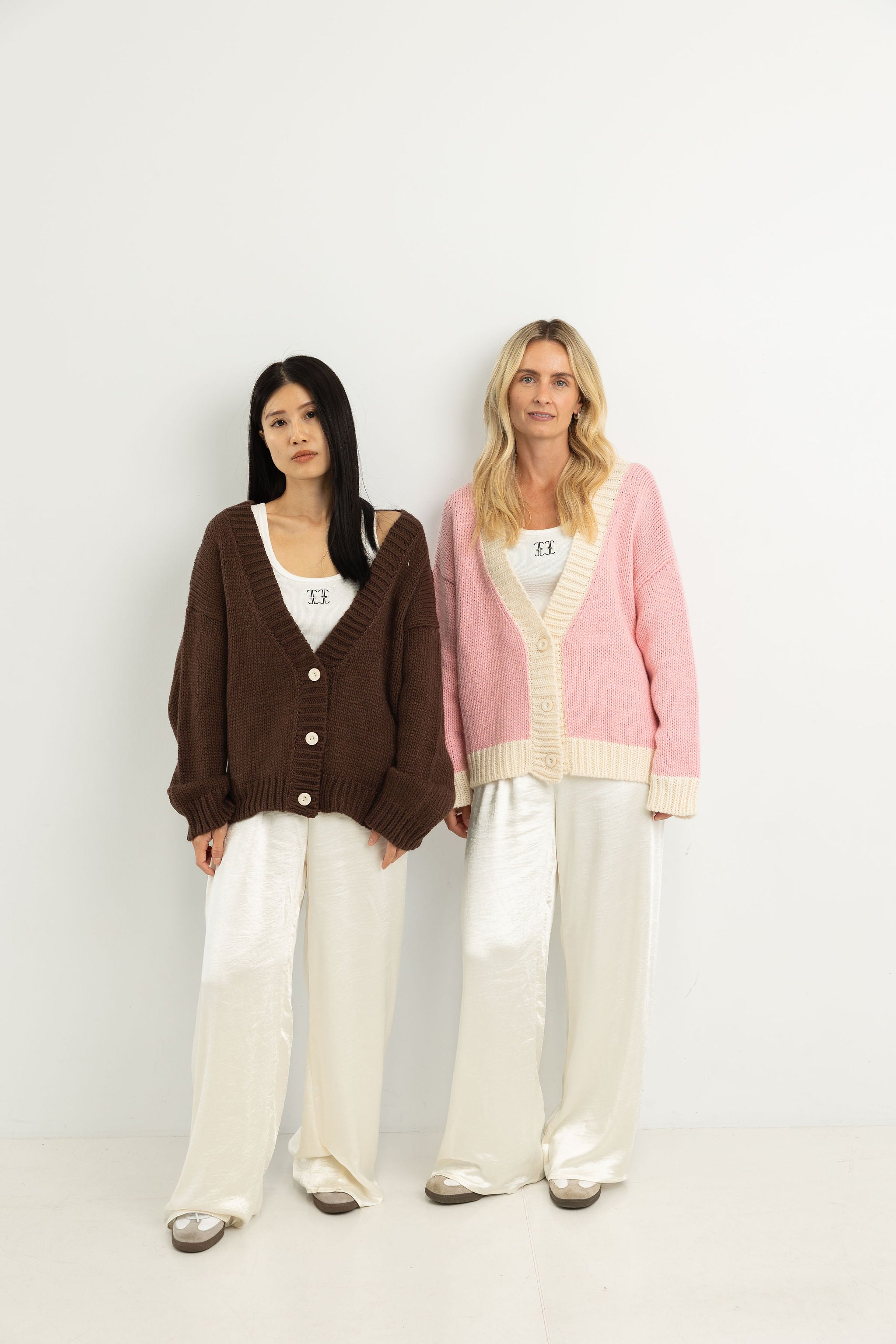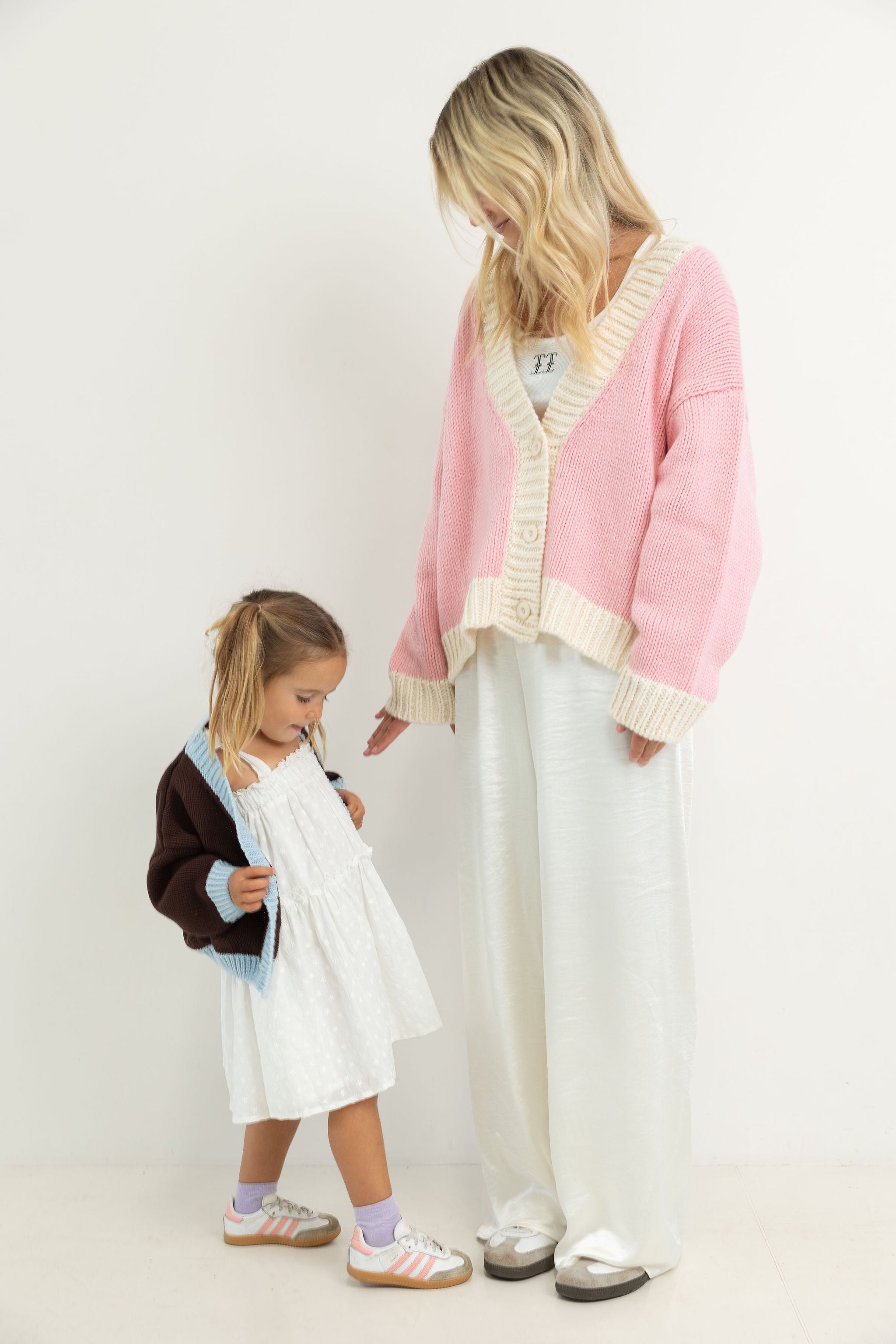 Women's Maeve Contrast Knit Cardigan - Pink/Cream