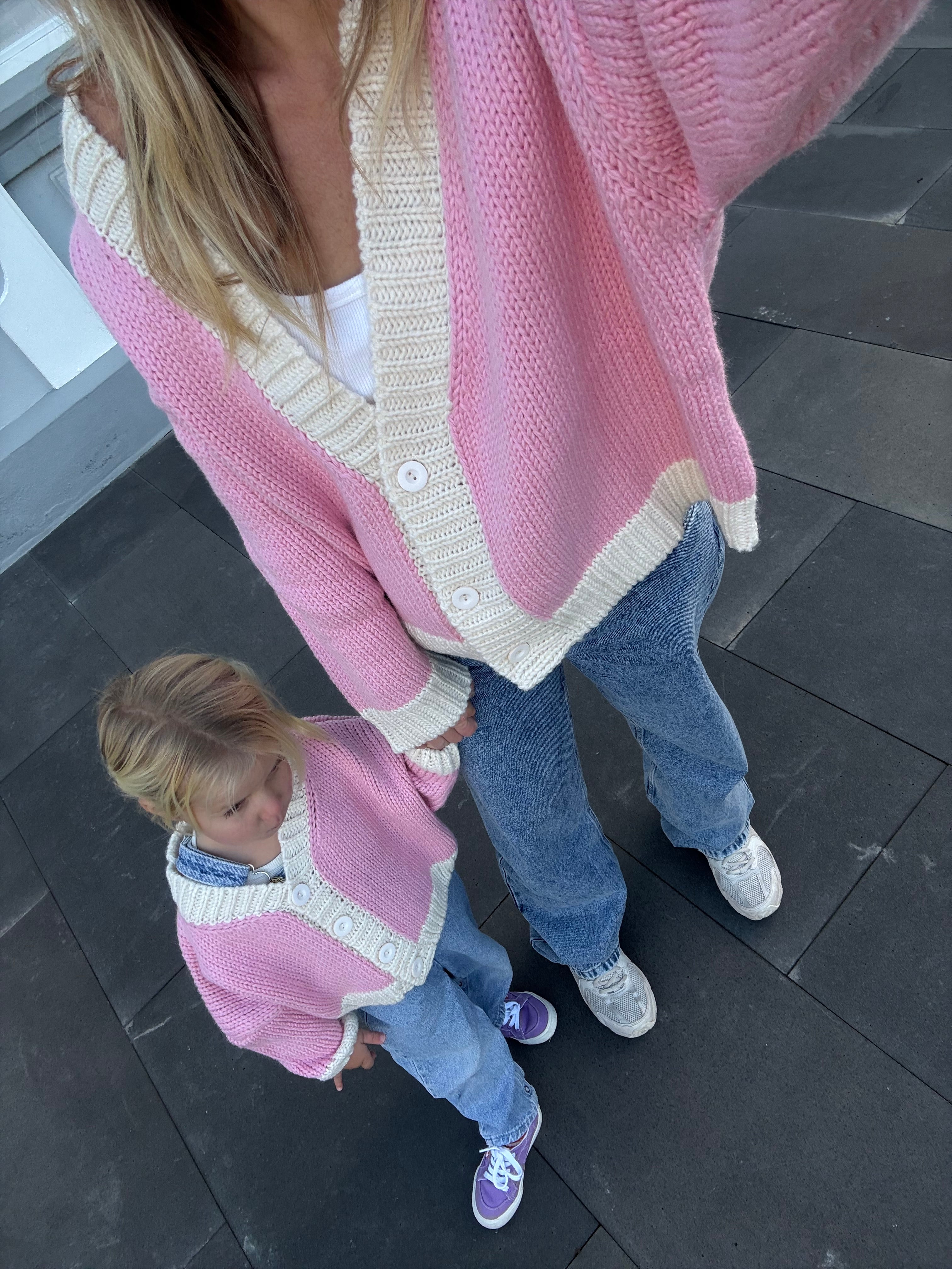 Match with your mini - shop the Adult Maeve Contrast Knit Cardigan in Pink/Cream