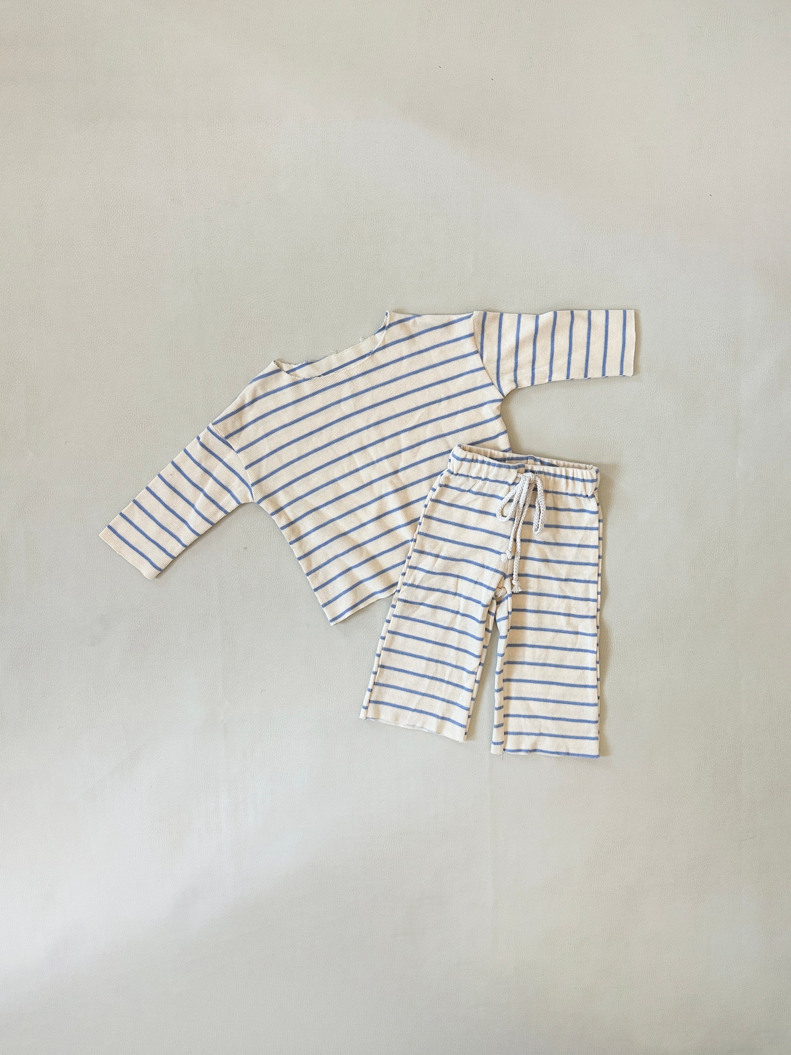 Alma Cotton Stripe Long Sleeve Set - Blue/White Size 4Y SAMPLE