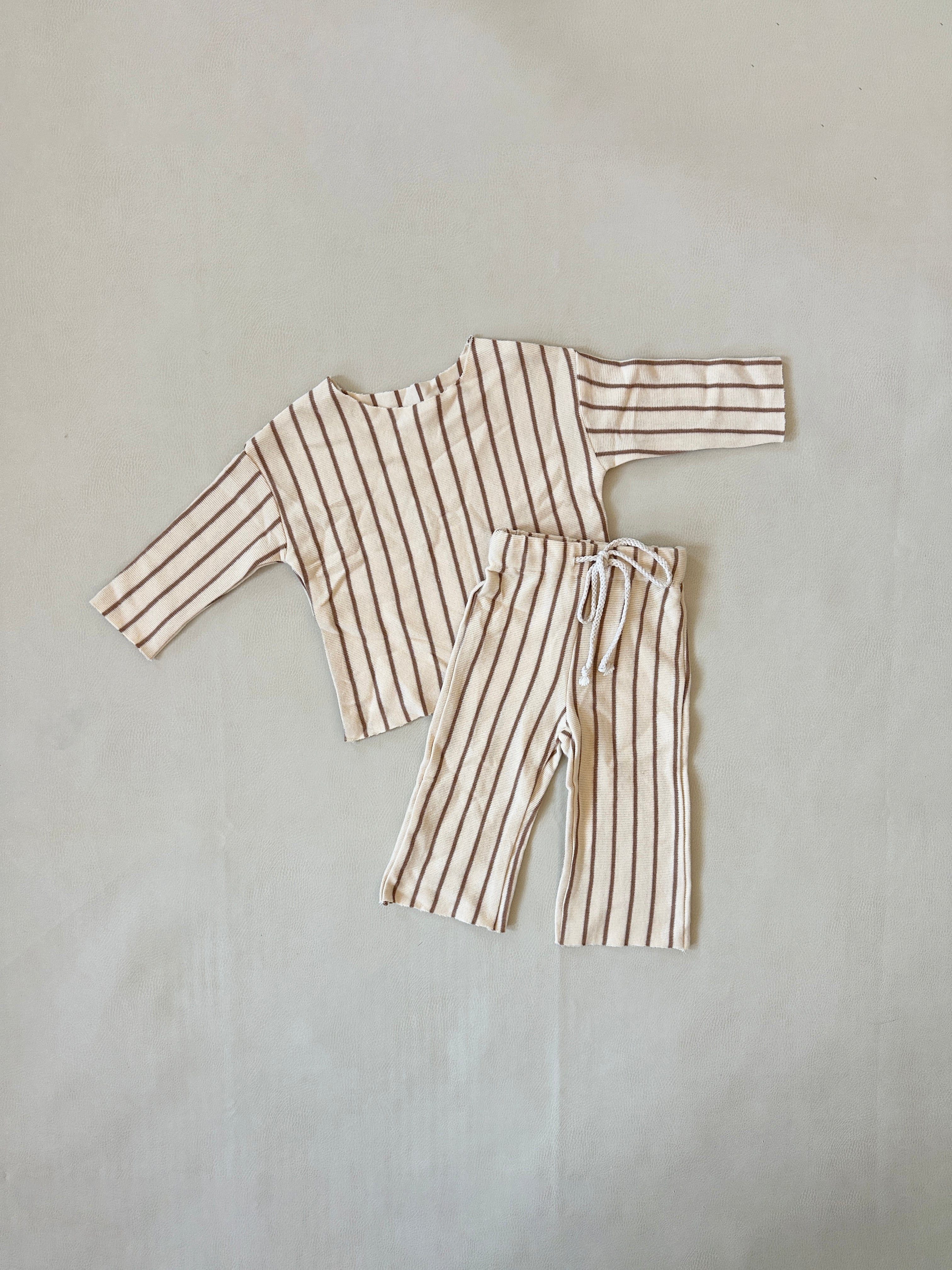 Alma Cotton Stripe Long Sleeve Set - Cream/Latte SAMPLE