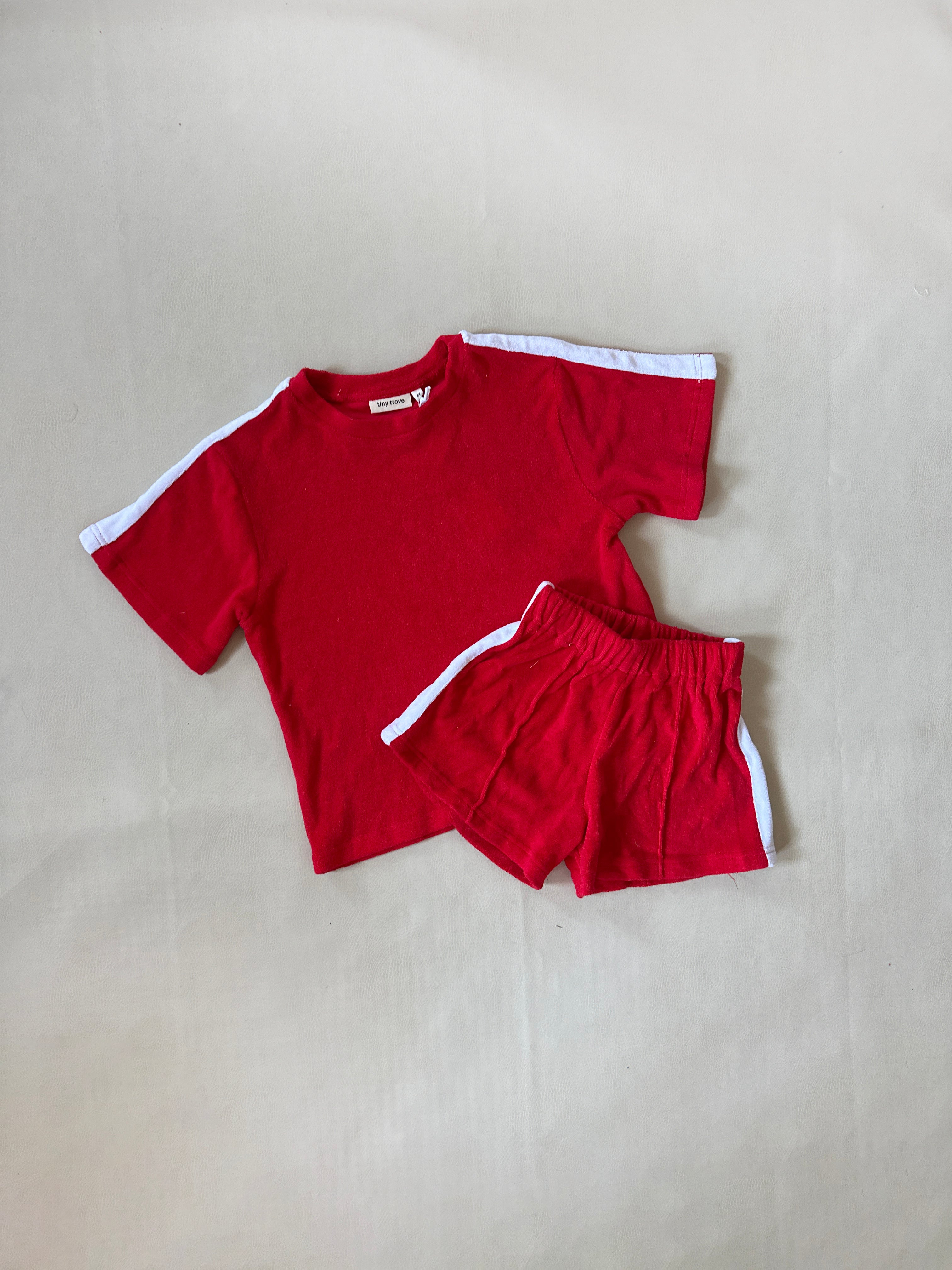 Cotton Waffle Tee - Pink/Red 6-12m SAMPLE