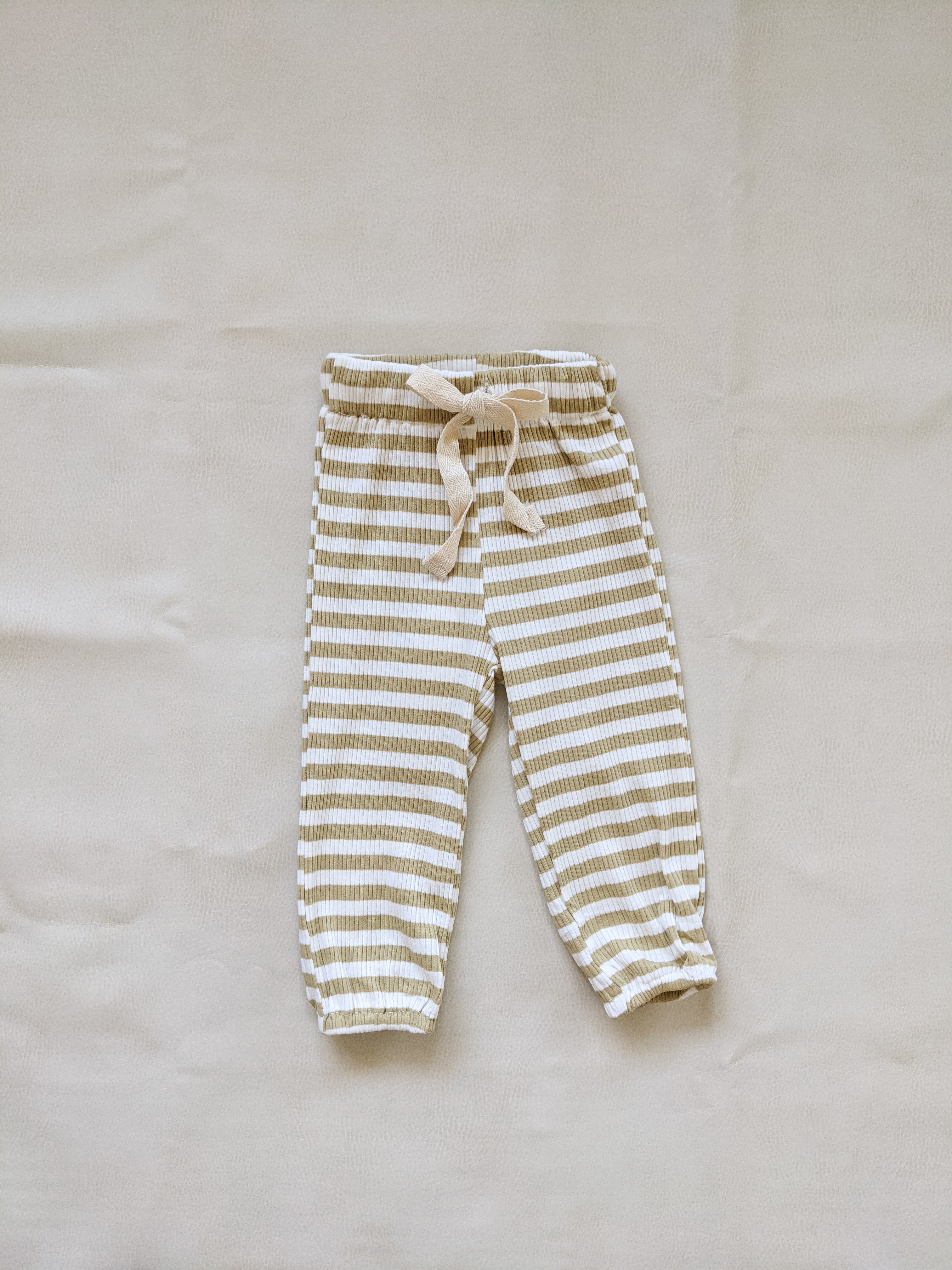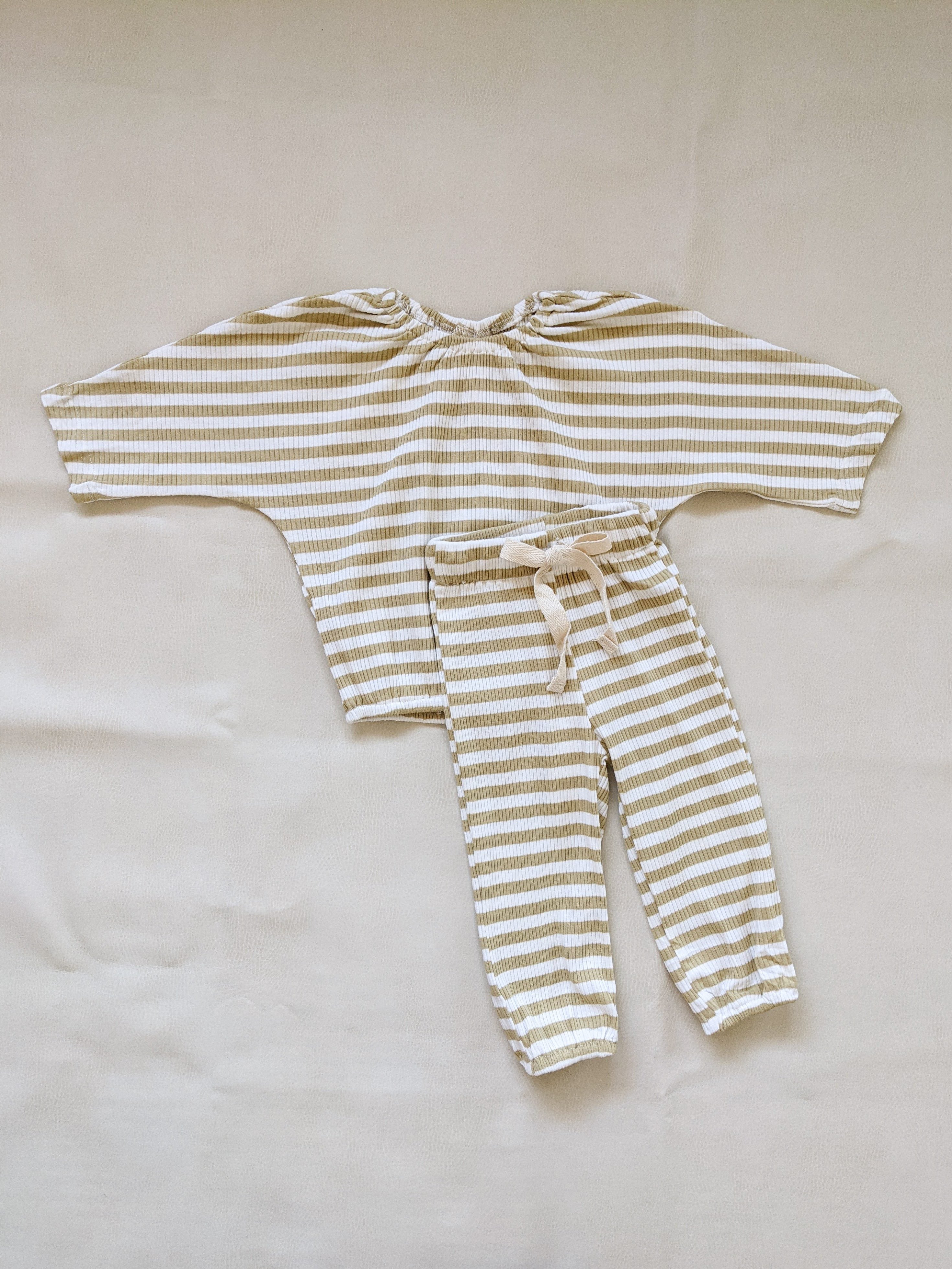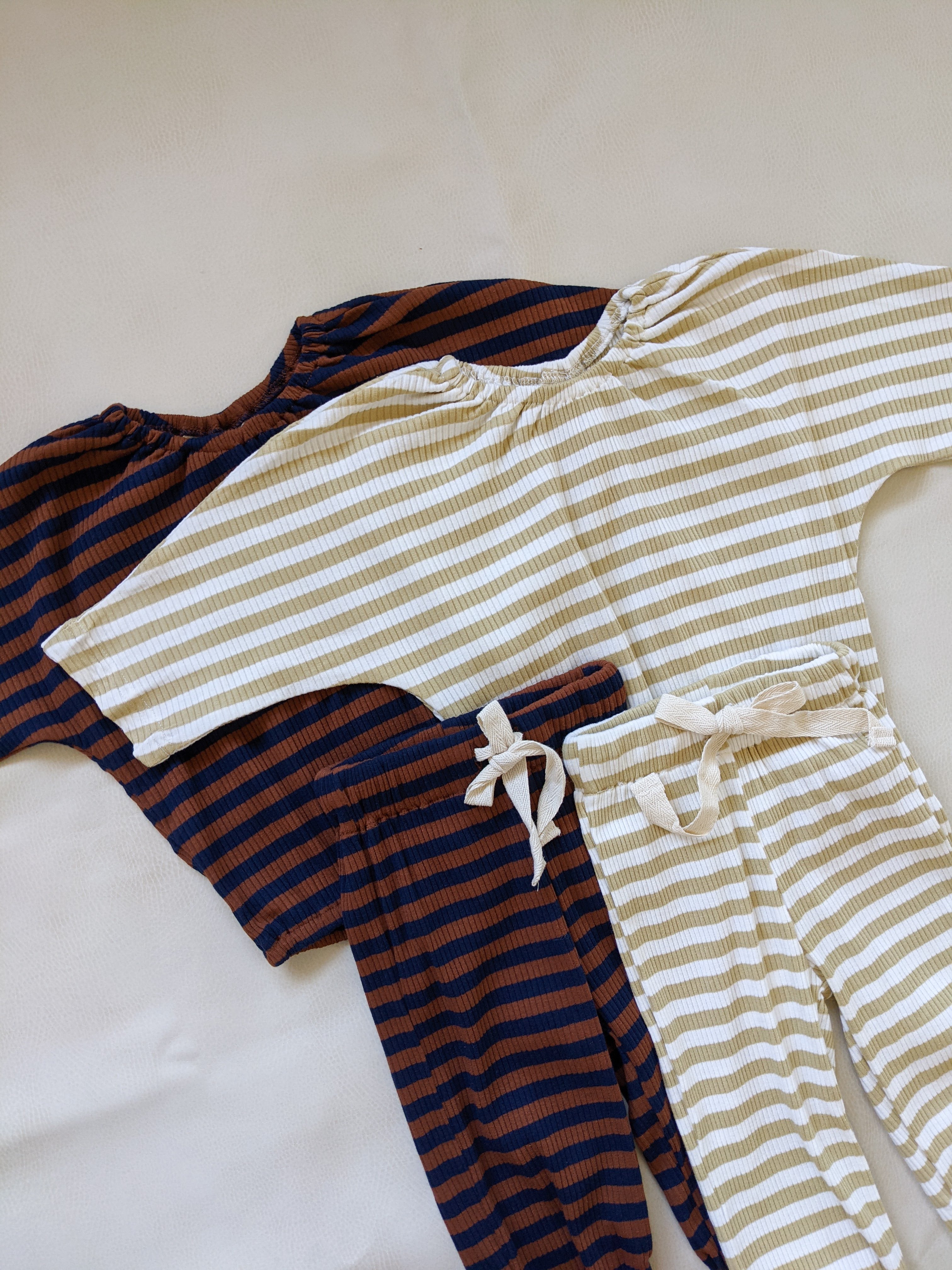 Indigo Ribbed Cotton Stripe Set - Beige/White