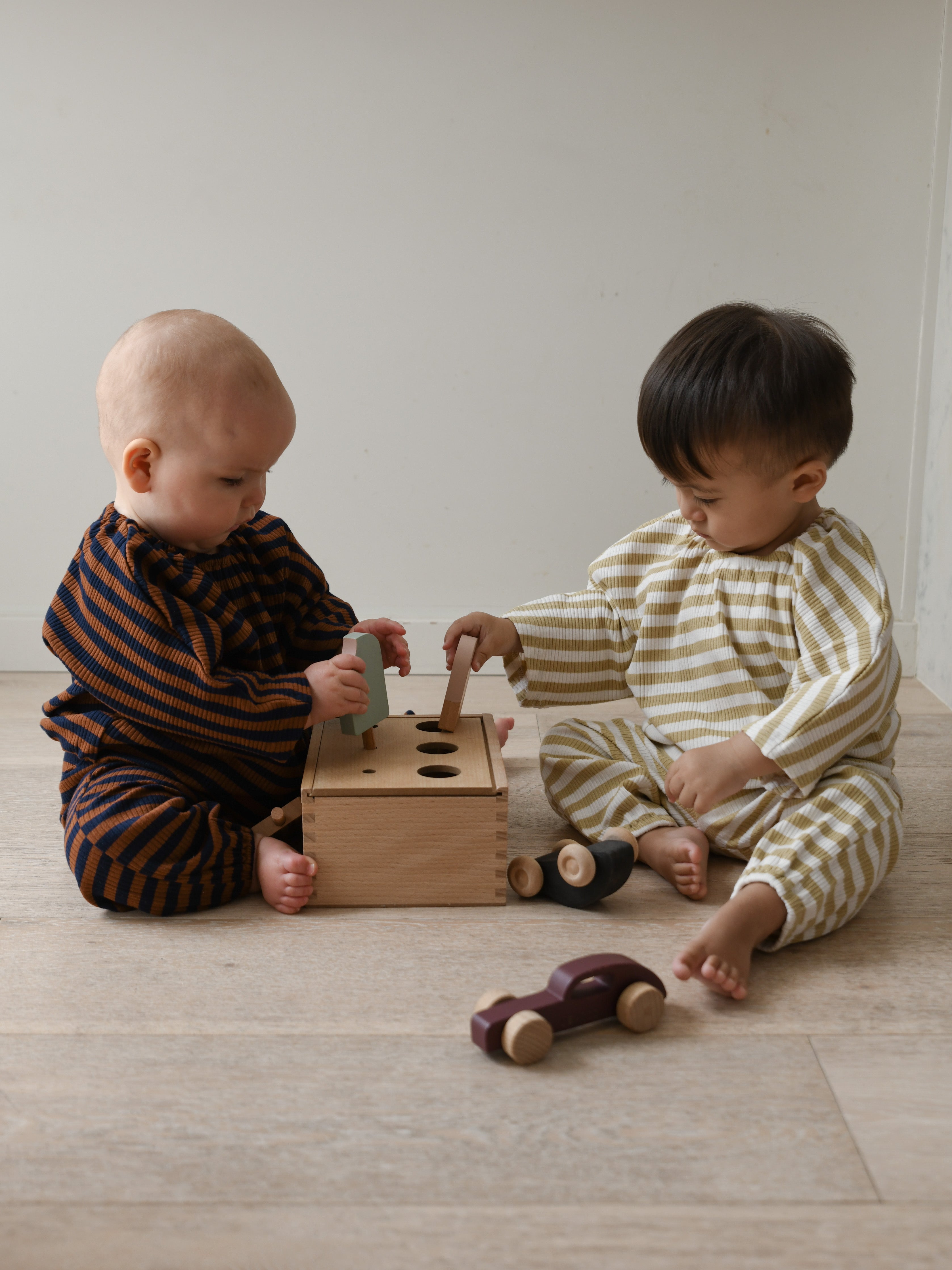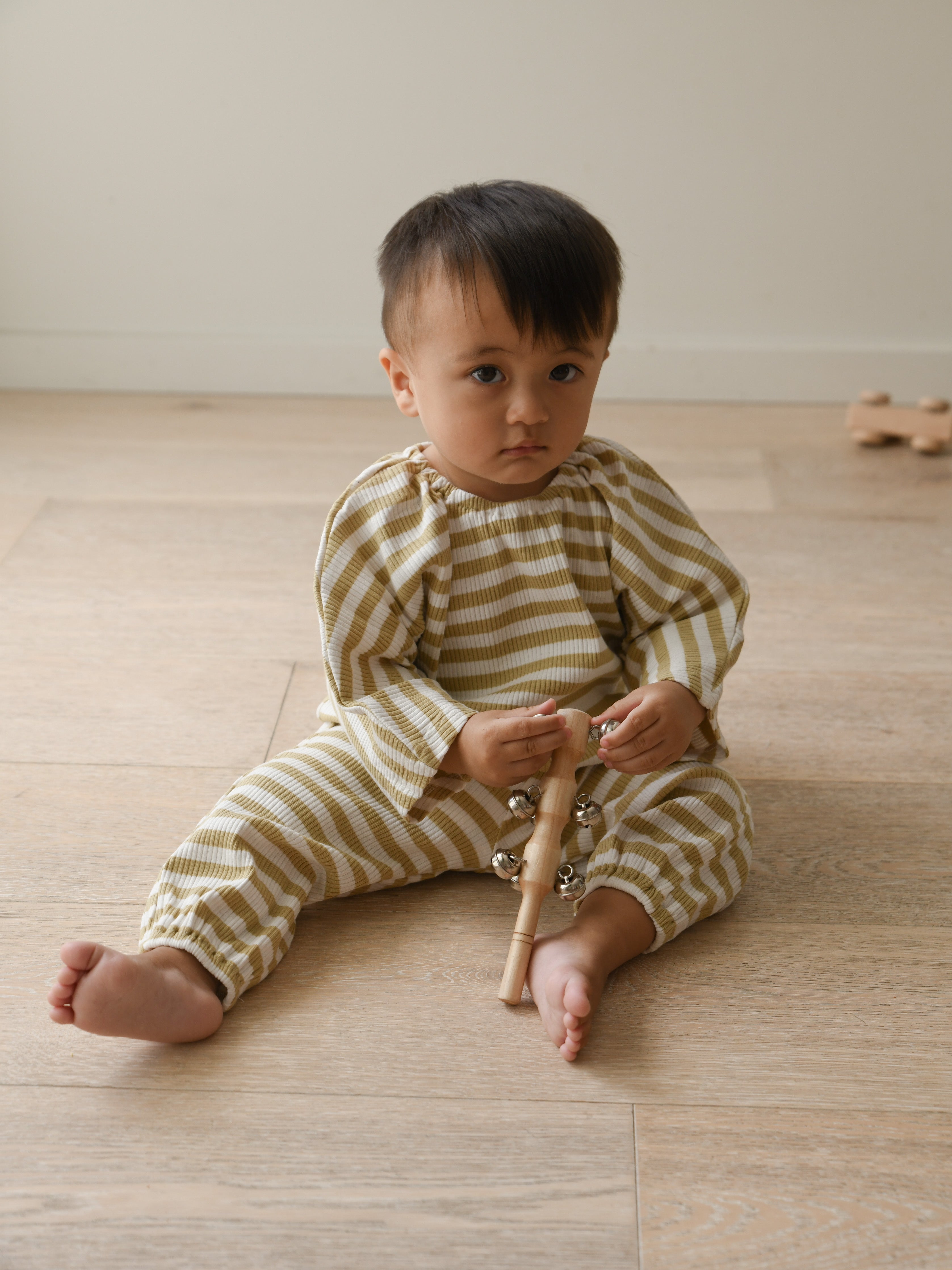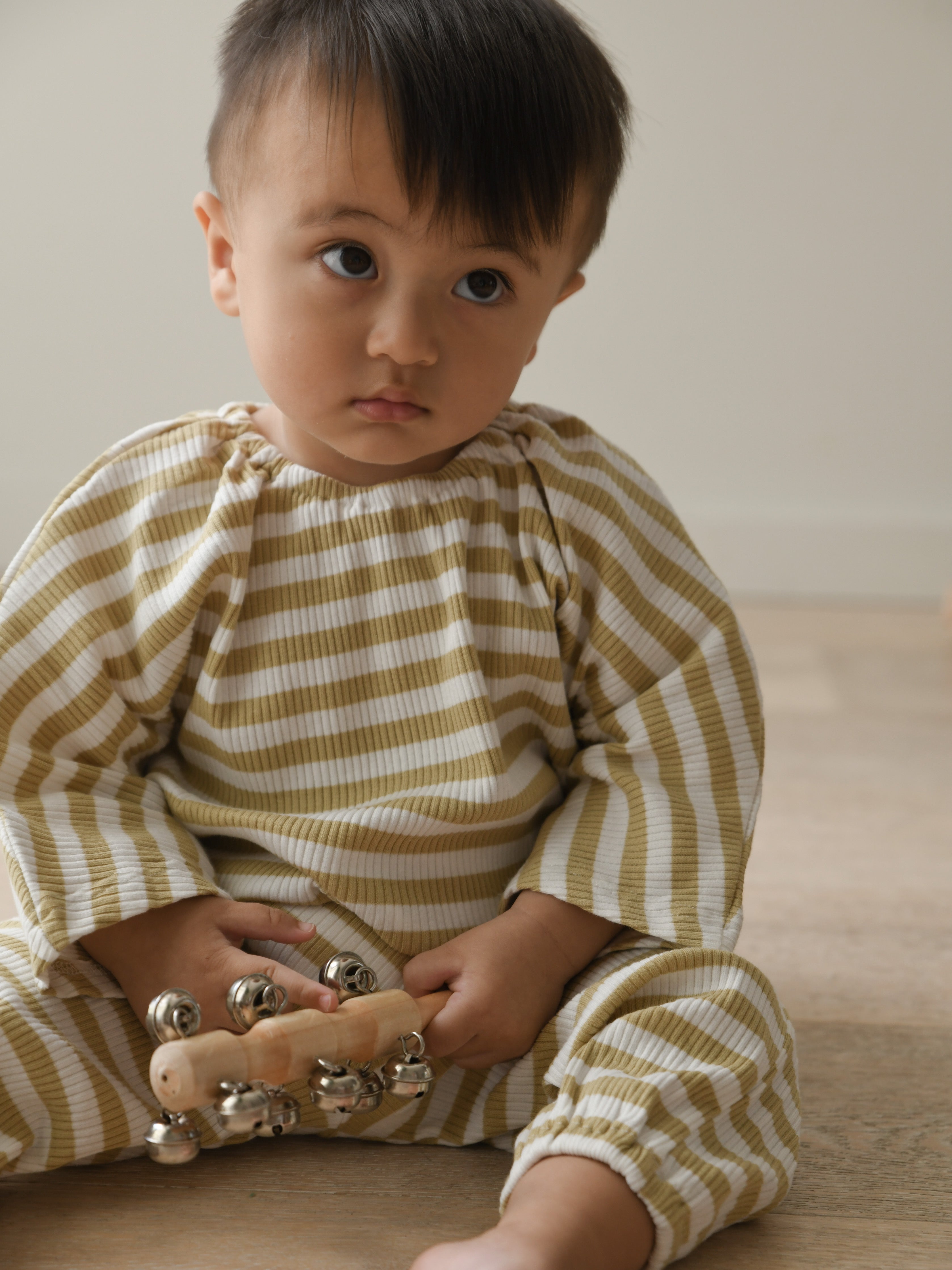Indigo Ribbed Cotton Stripe Set - Beige/White