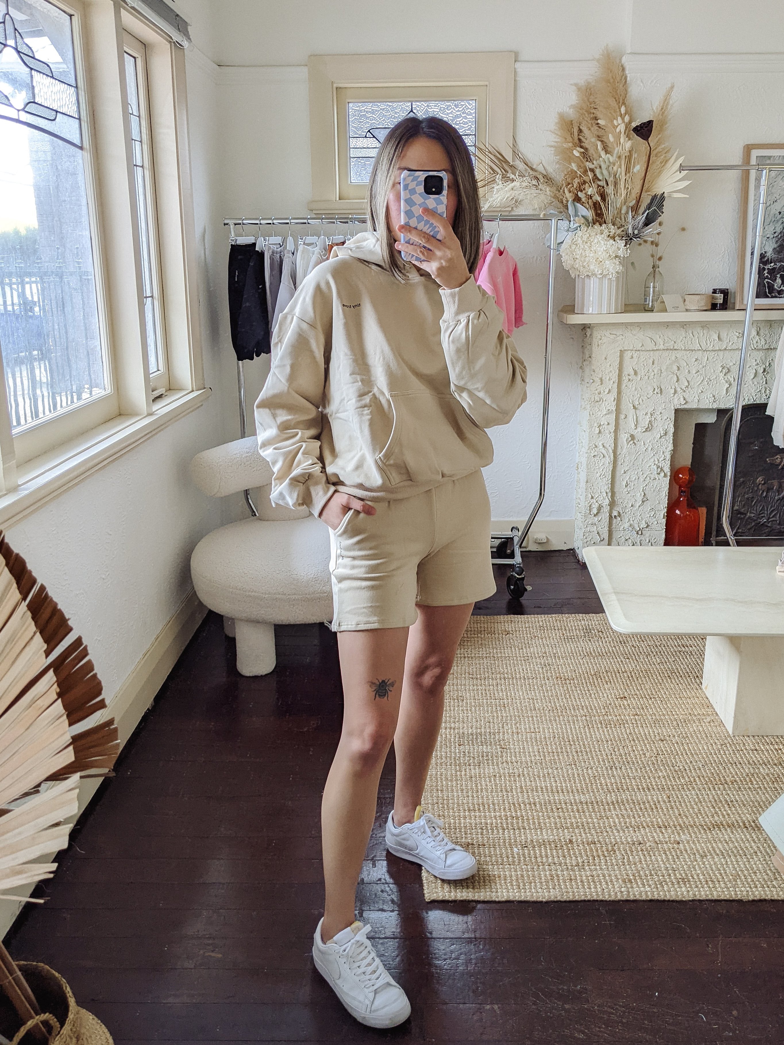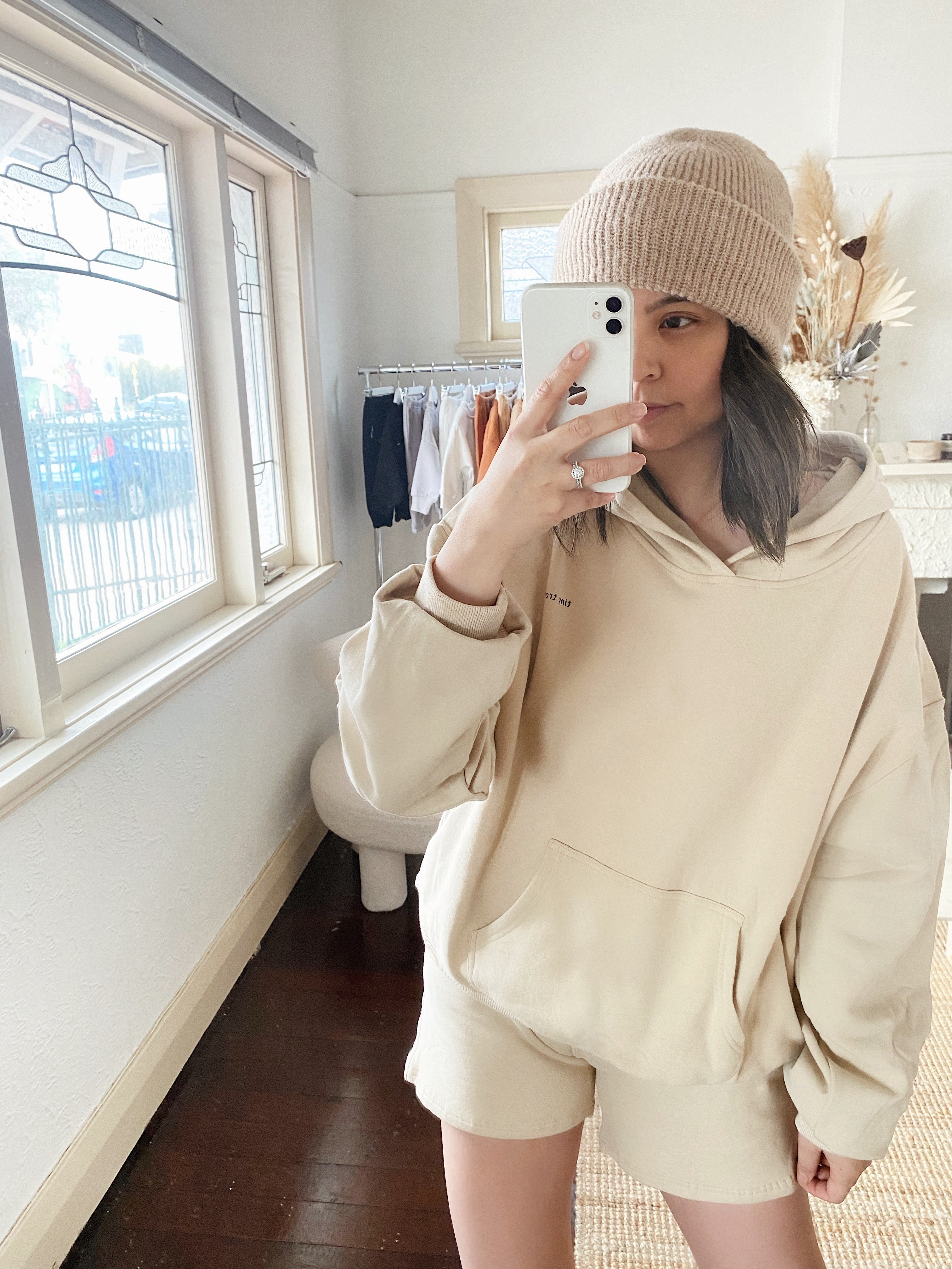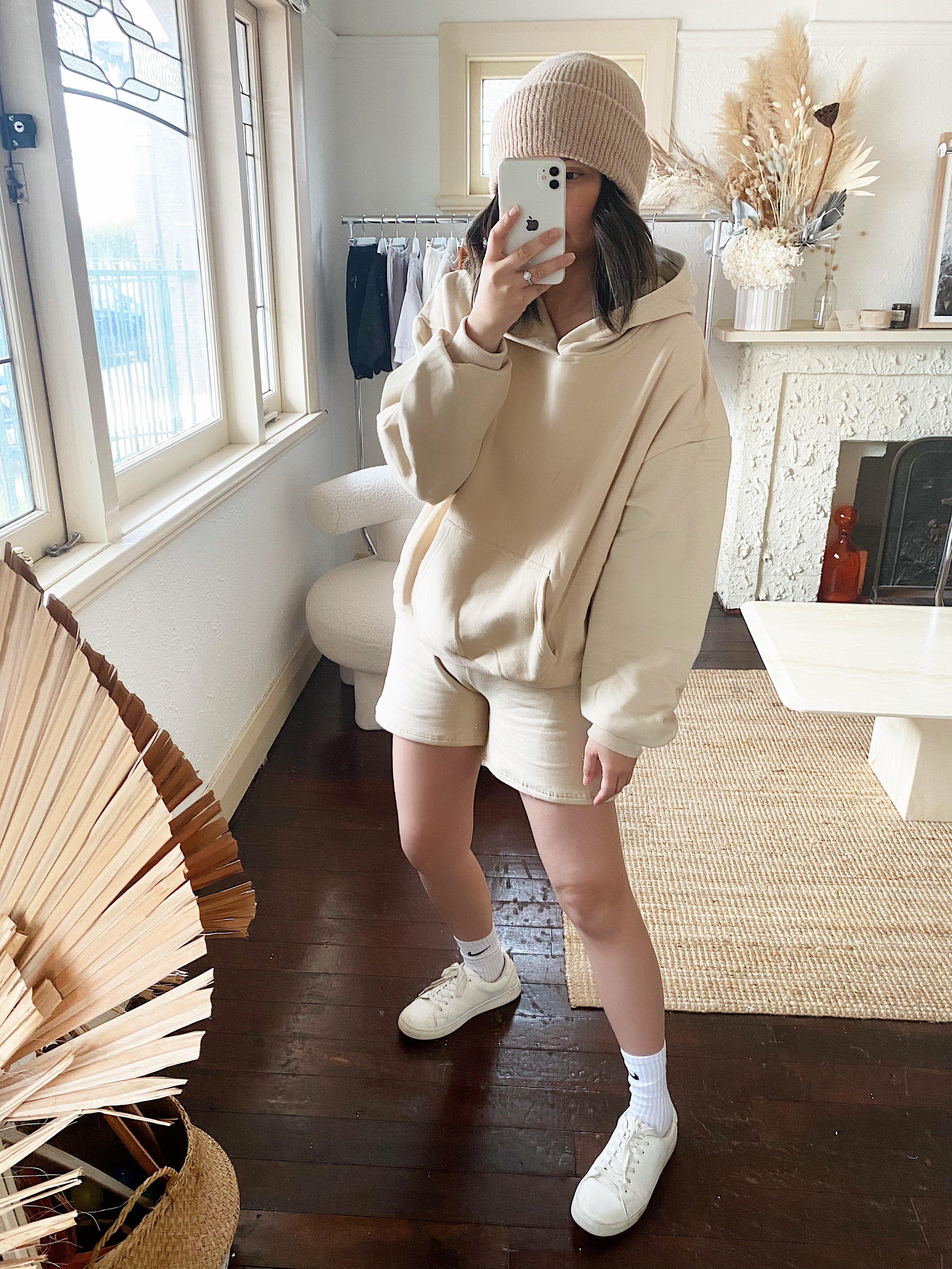 Adult Rumi Logo Hoodie Shorts - Beige