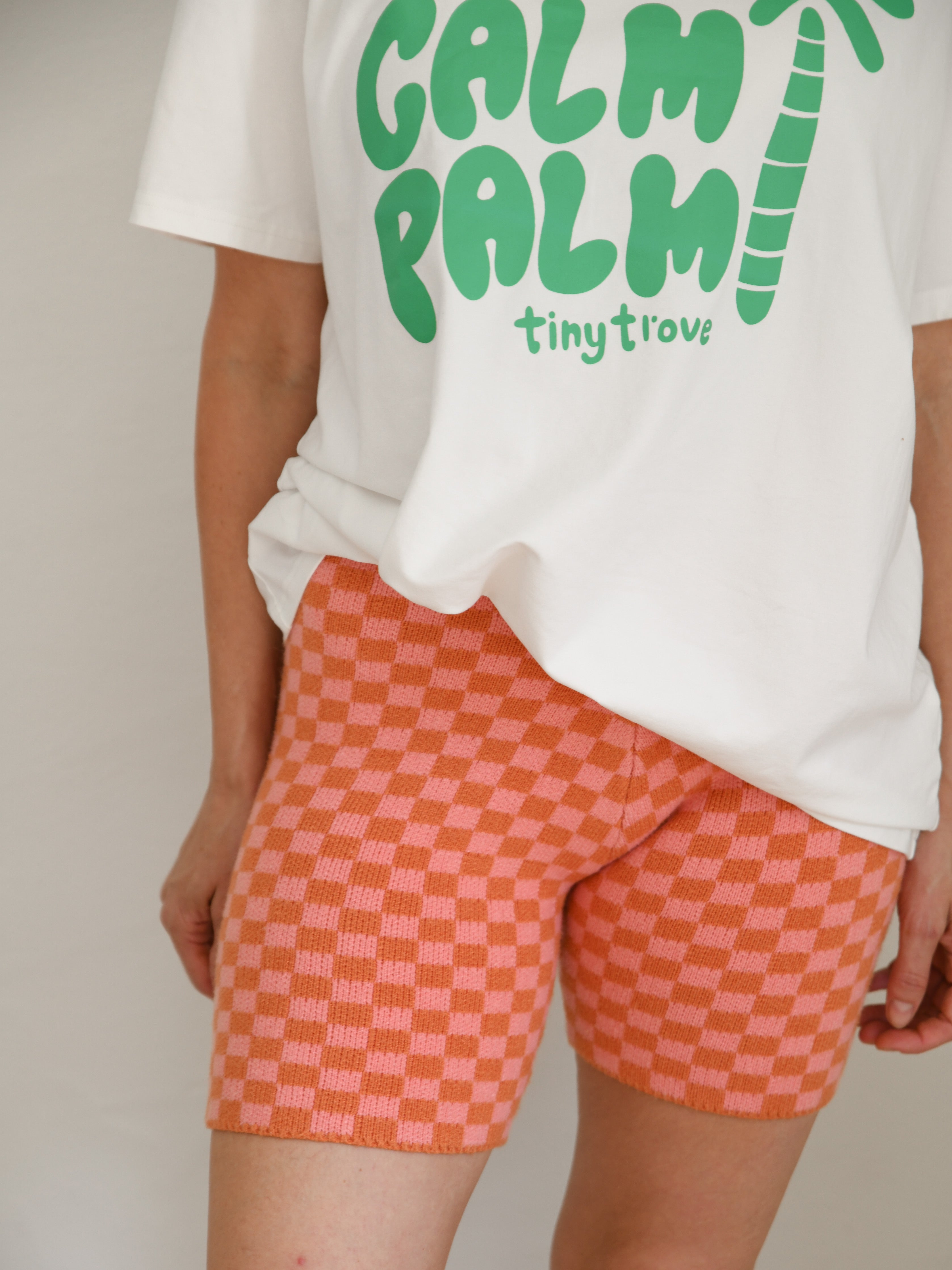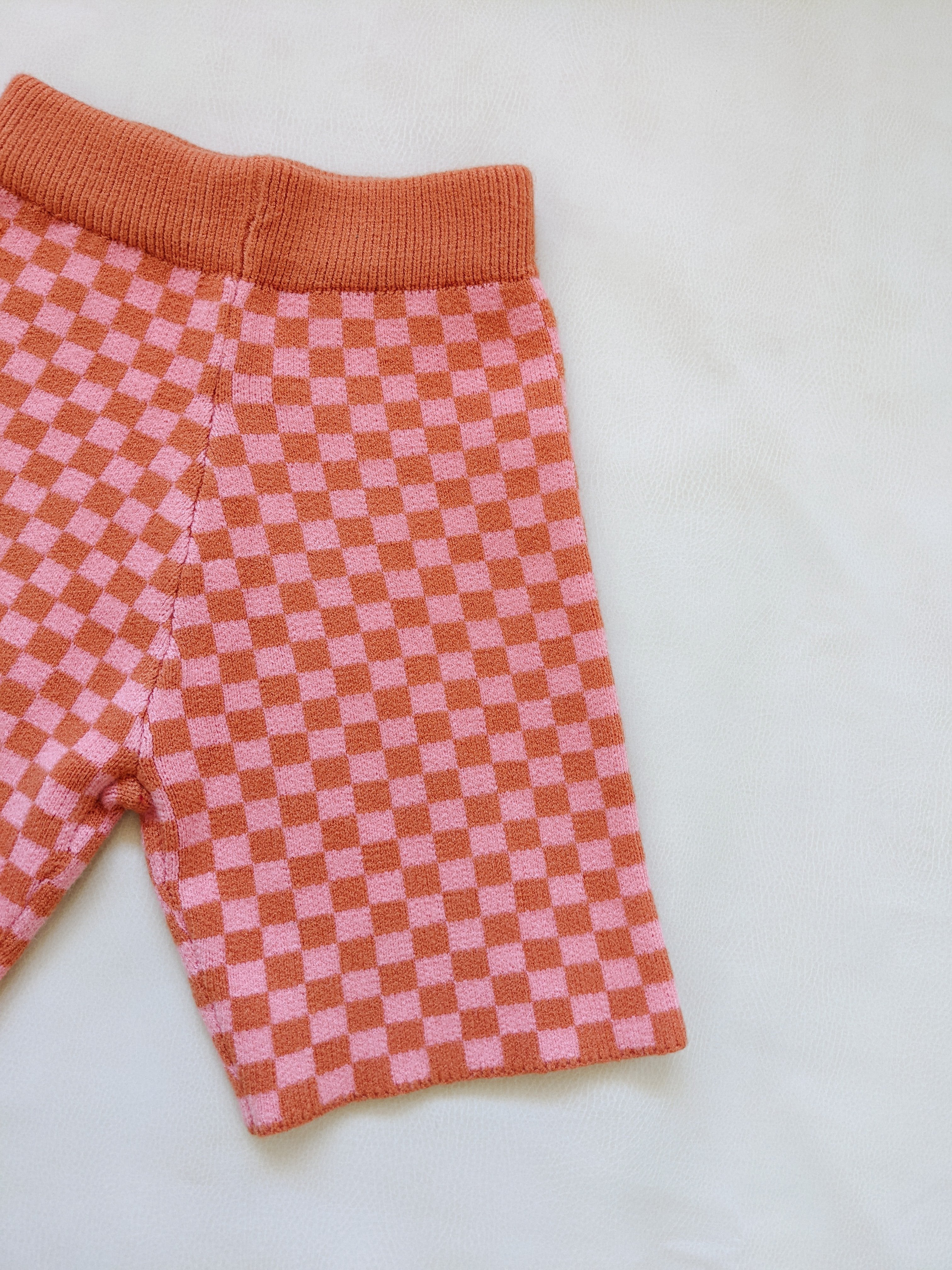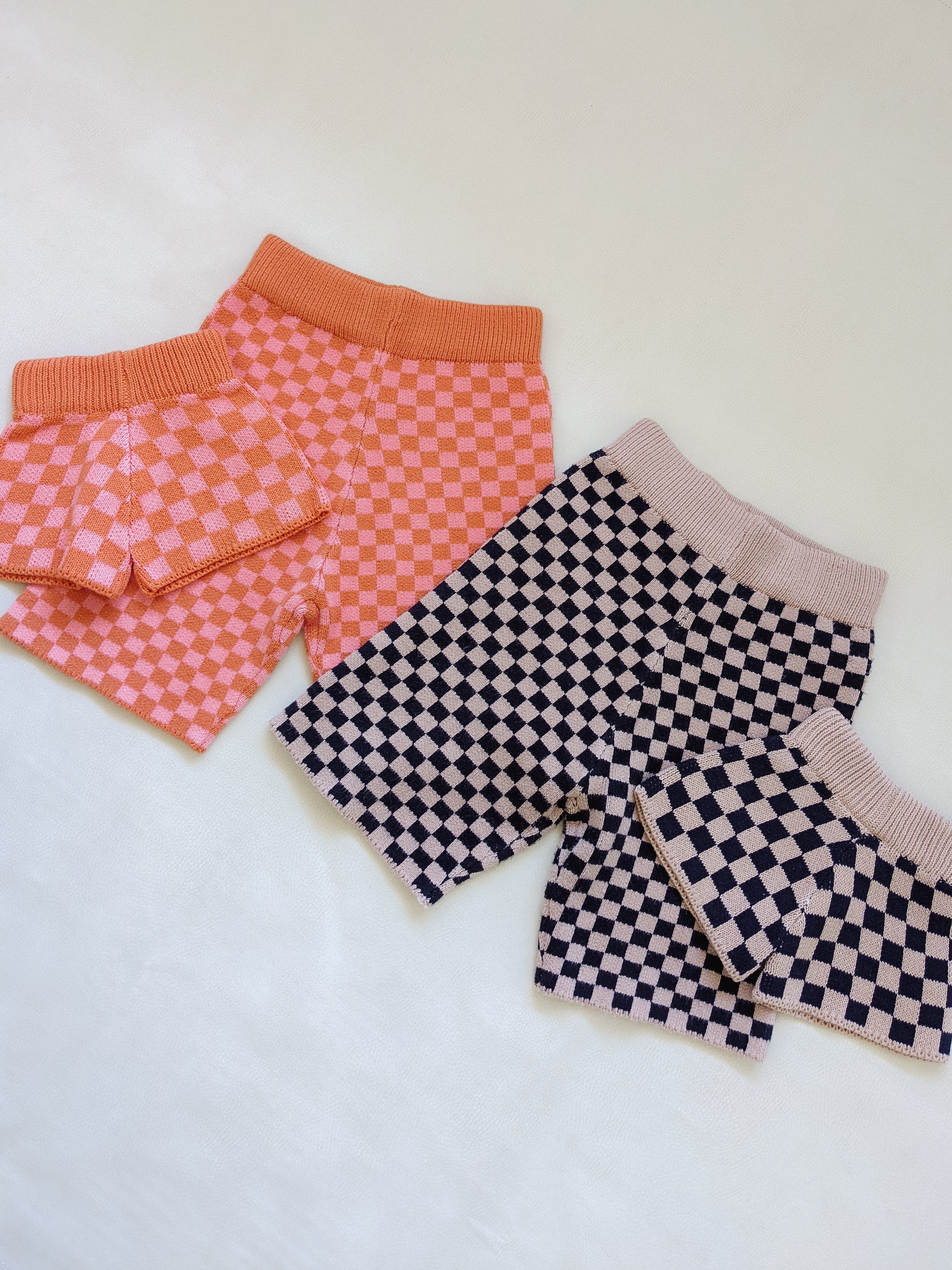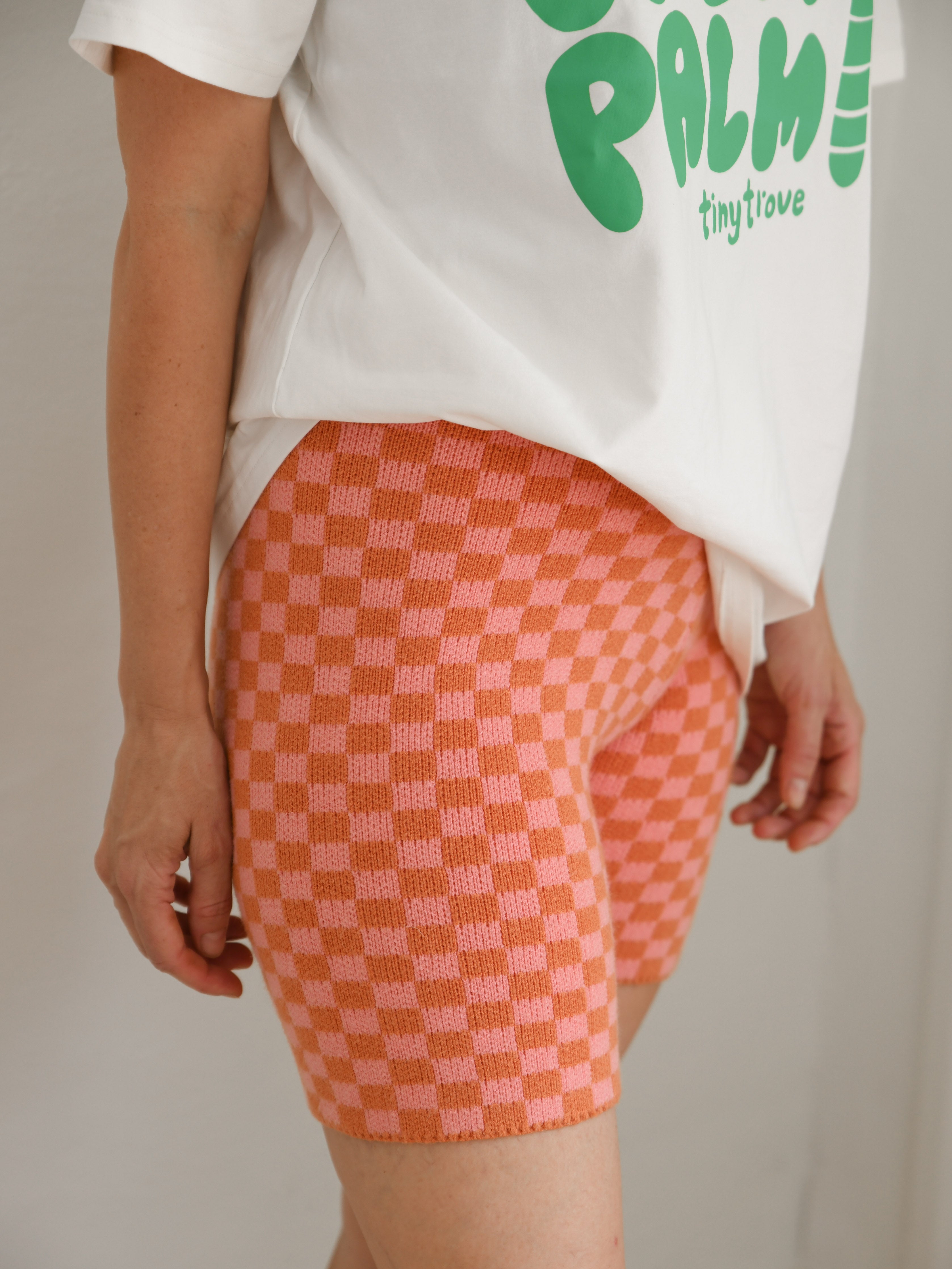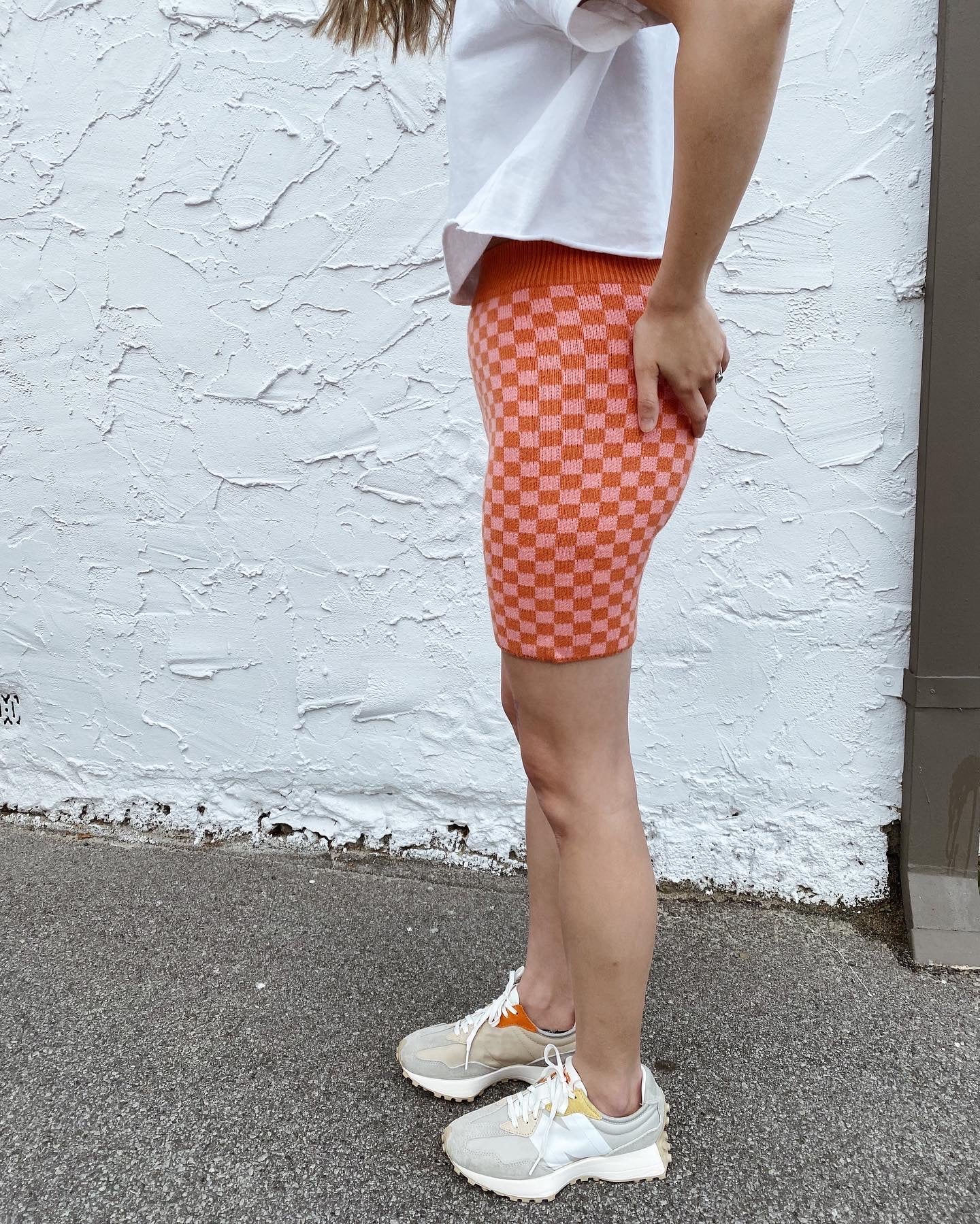 Adult Spencer Checkerboard Knit Shorts - Orange