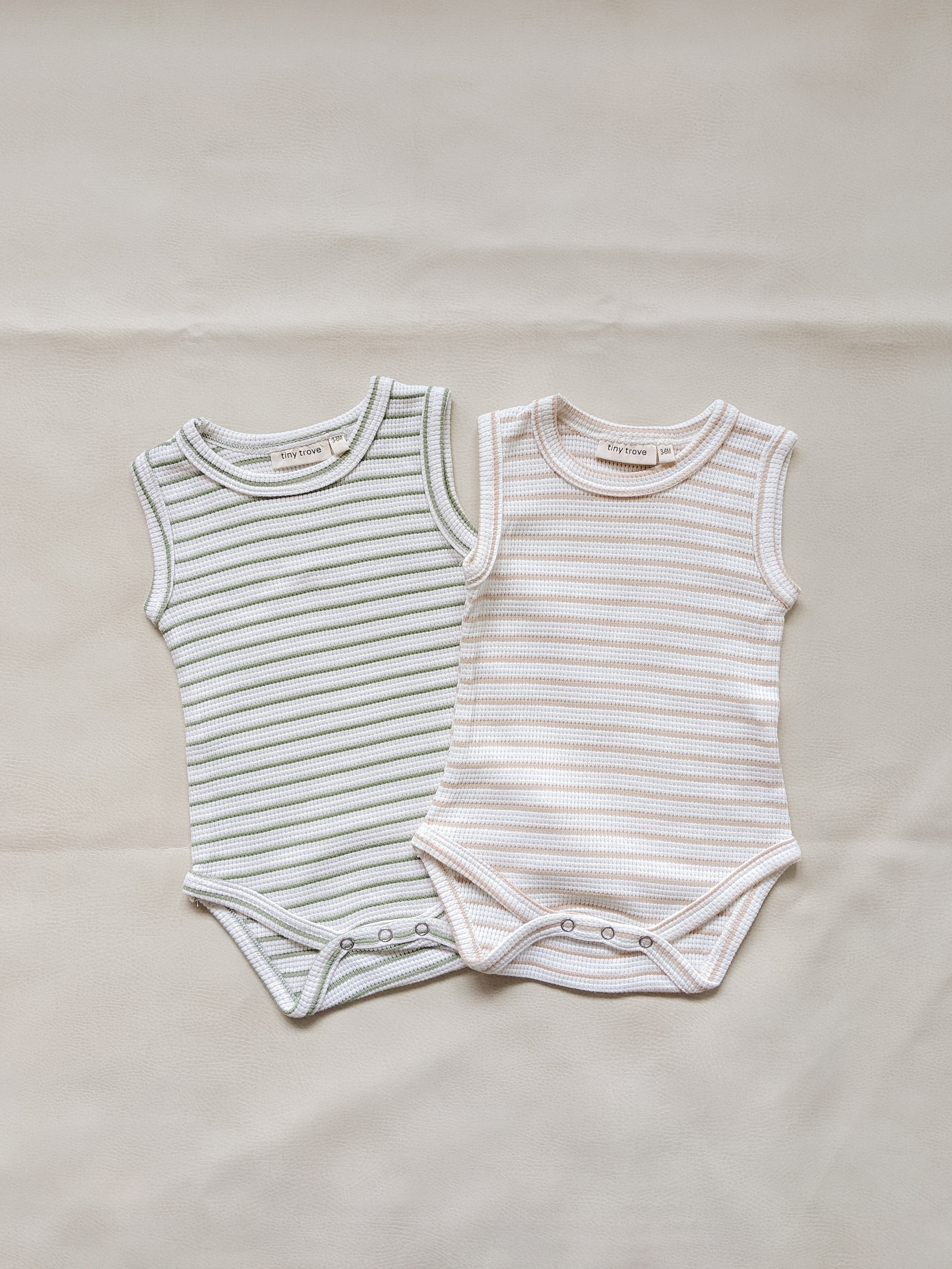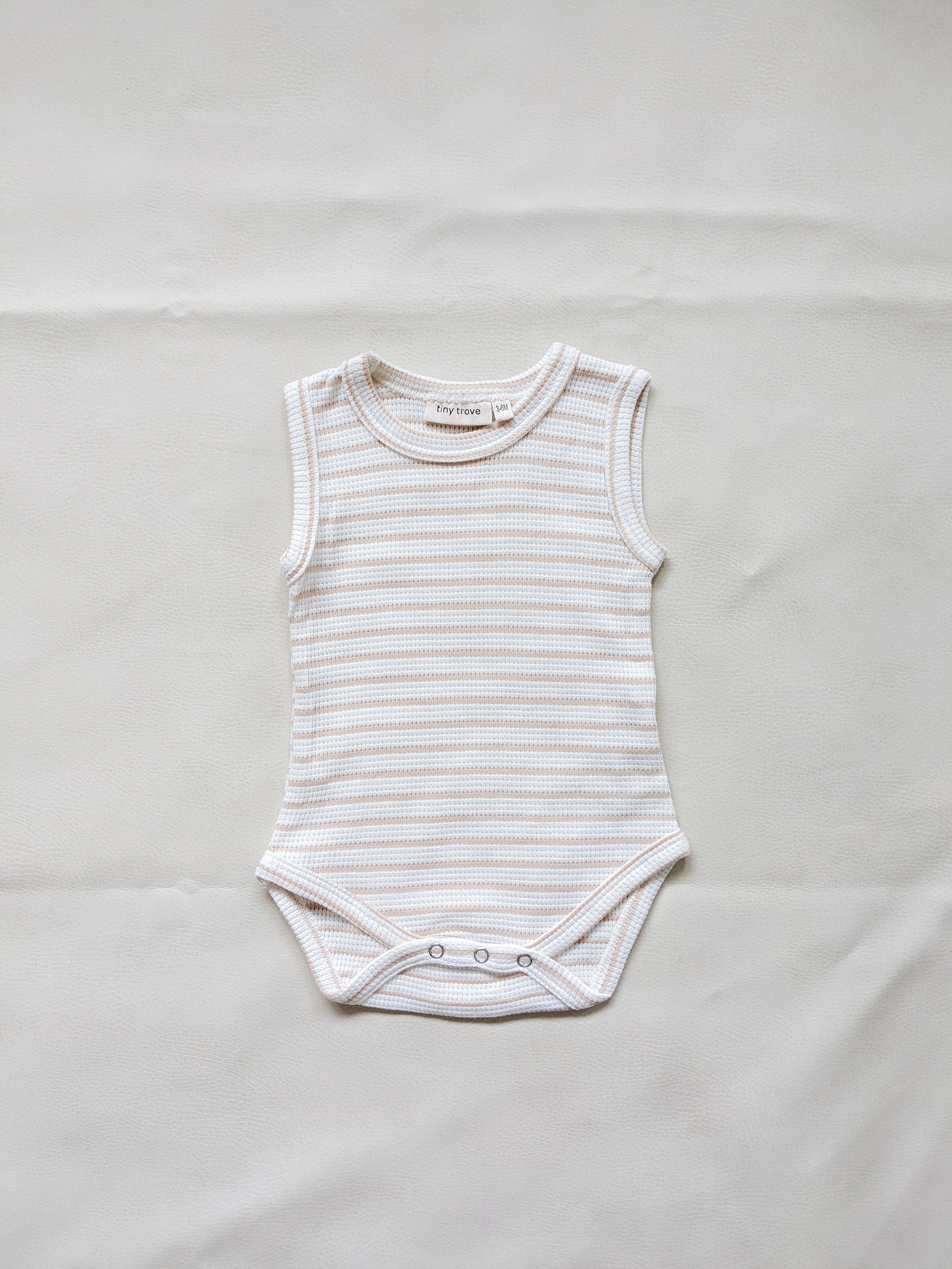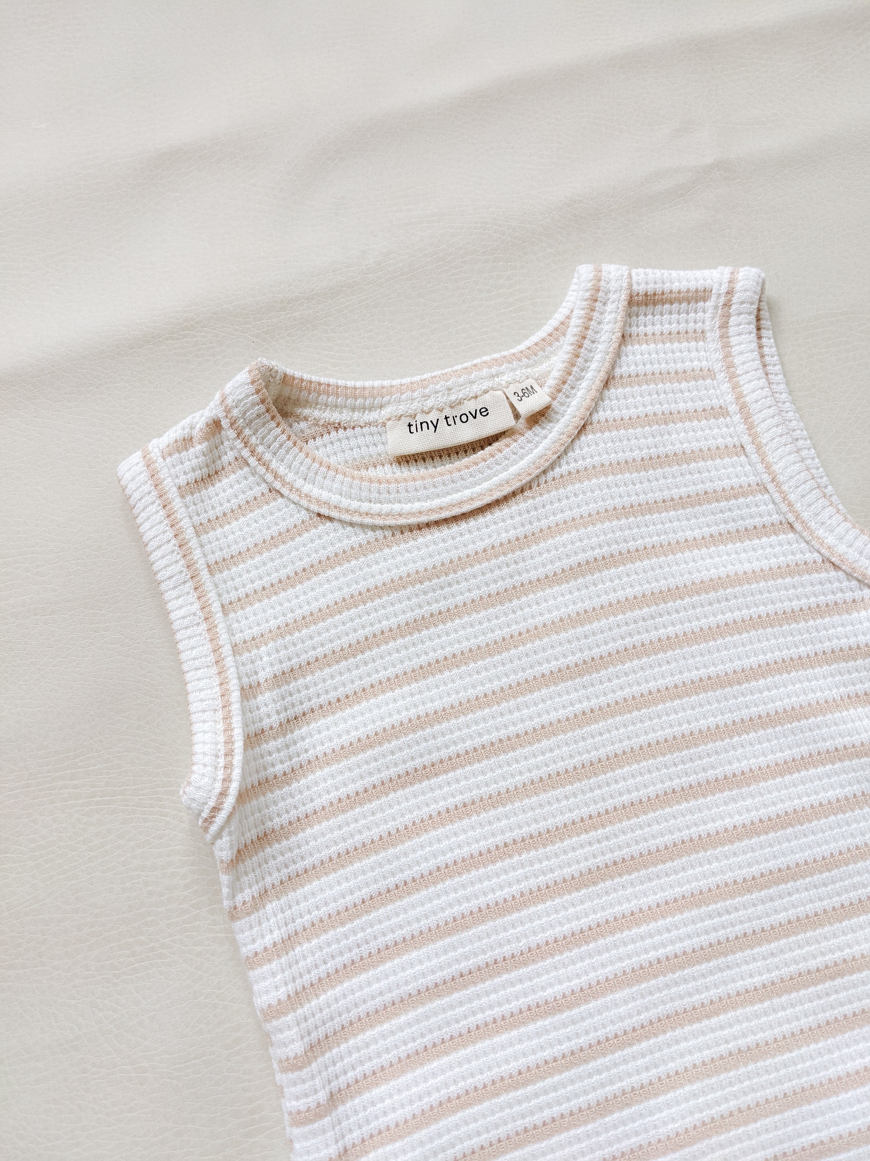 Cali Waffle Bodysuit - Beige Stripe