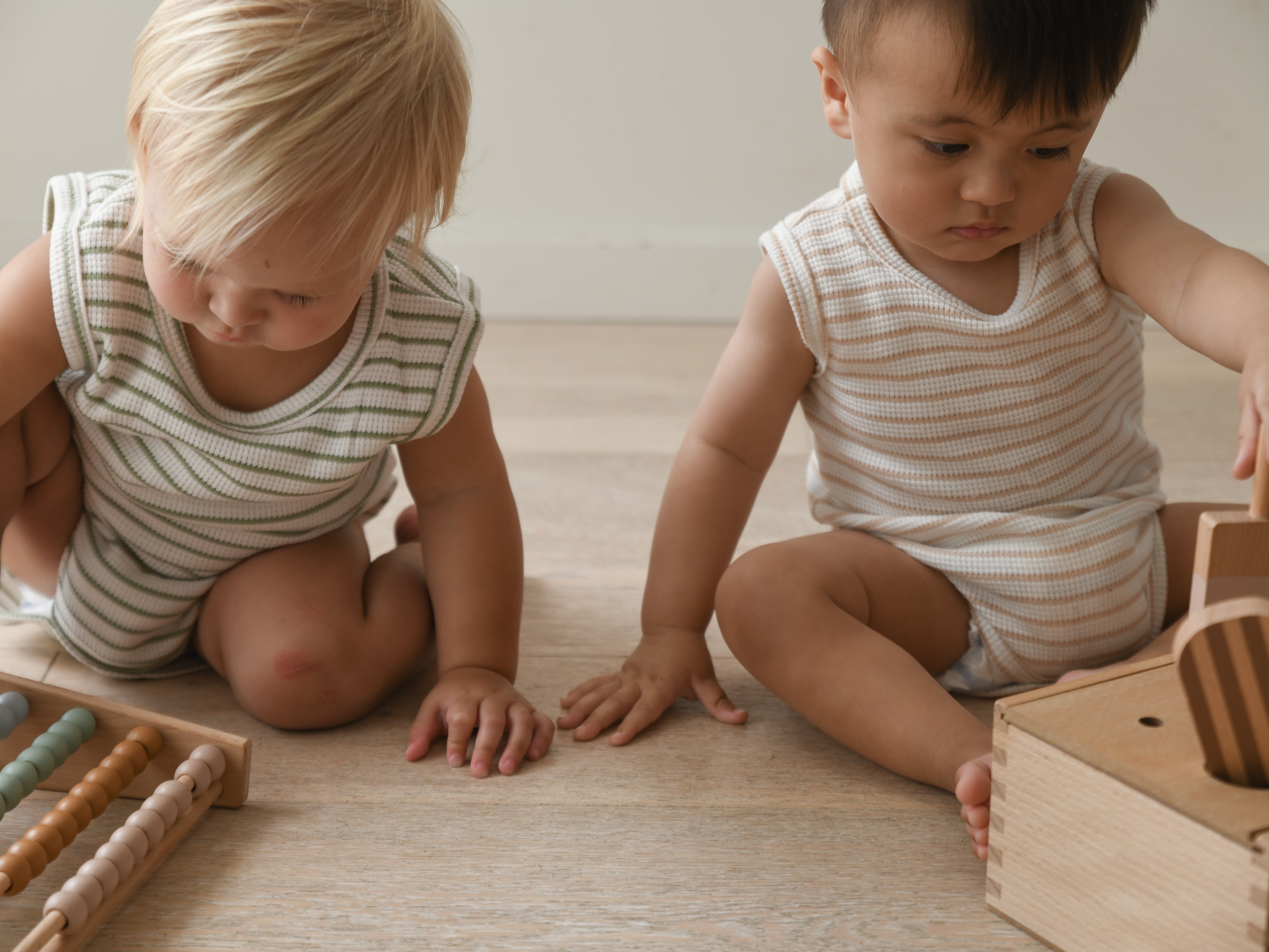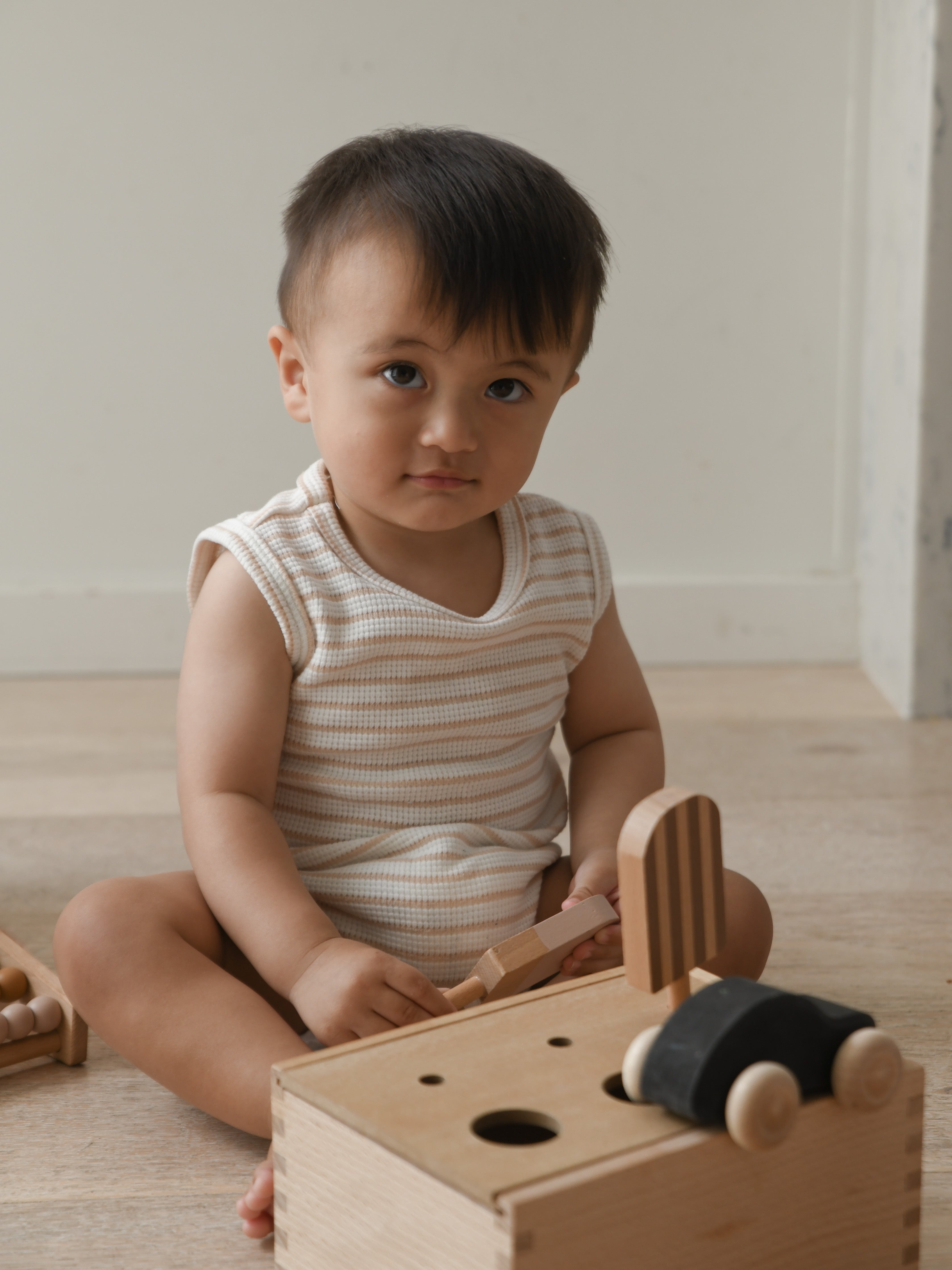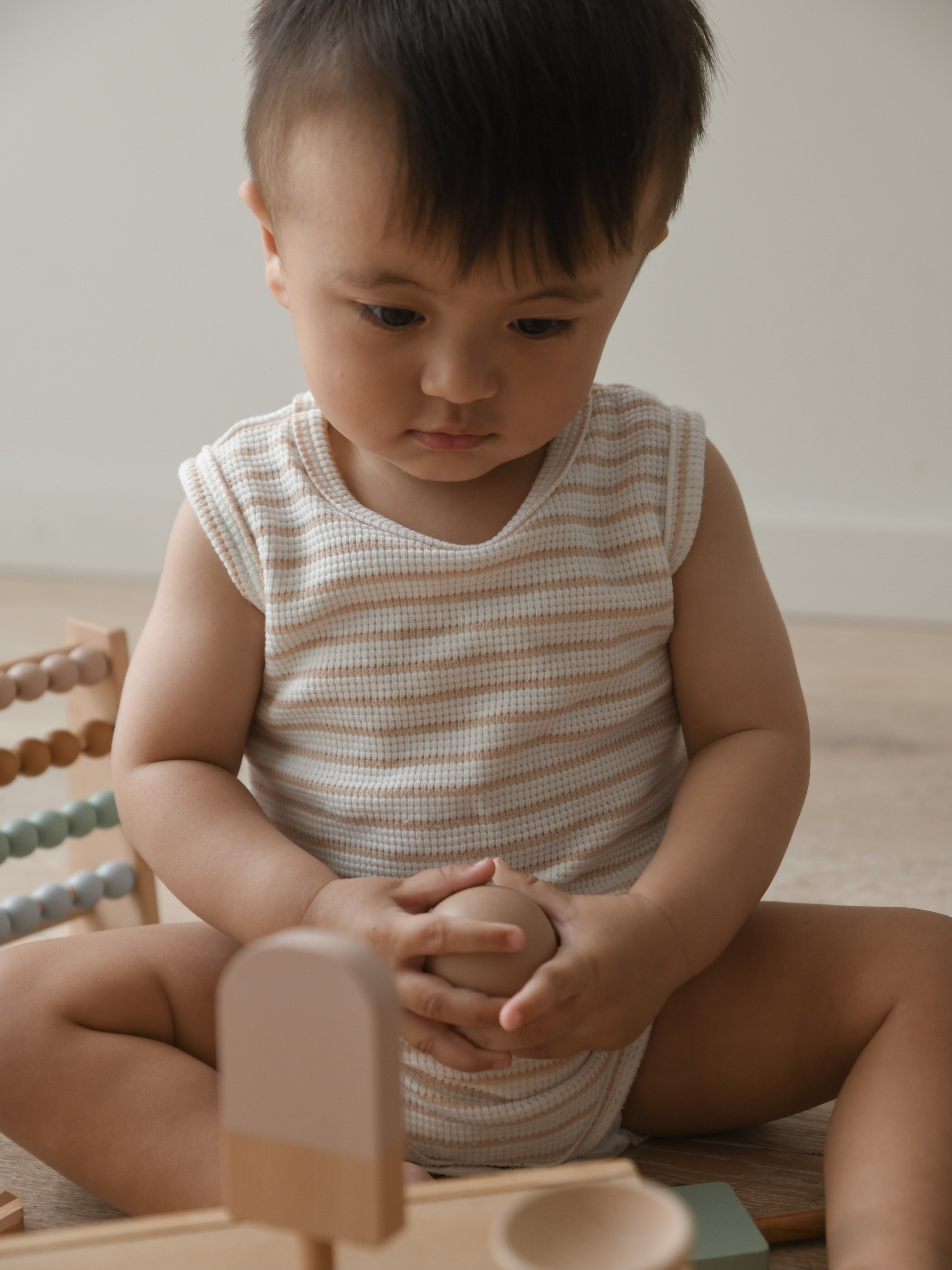 Cali Waffle Bodysuit - Beige Stripe