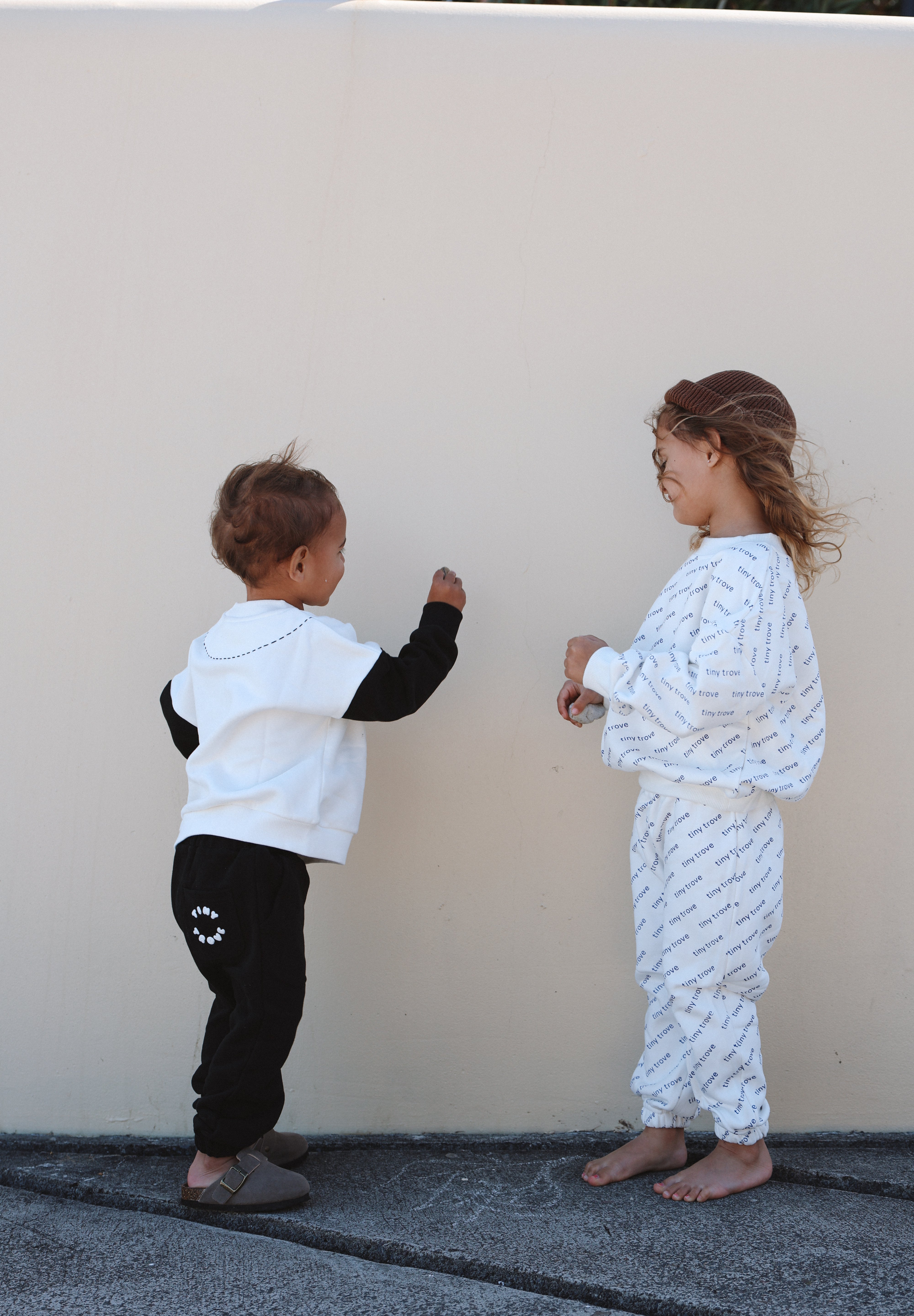 Pants: Elasticated waistband, a slip-on style, a straight leg and fitted cuffs.