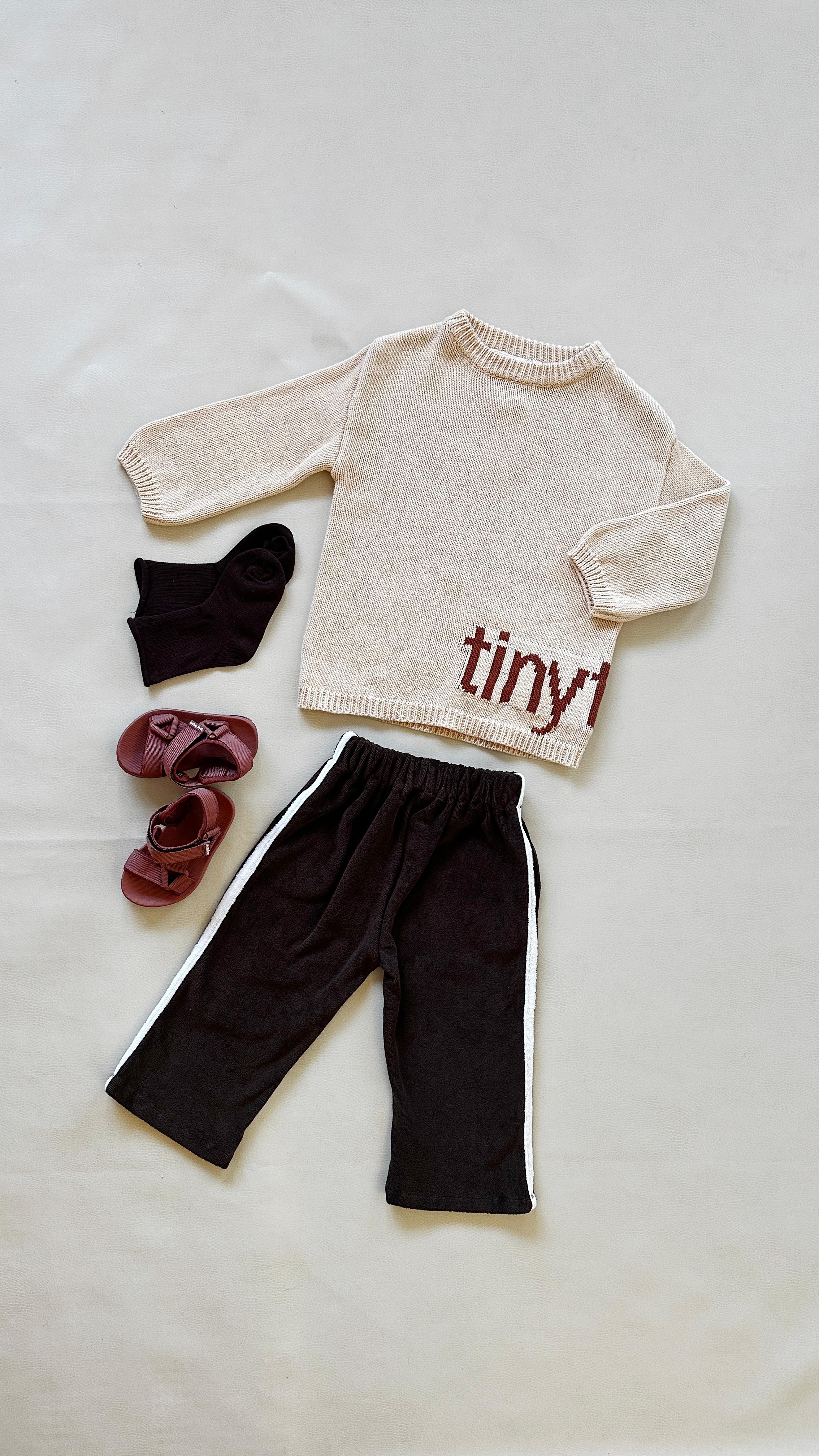 Darcy Pants in Dark Chocolate, Olympia Velcro Sandals - Brick and Ribbed Socks in Chocolate
