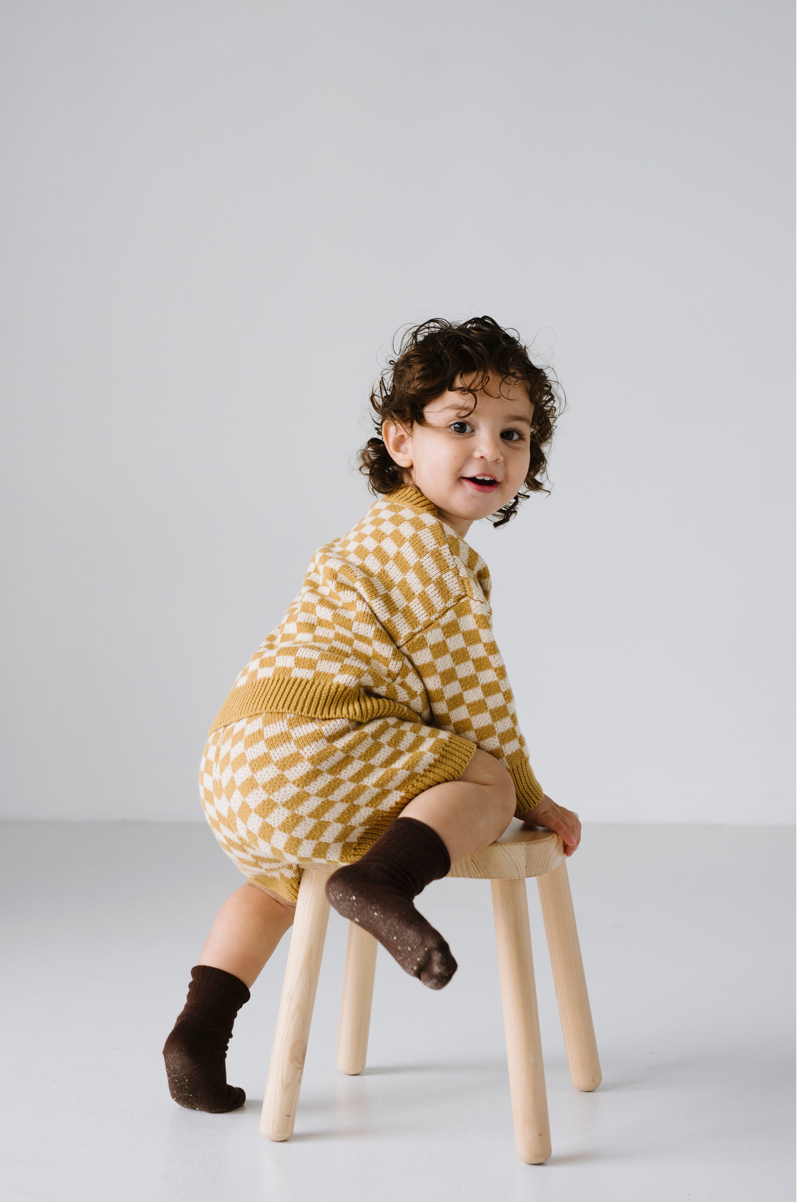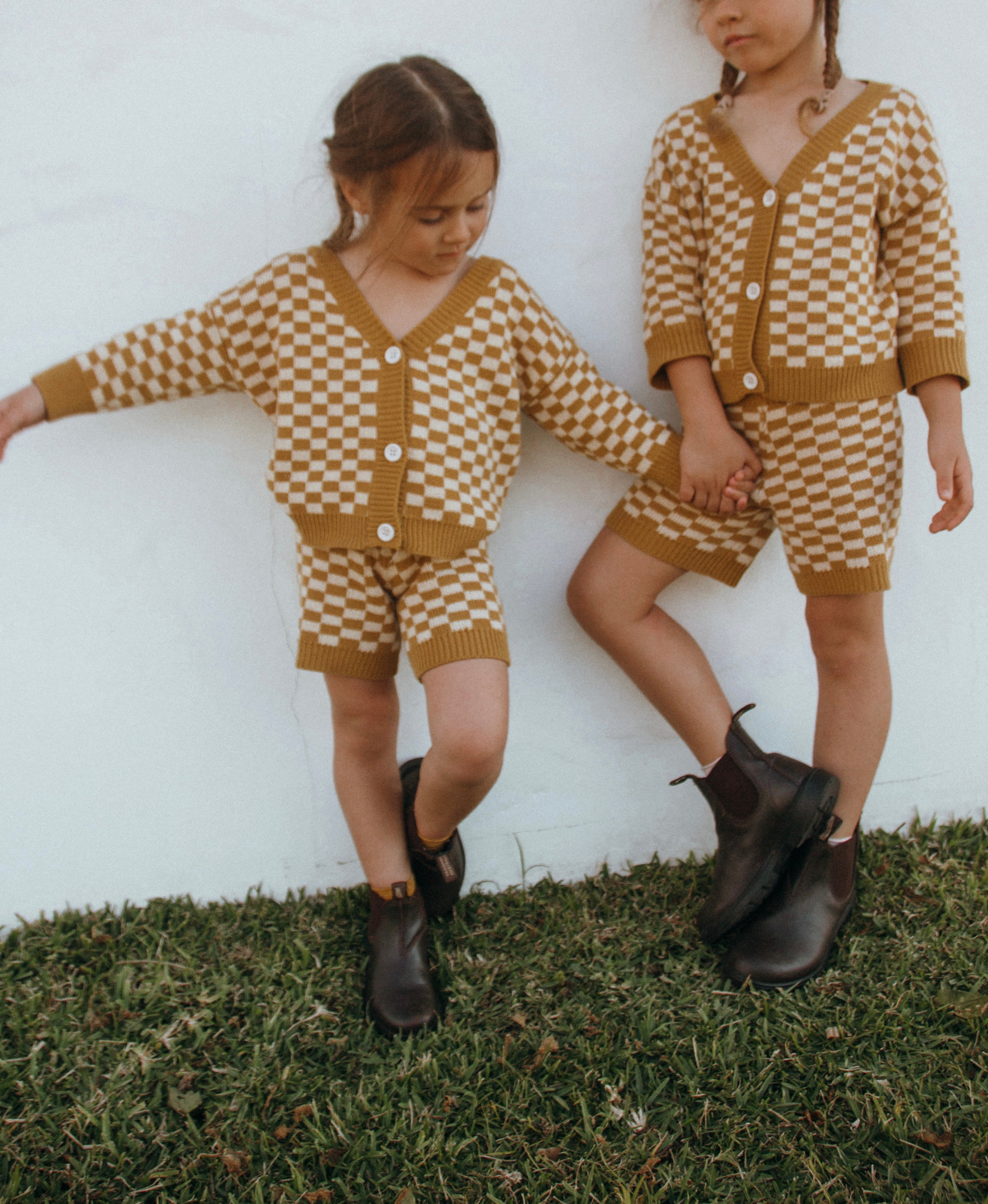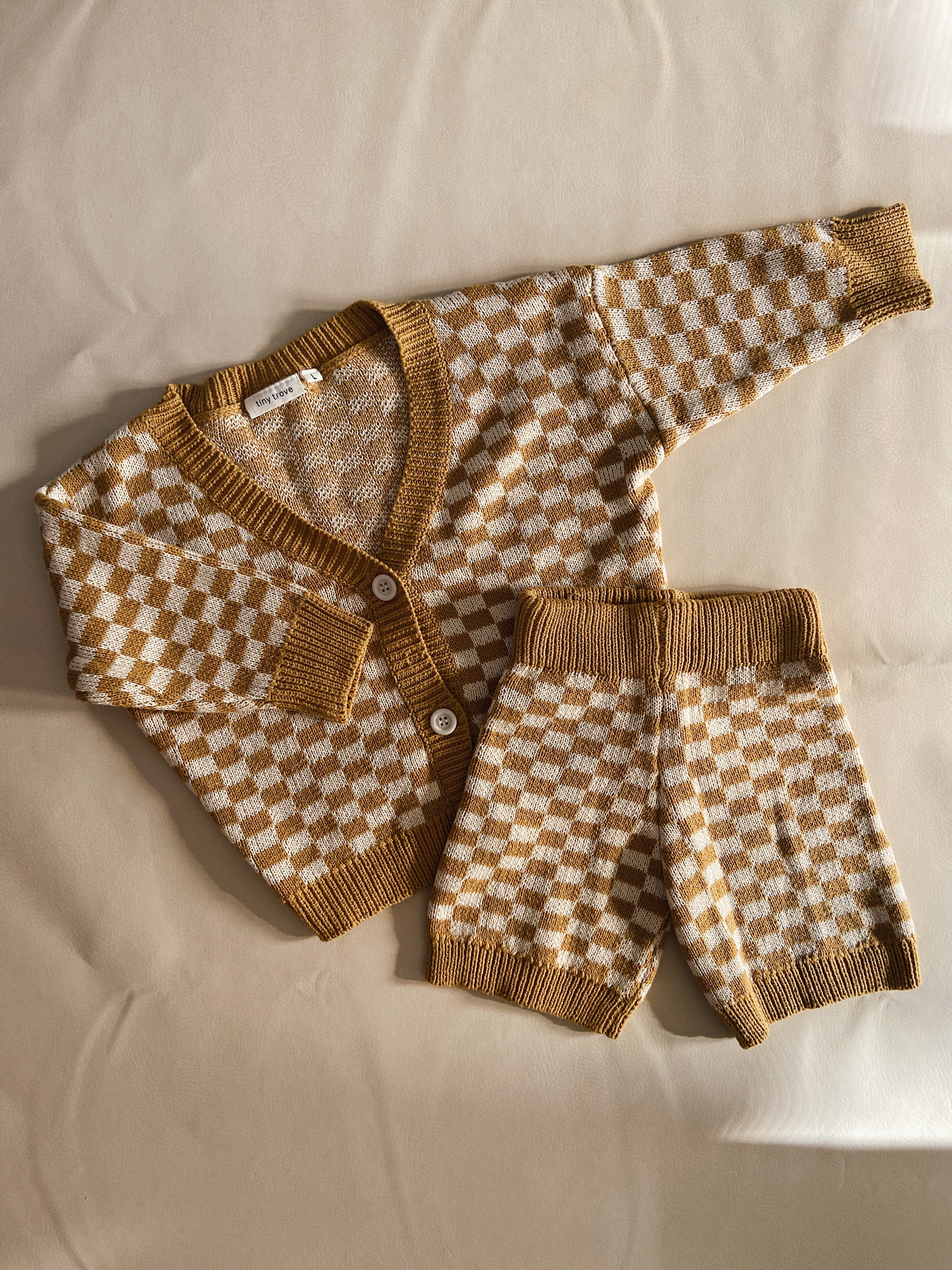 Quincy Checkerboard Knit Set - Dijon/Milk