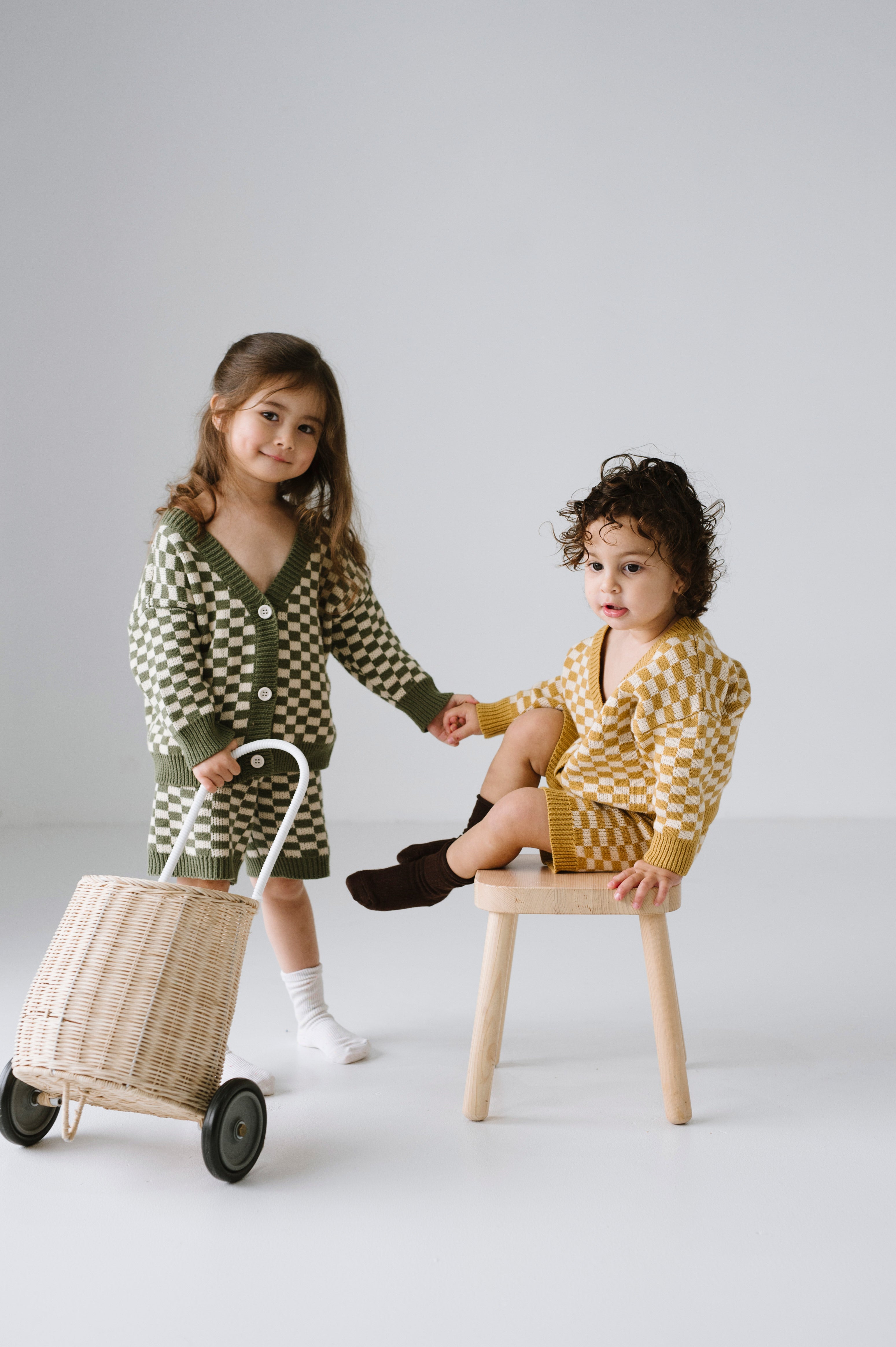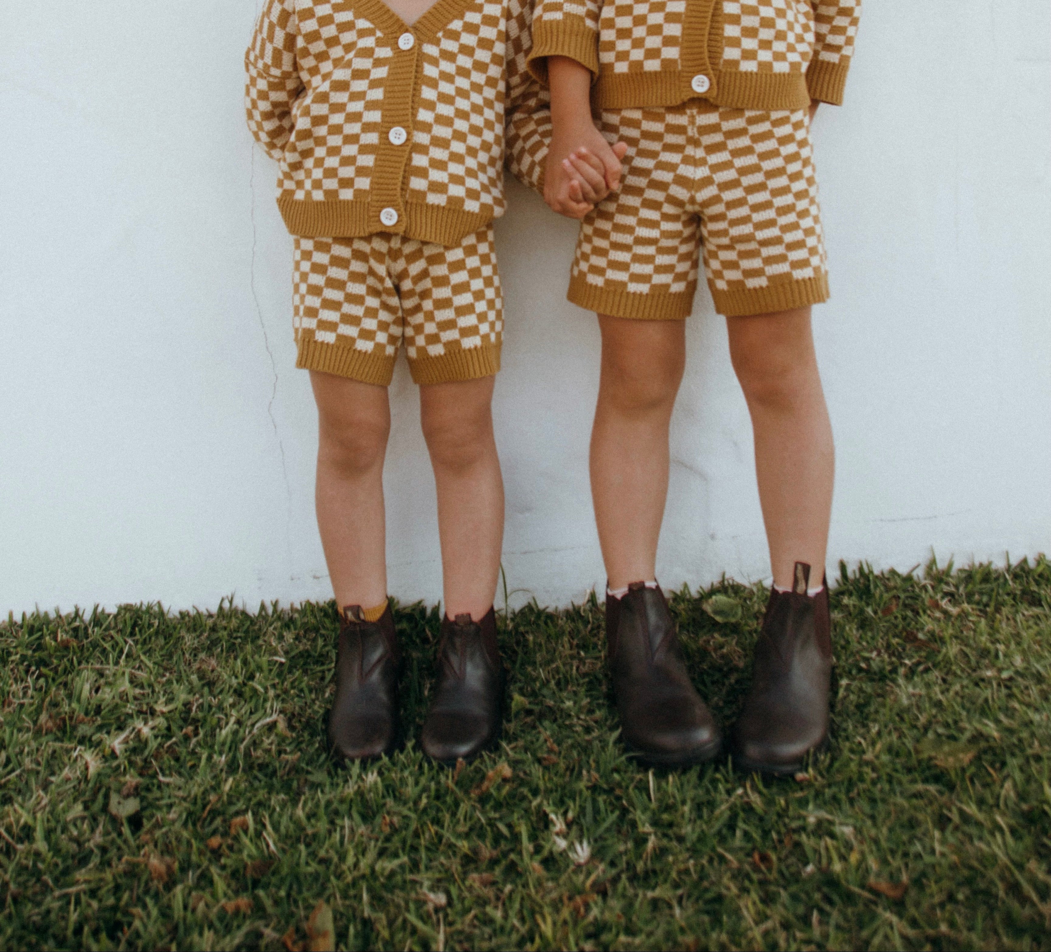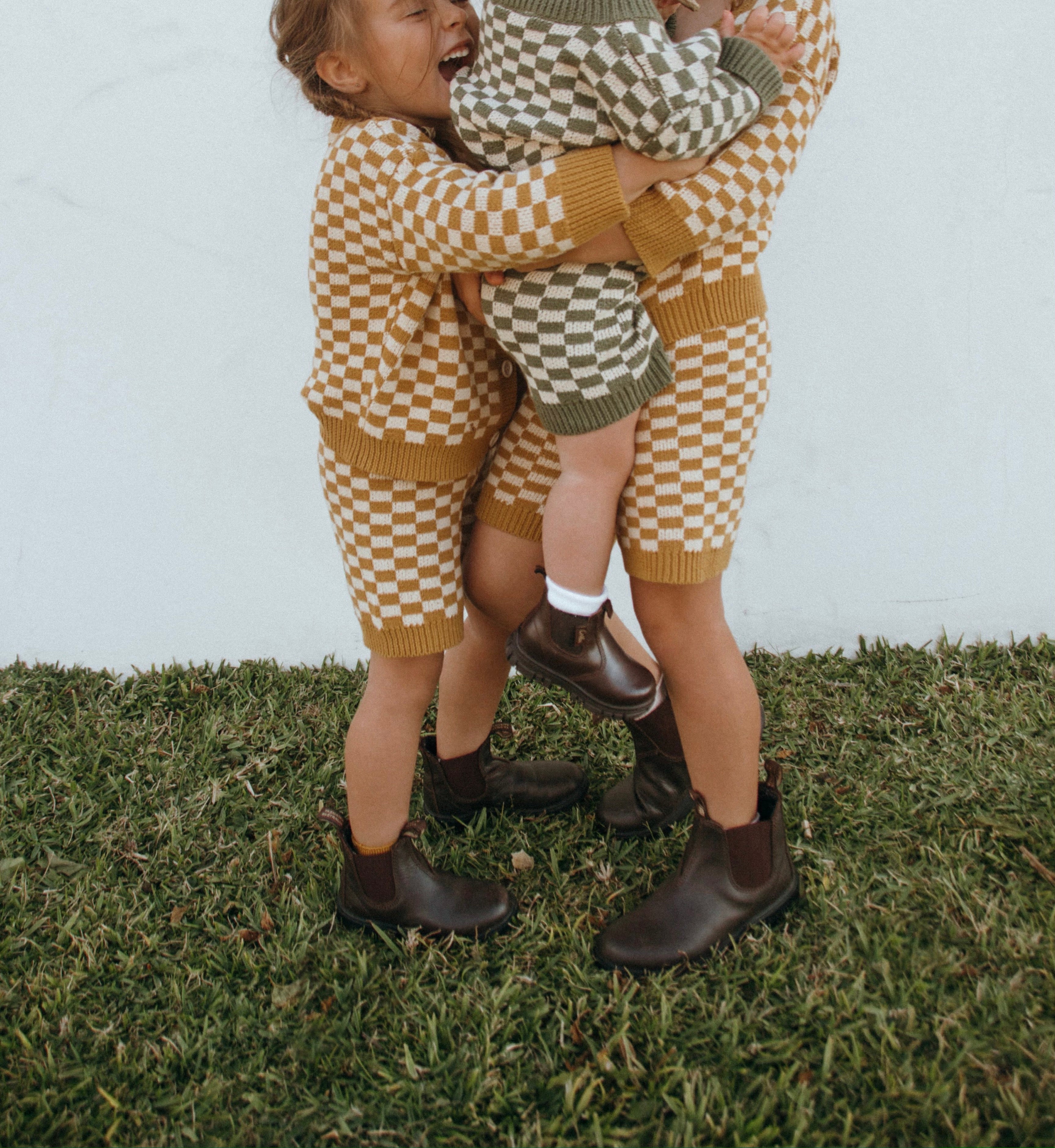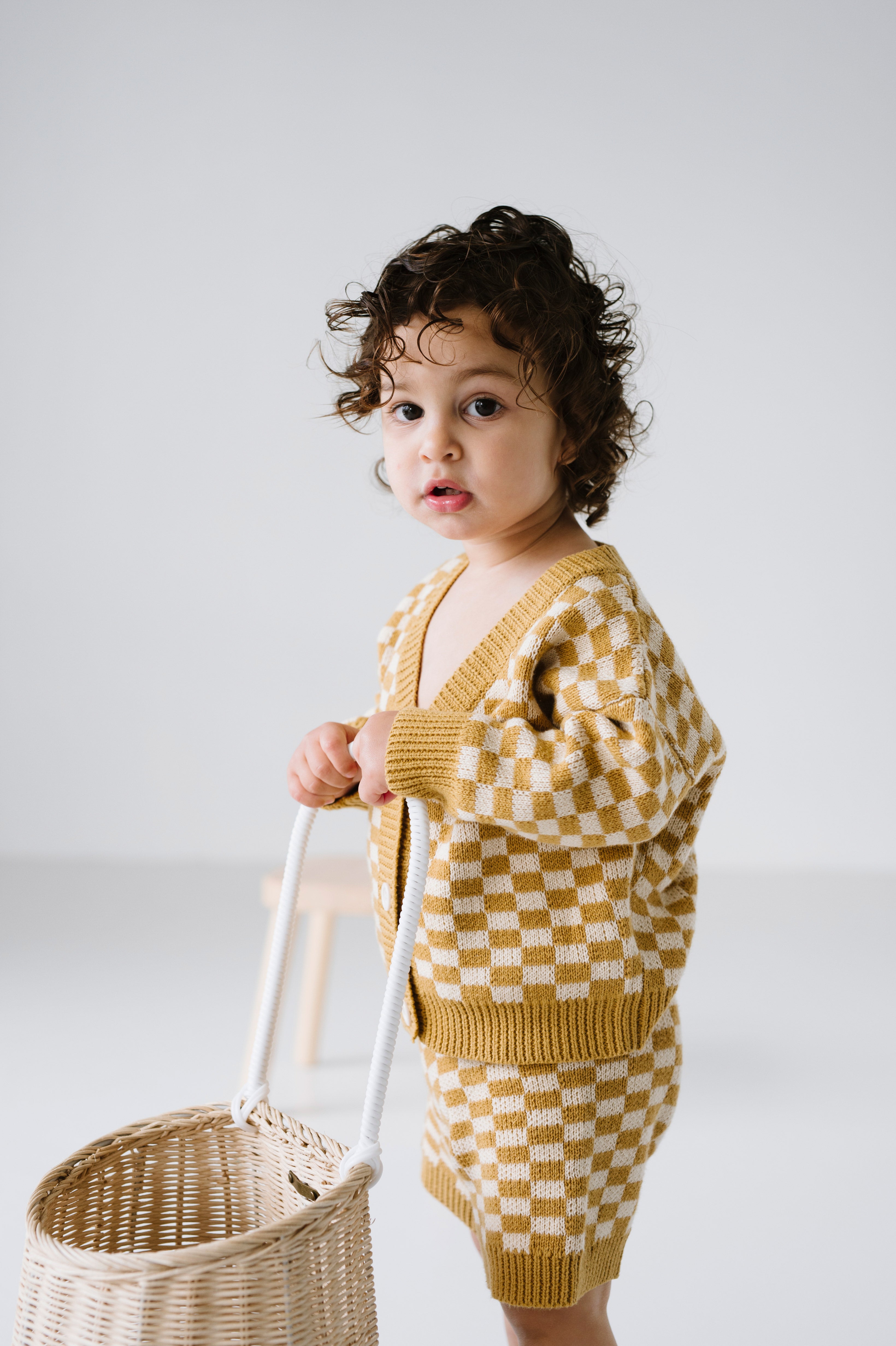 Quincy Checkerboard Knit Set - Dijon/Milk
