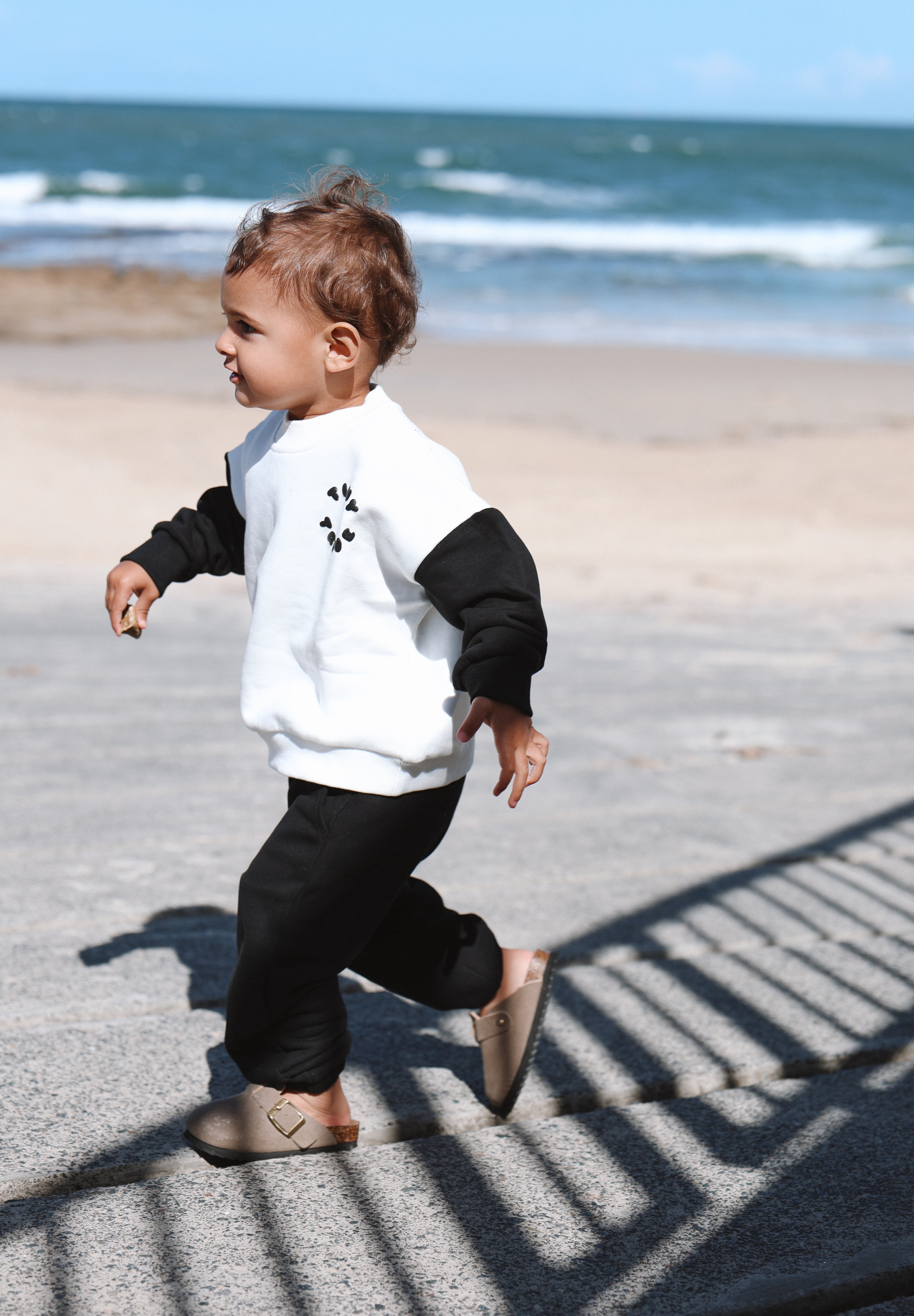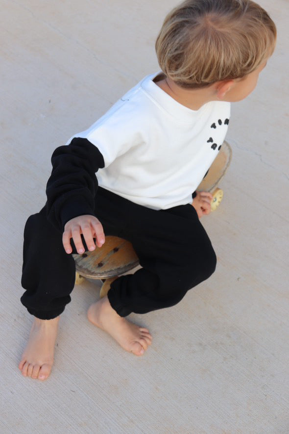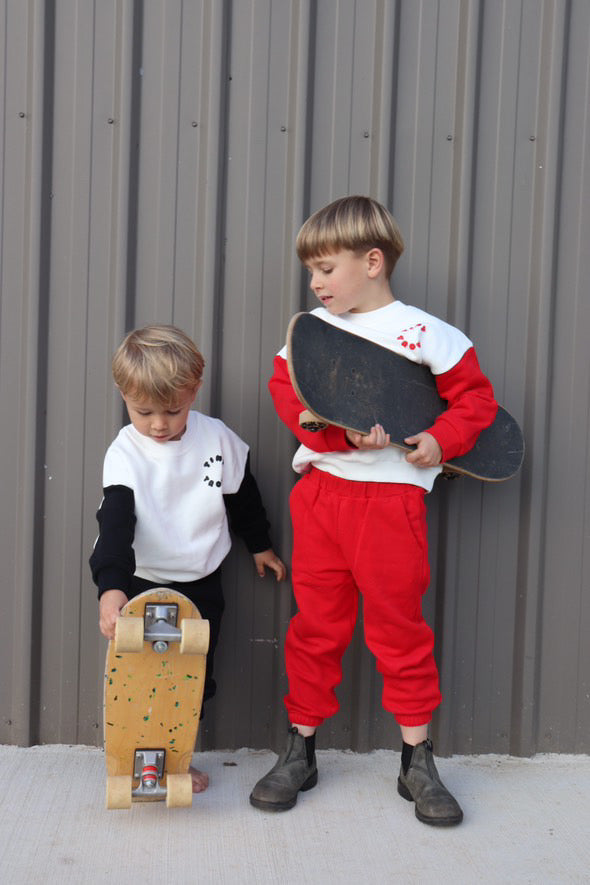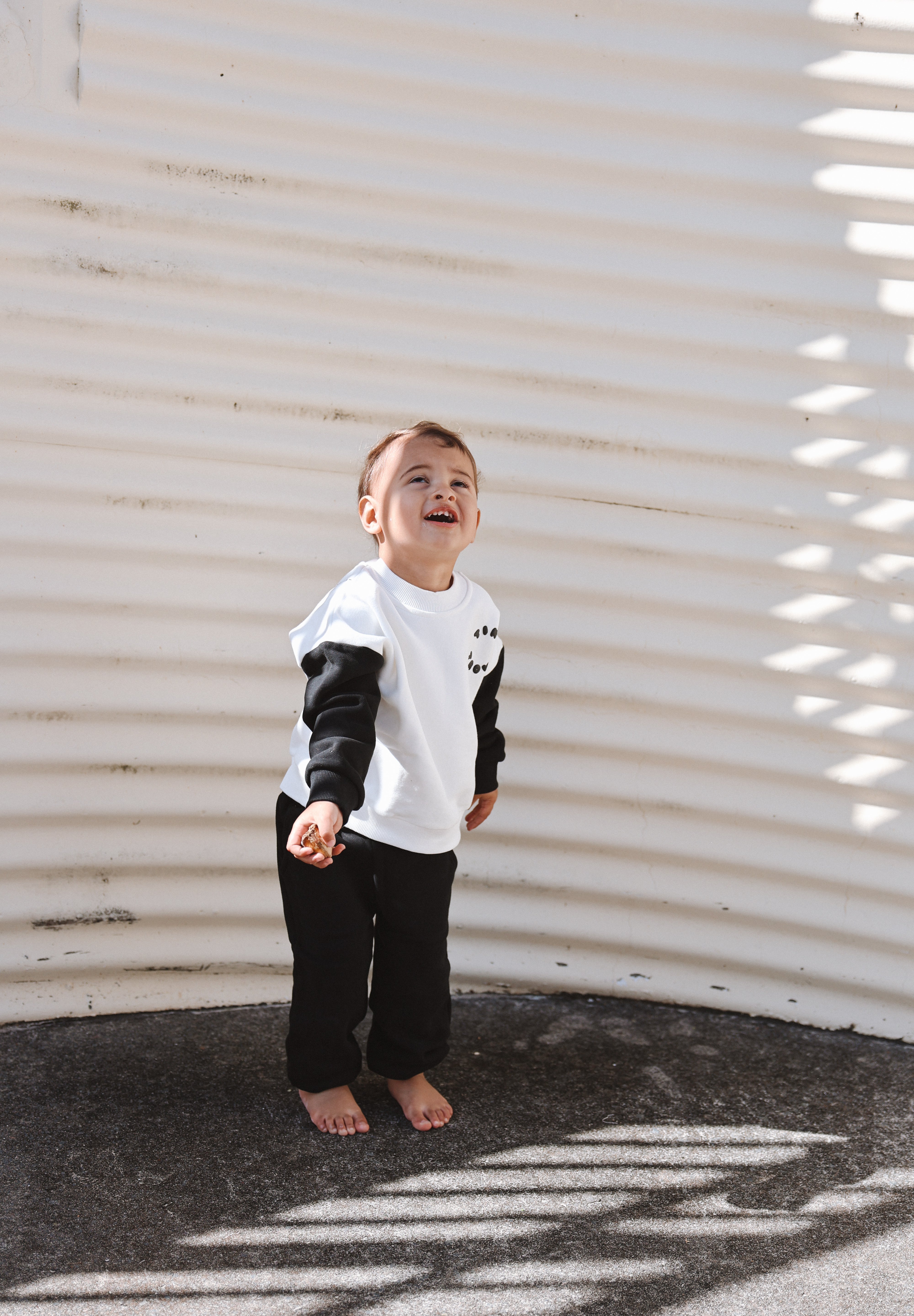 Pants: Elasticated waistband, a slip-on style, a straight leg and fitted cuffs, pockets.