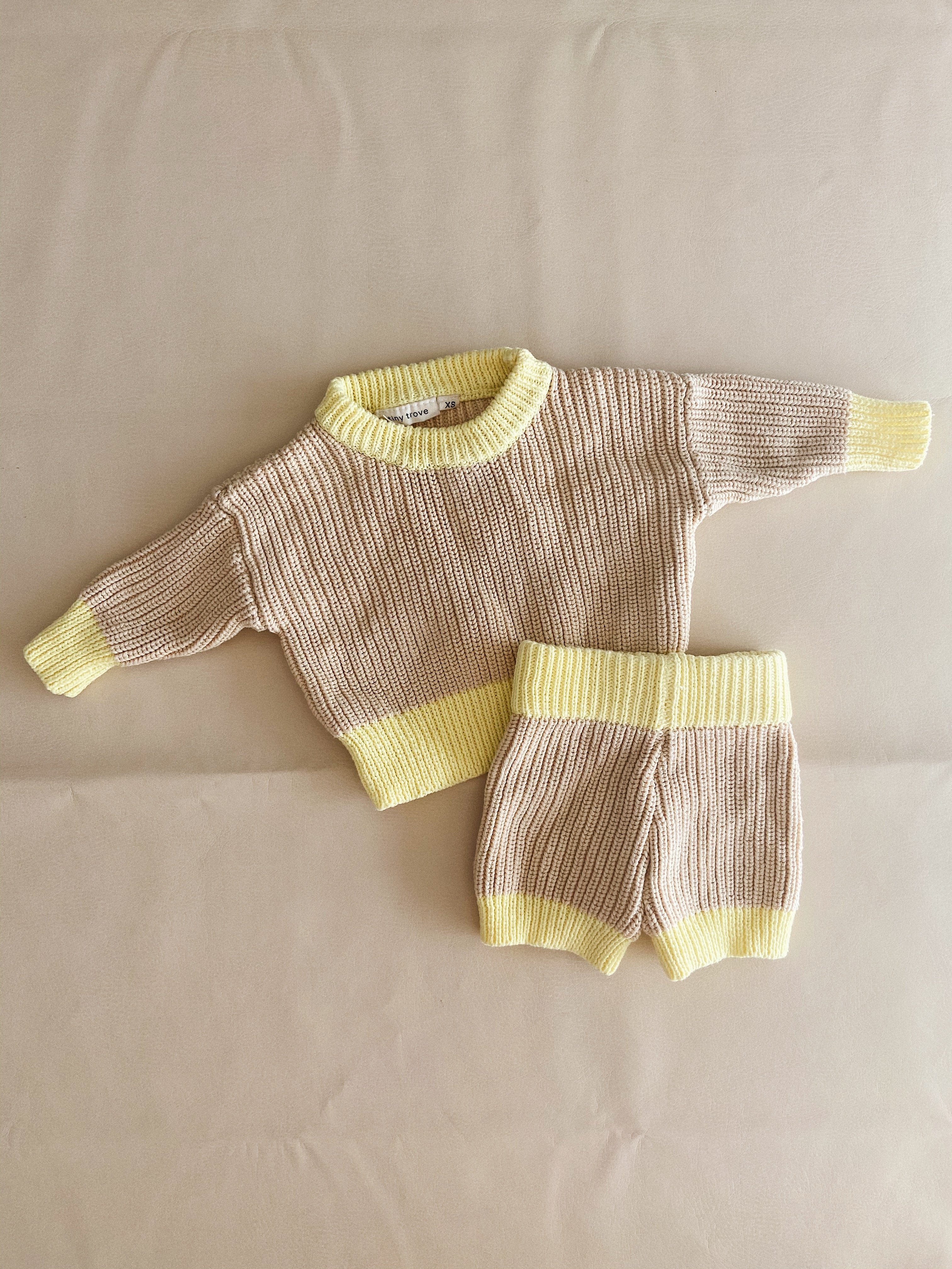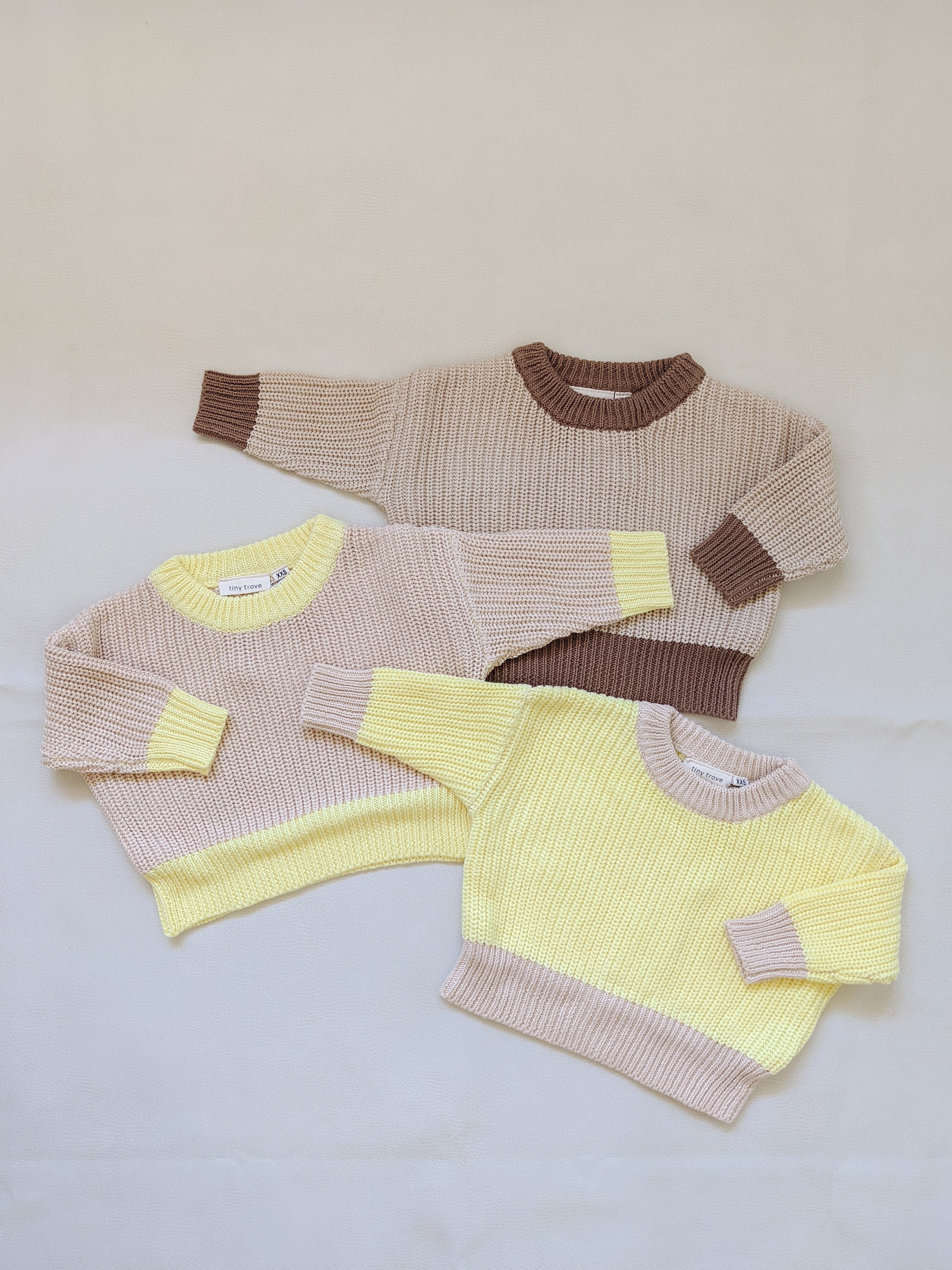 Watson Contrast Knit Jumper - Caramel/Yellow
