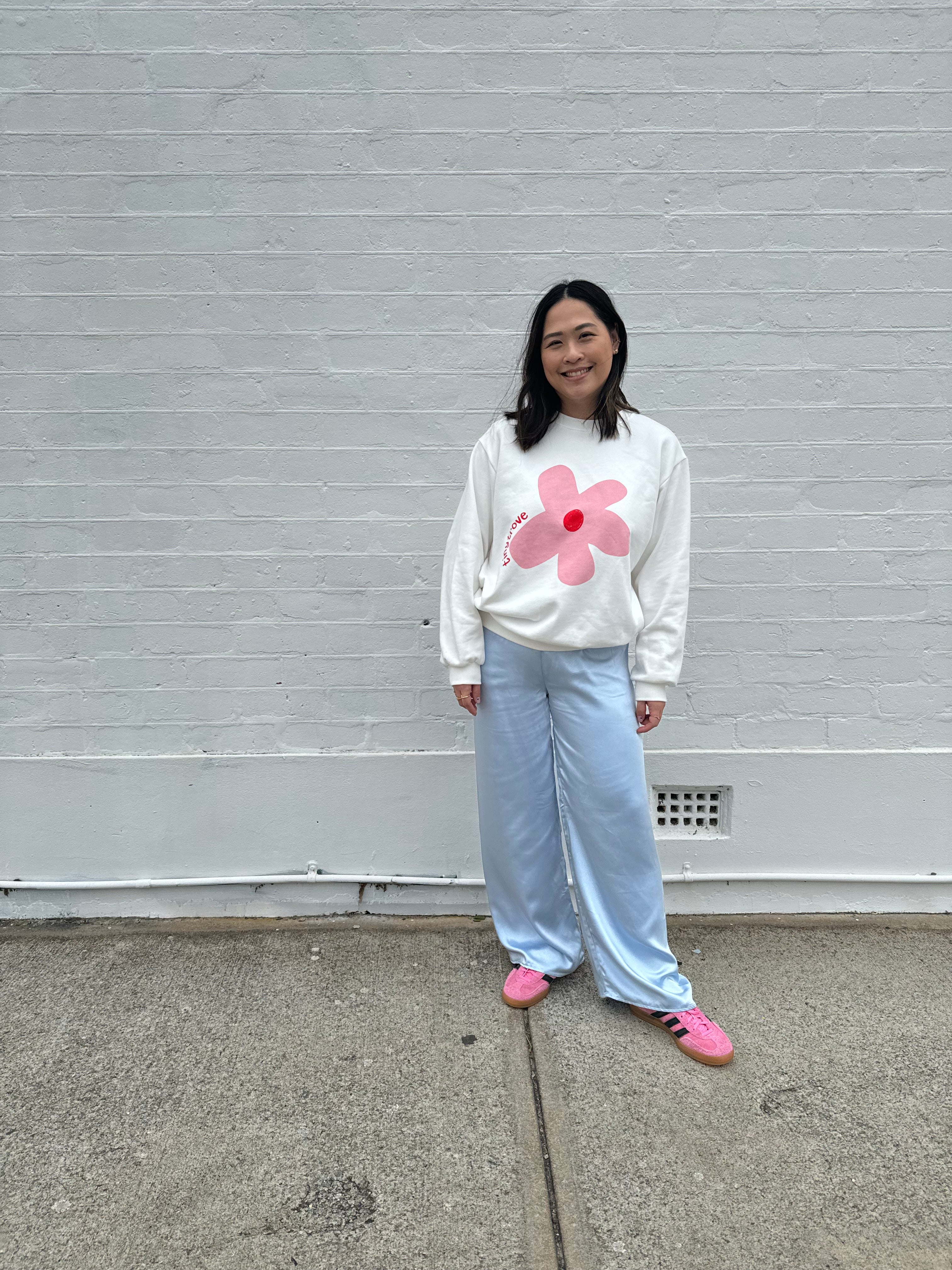 Women's Flower Jumper - White/Pink